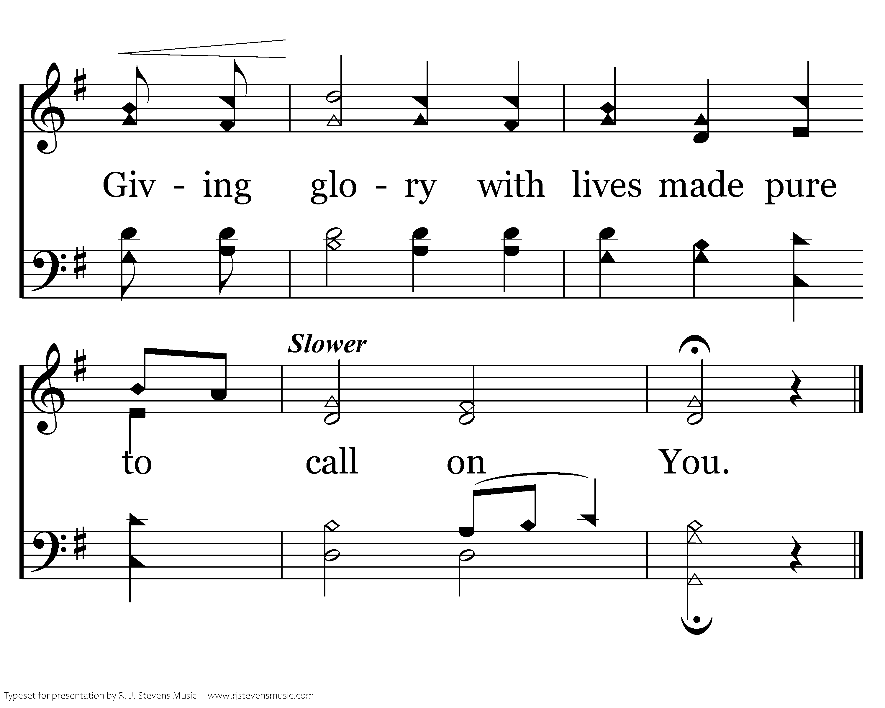 May we come before You with consecrated hearts, Giving glory with lives made pure to call on You. As we bow down and worship, May we be pleasing in Your sight? May we be pleasing in Your sight?