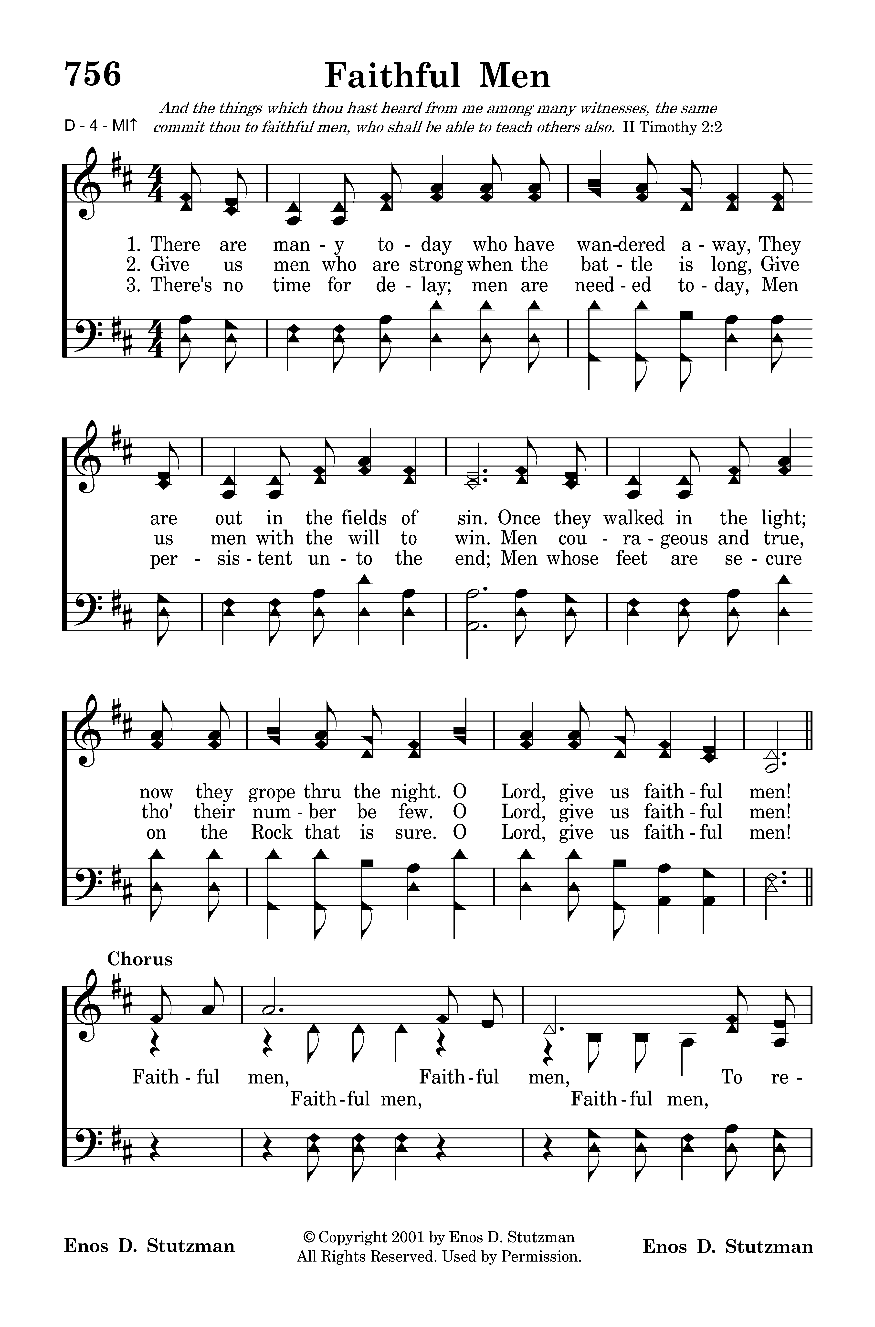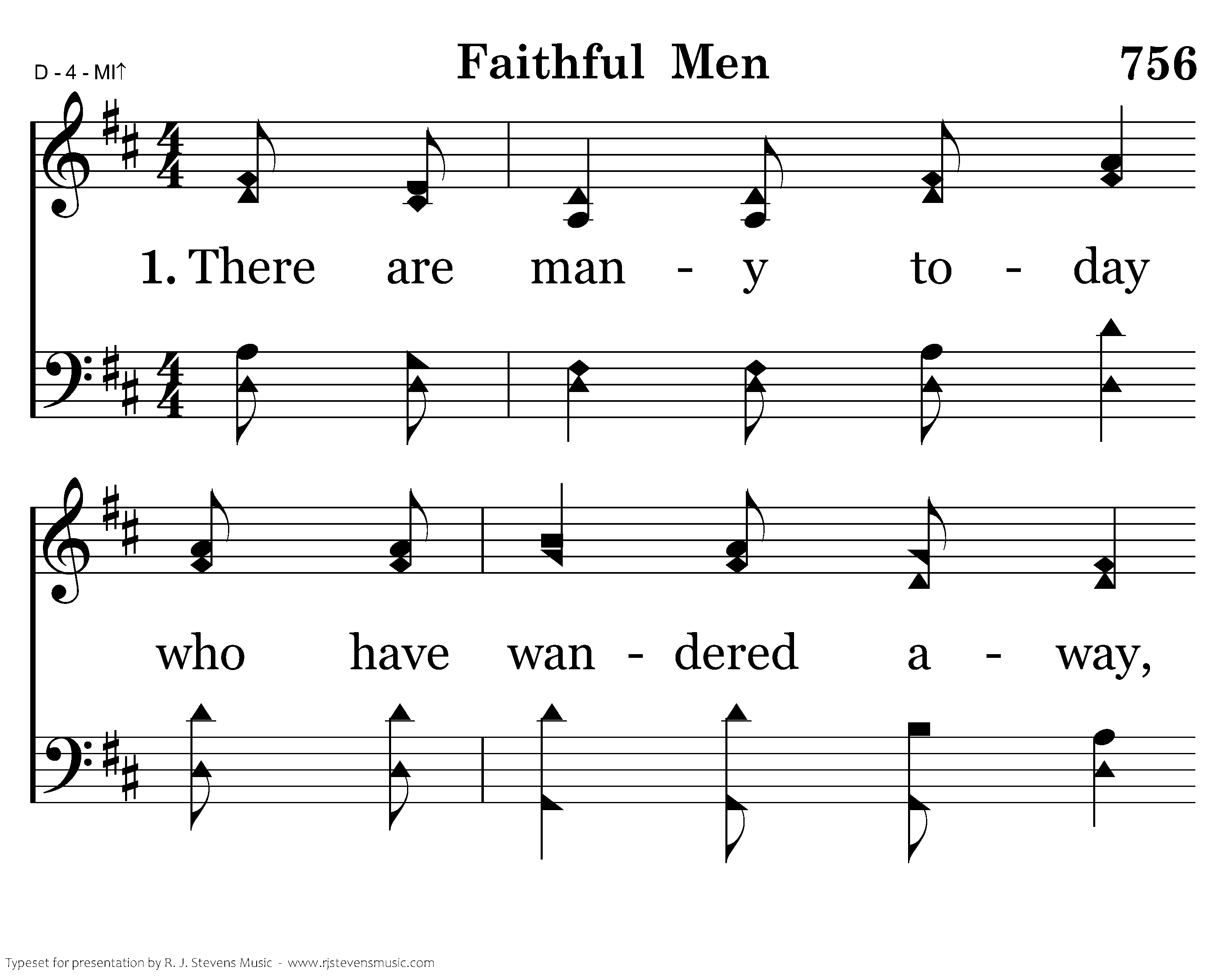 There are many today who have wandered away, They are out in the fields of sin. Once they walked in the light; now they grope thru the night. O Lord, give us faithful men!