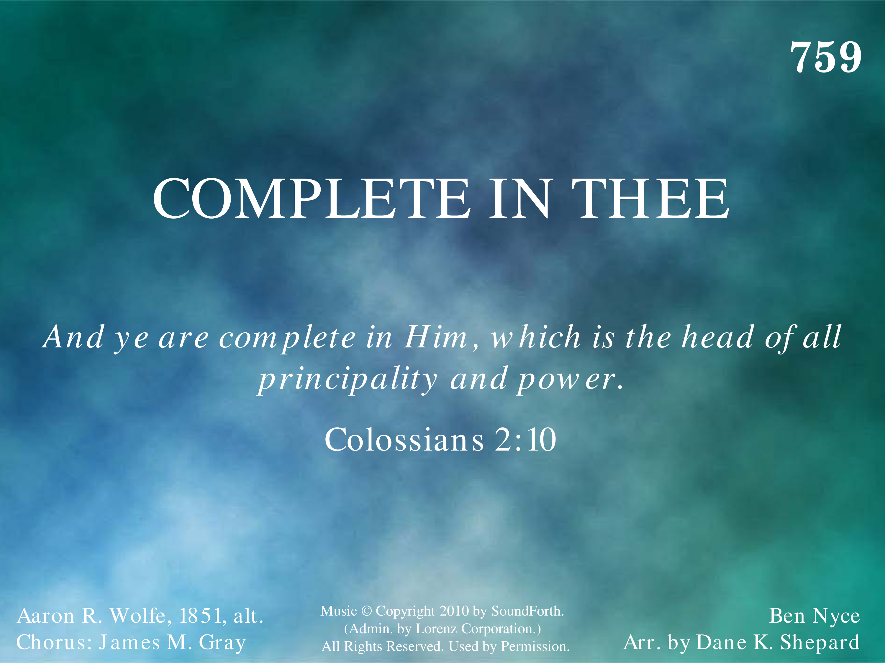 - Music Copyright © 2010 by SoundForth. (Admin. by The Lorenz Corporation.) All Rights Reserved. Used by Permission.