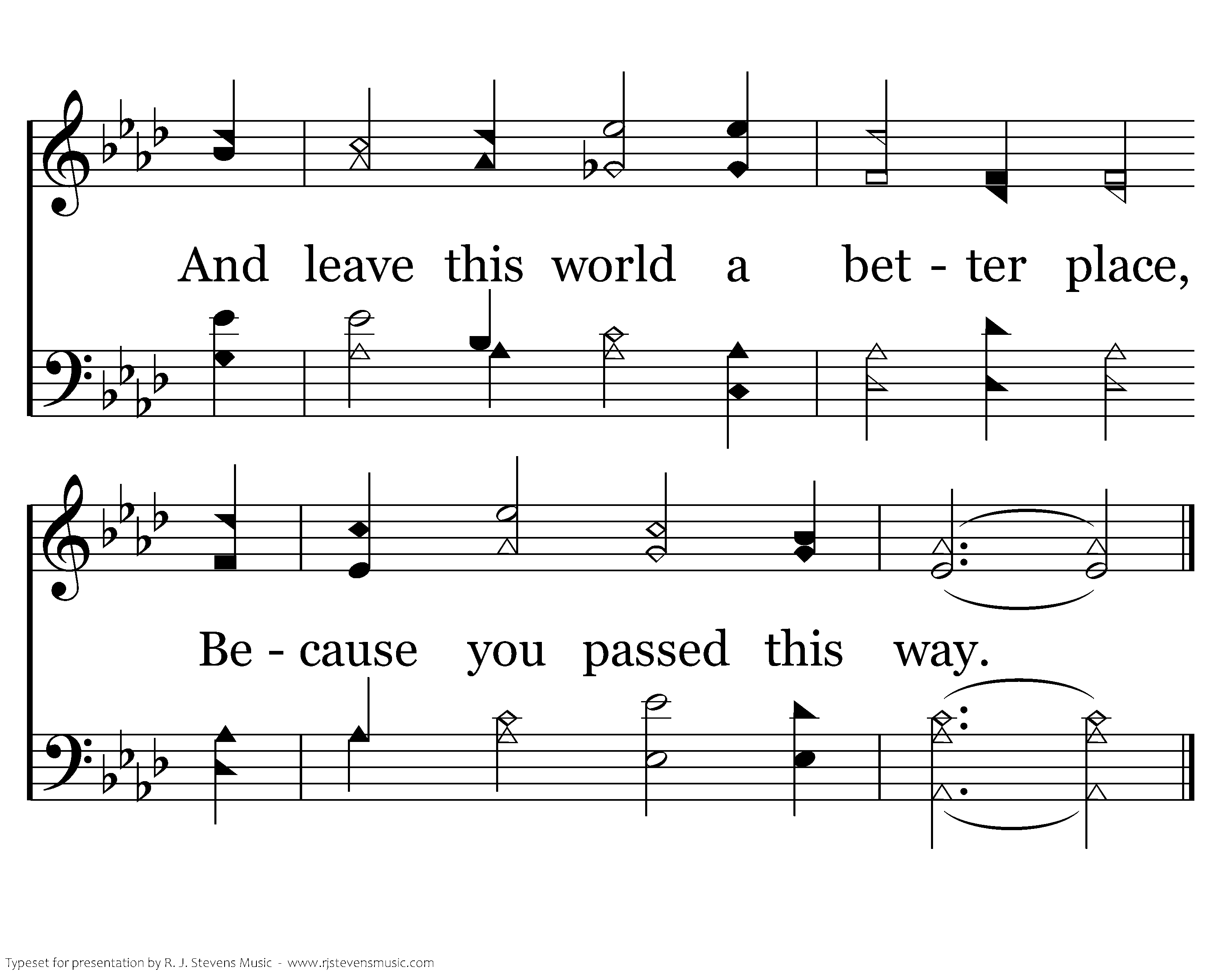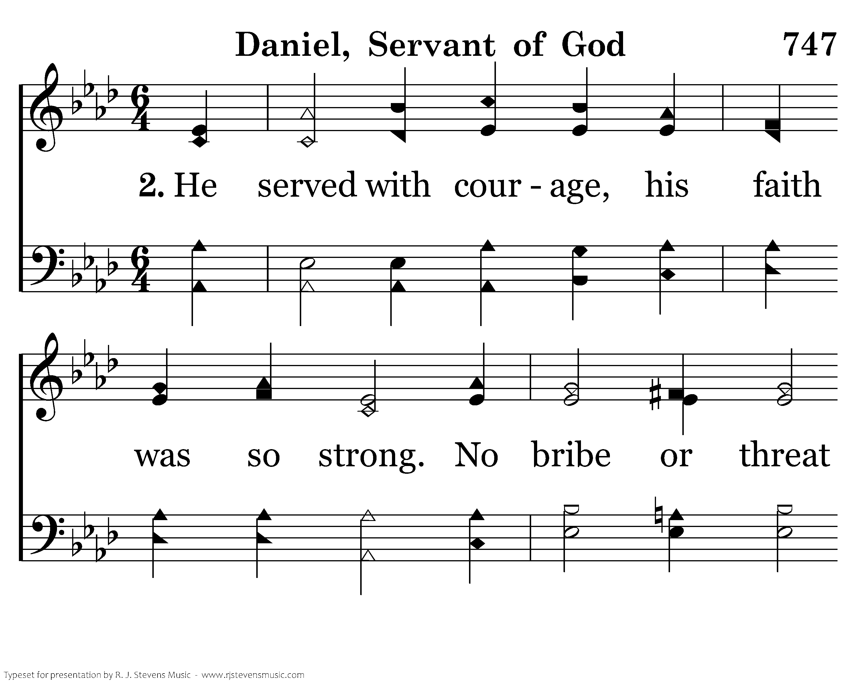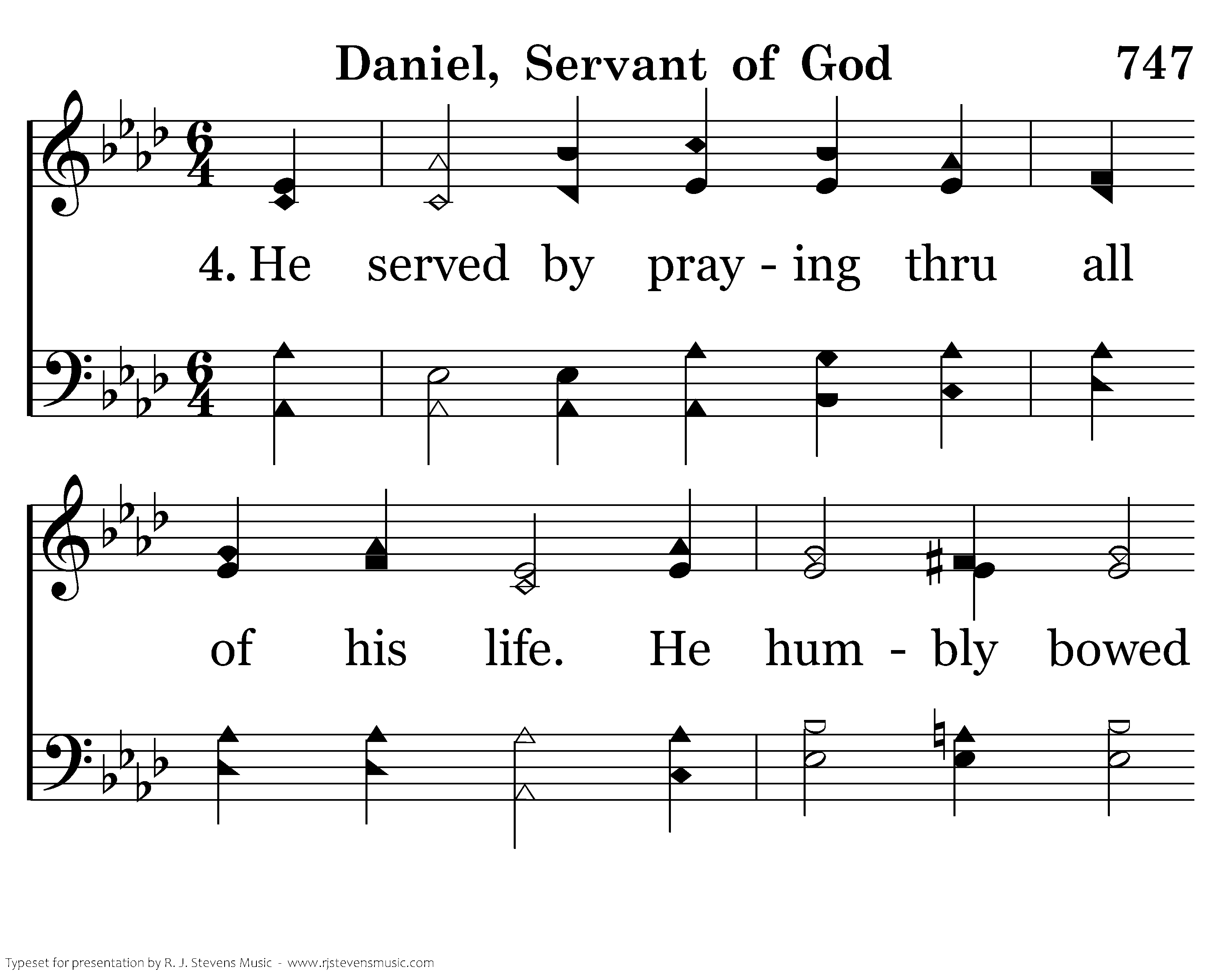 So boldly serve God like Daniel; To God and man true each day. And leave this world a better place, Because you passed this way.