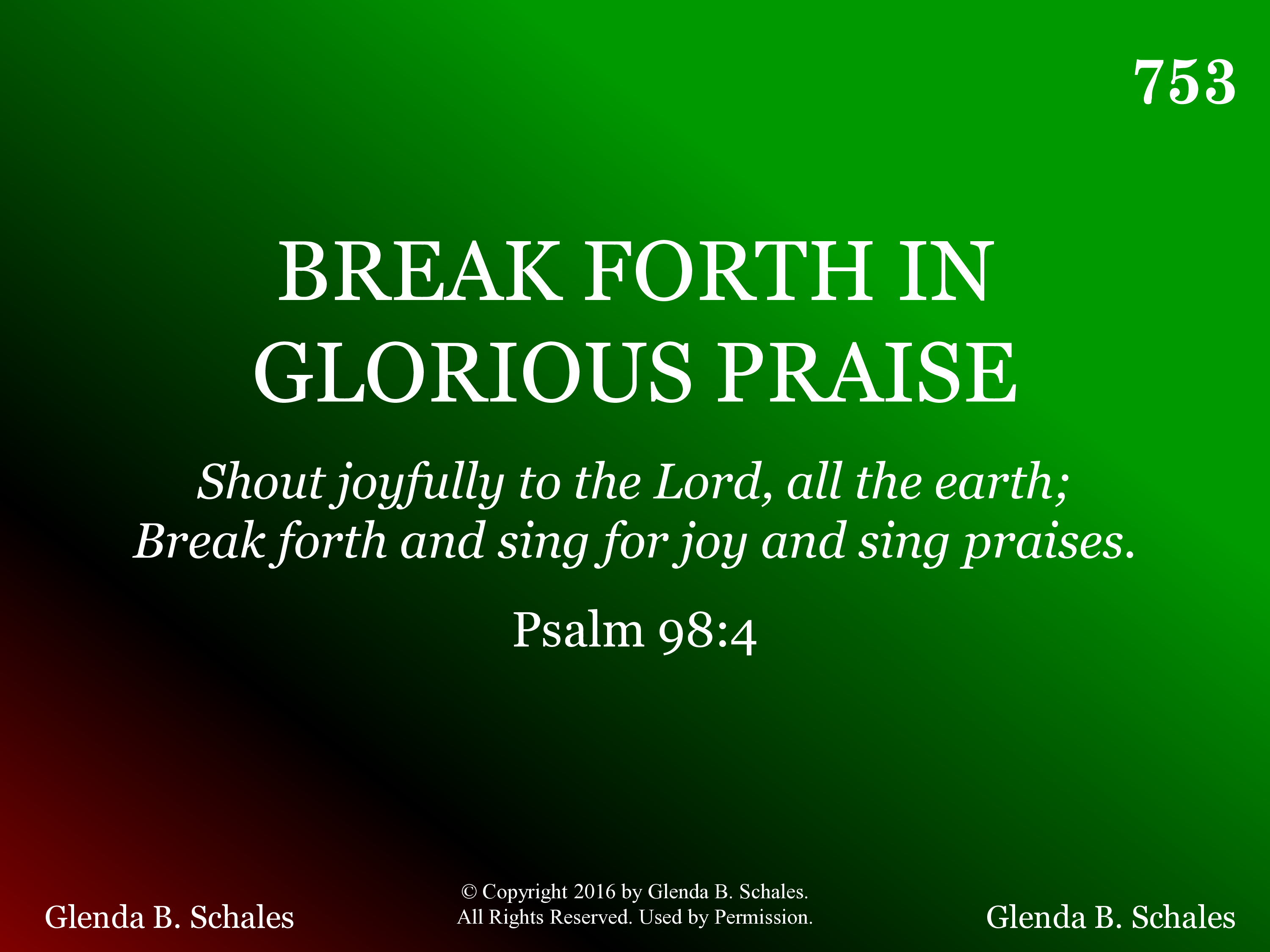 | Title | BREAK FORTH IN GLORIOUS PRAISE |
