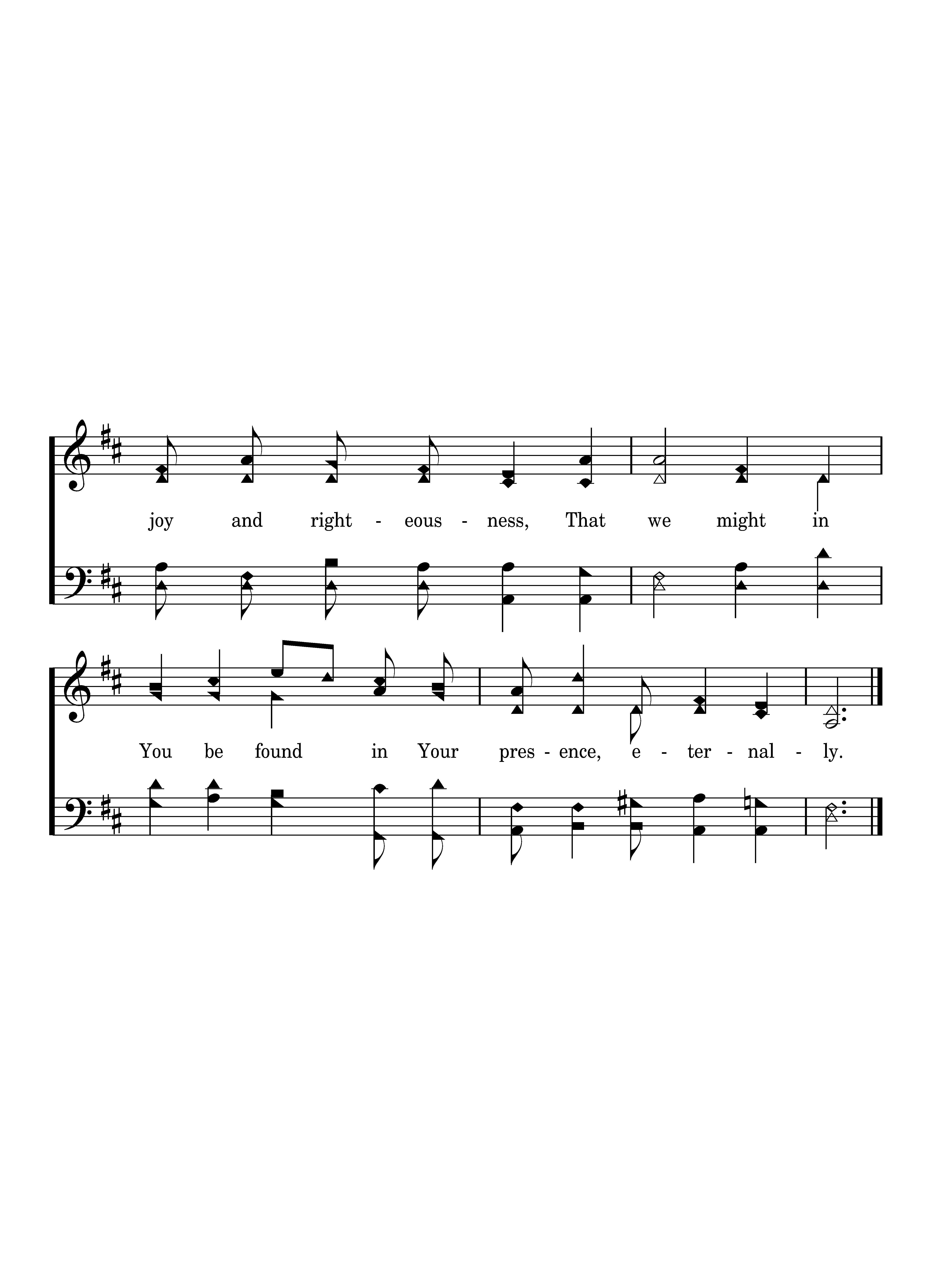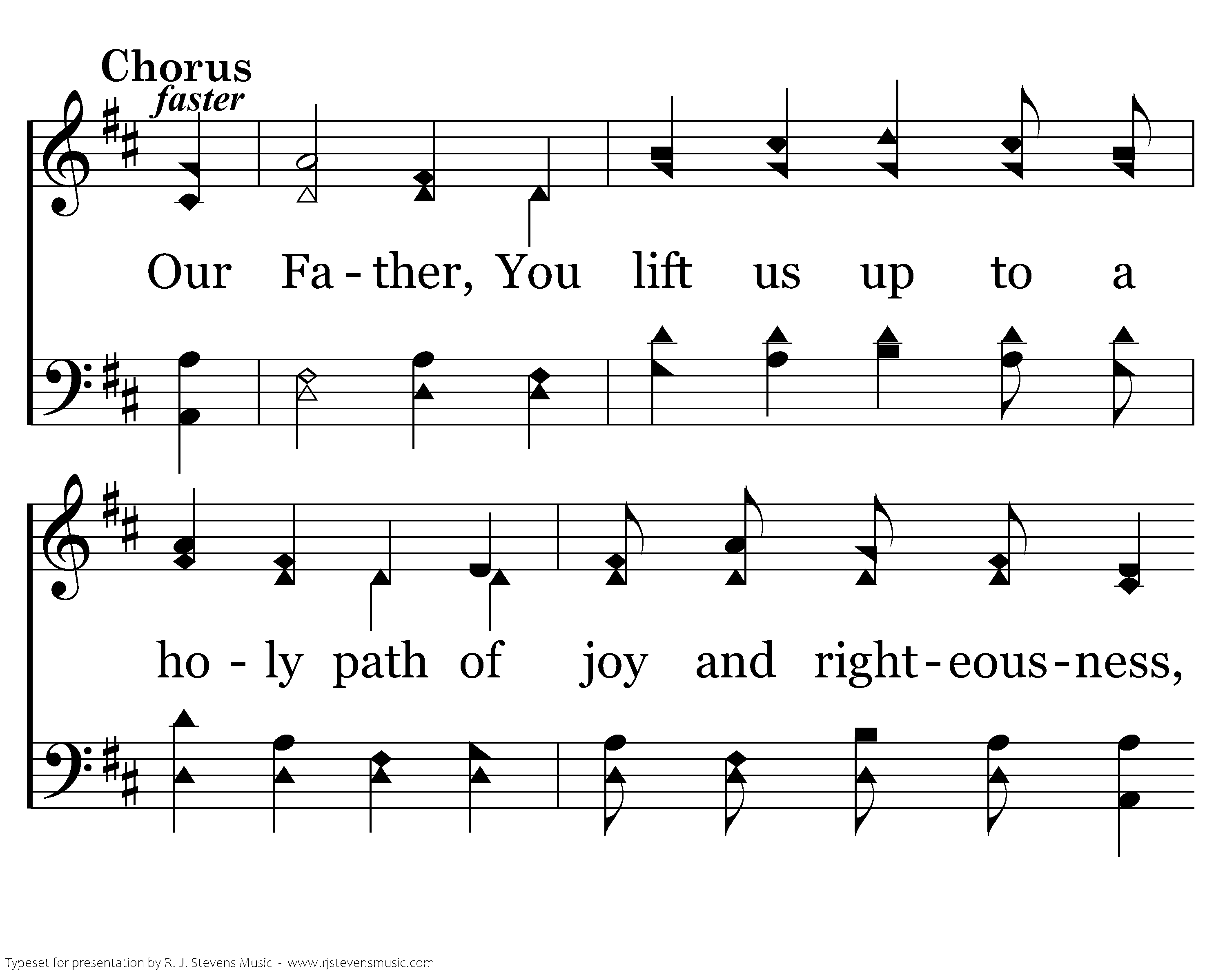 Our Father, You lift us up to a holy path of joy and righteousness, That we might in You be found in Your presence, eternally.