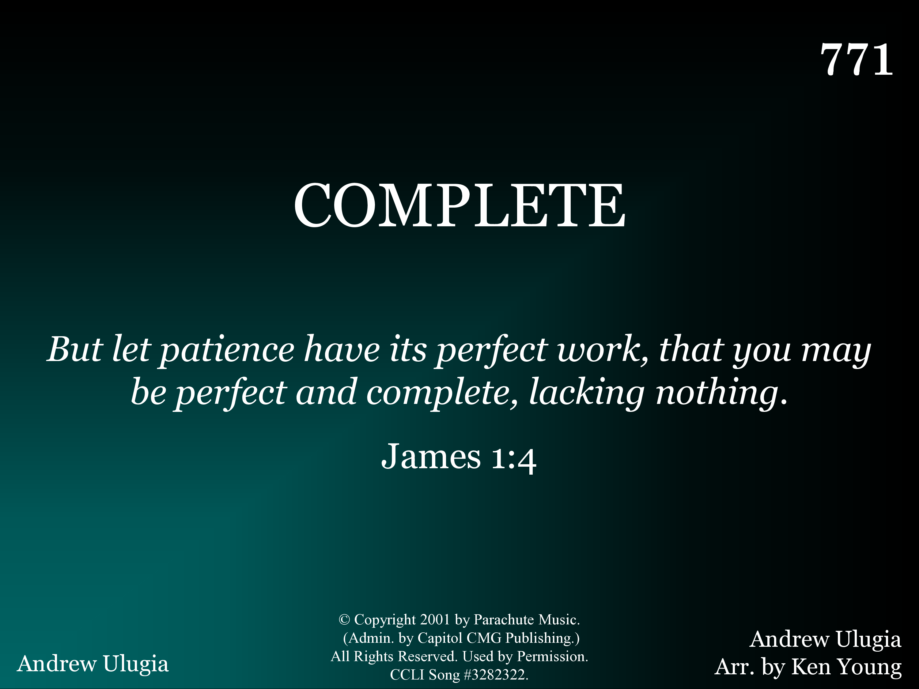 - License required through CCLI, OneLicense, Easy Licensing, or other licensing company for copyright compliance