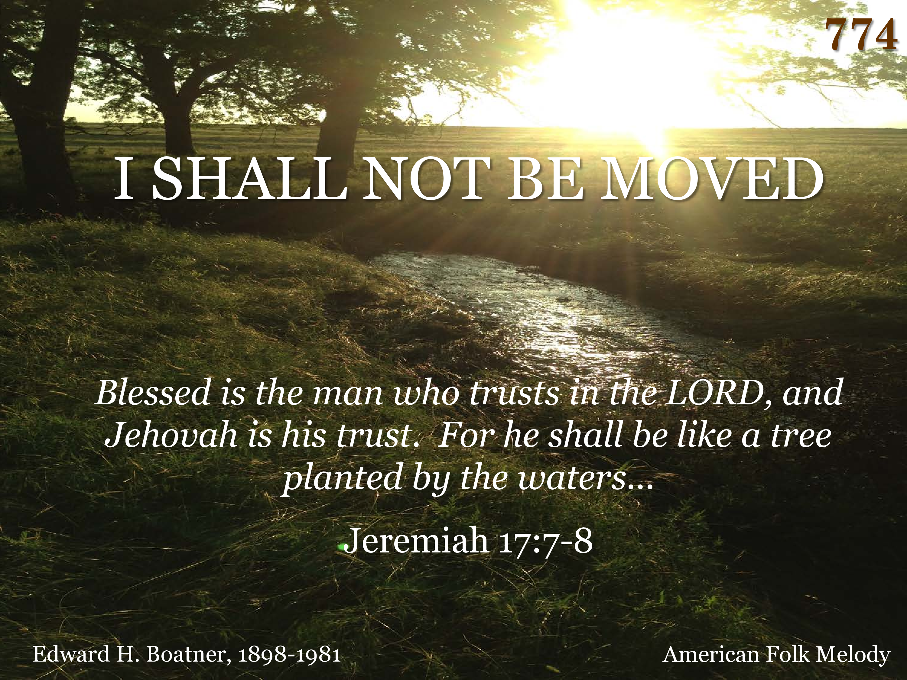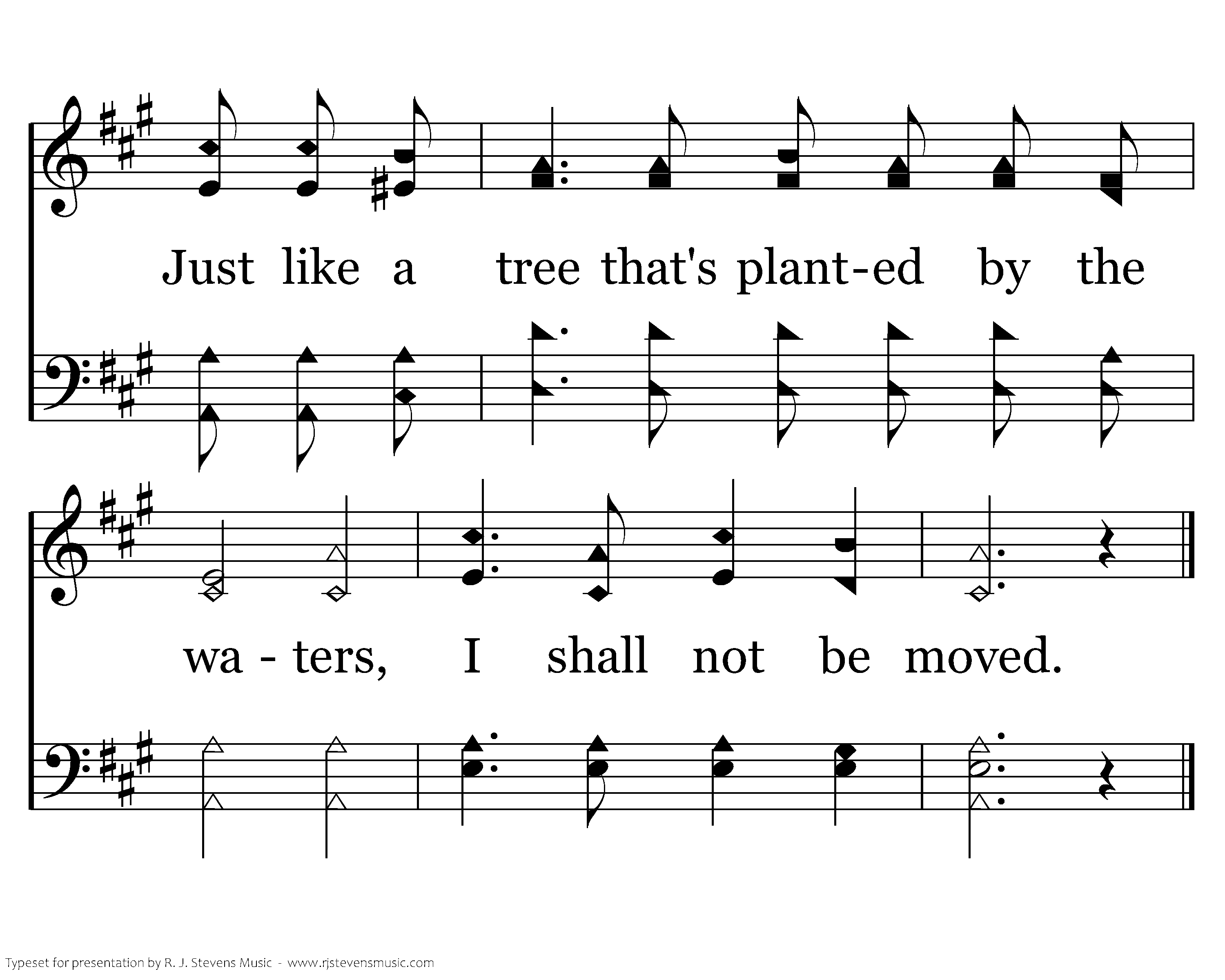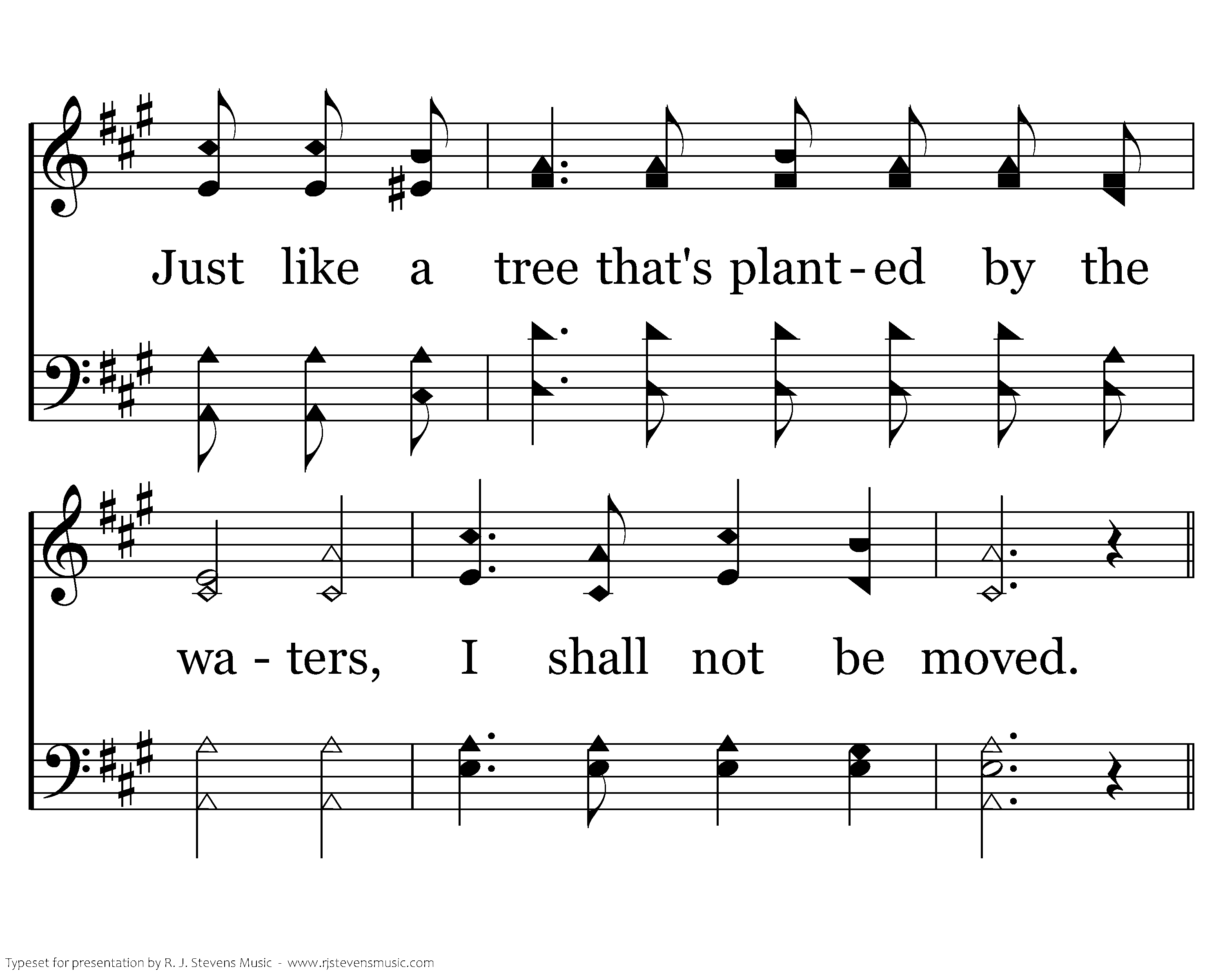 I shall not be, I shall not be moved, Just like a tree that's planted by the waters, I shall not be moved.