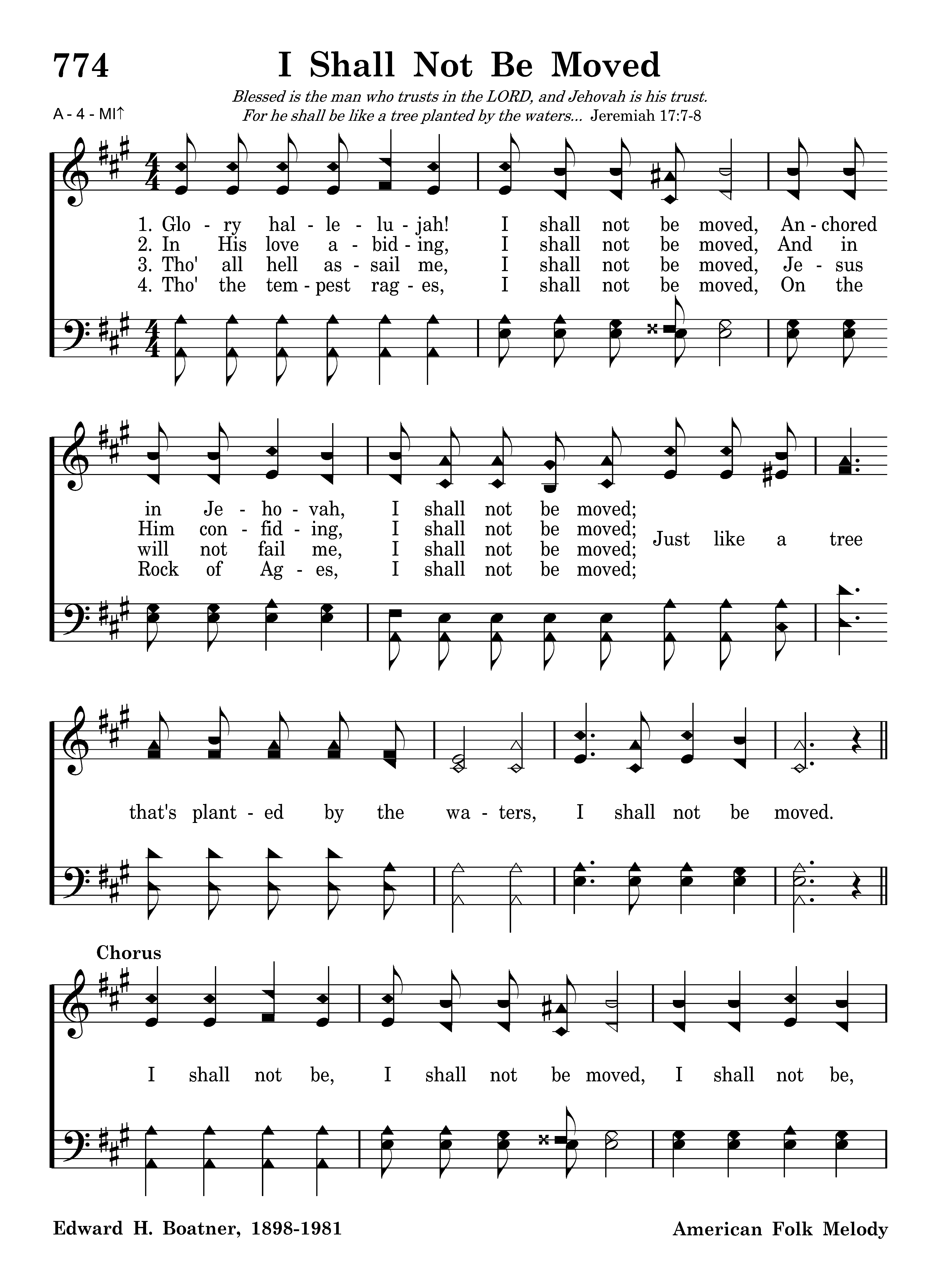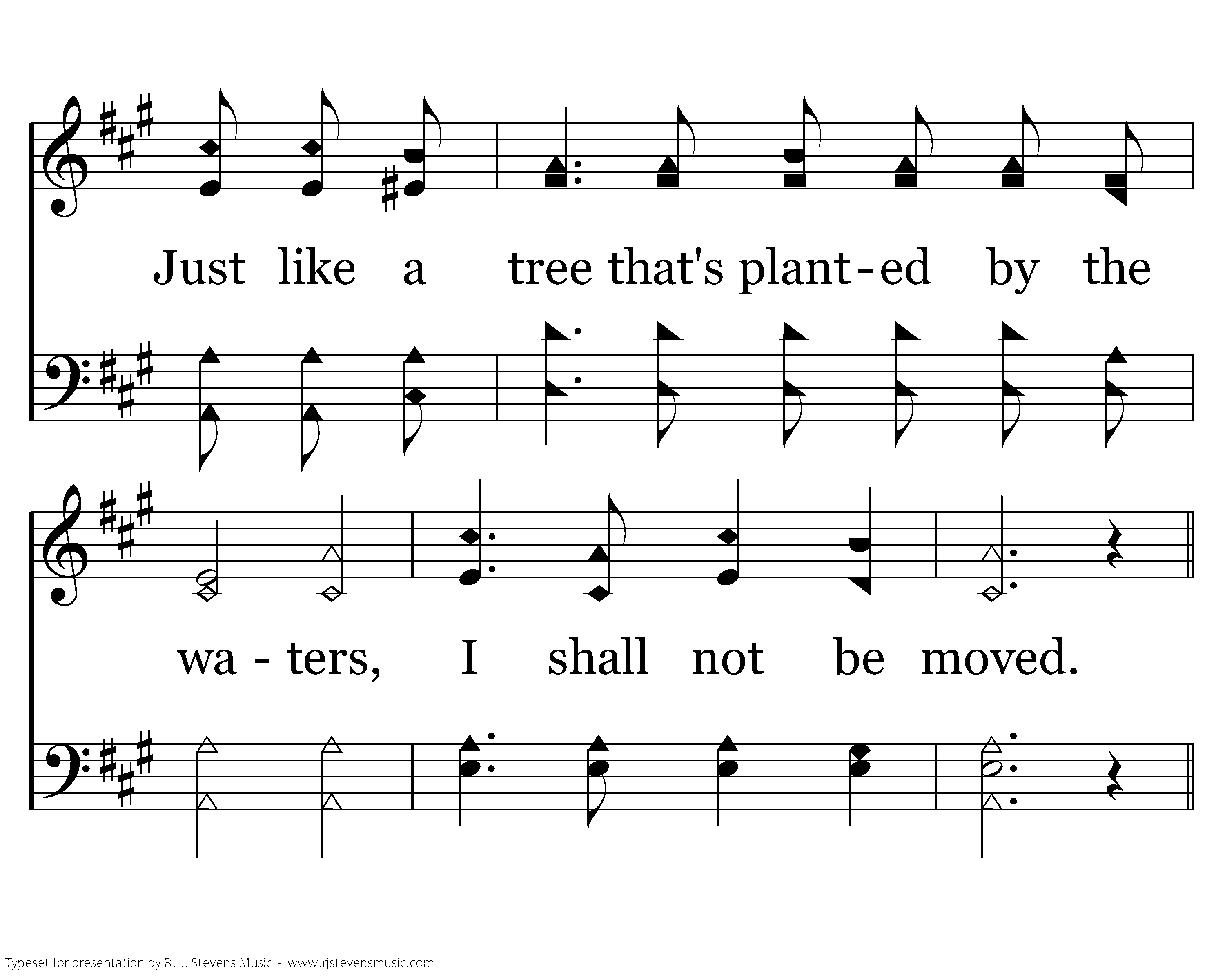 Glory halleluah, I shall not be moved. Just like a tree that's planted by the waters, I shall not be moved.