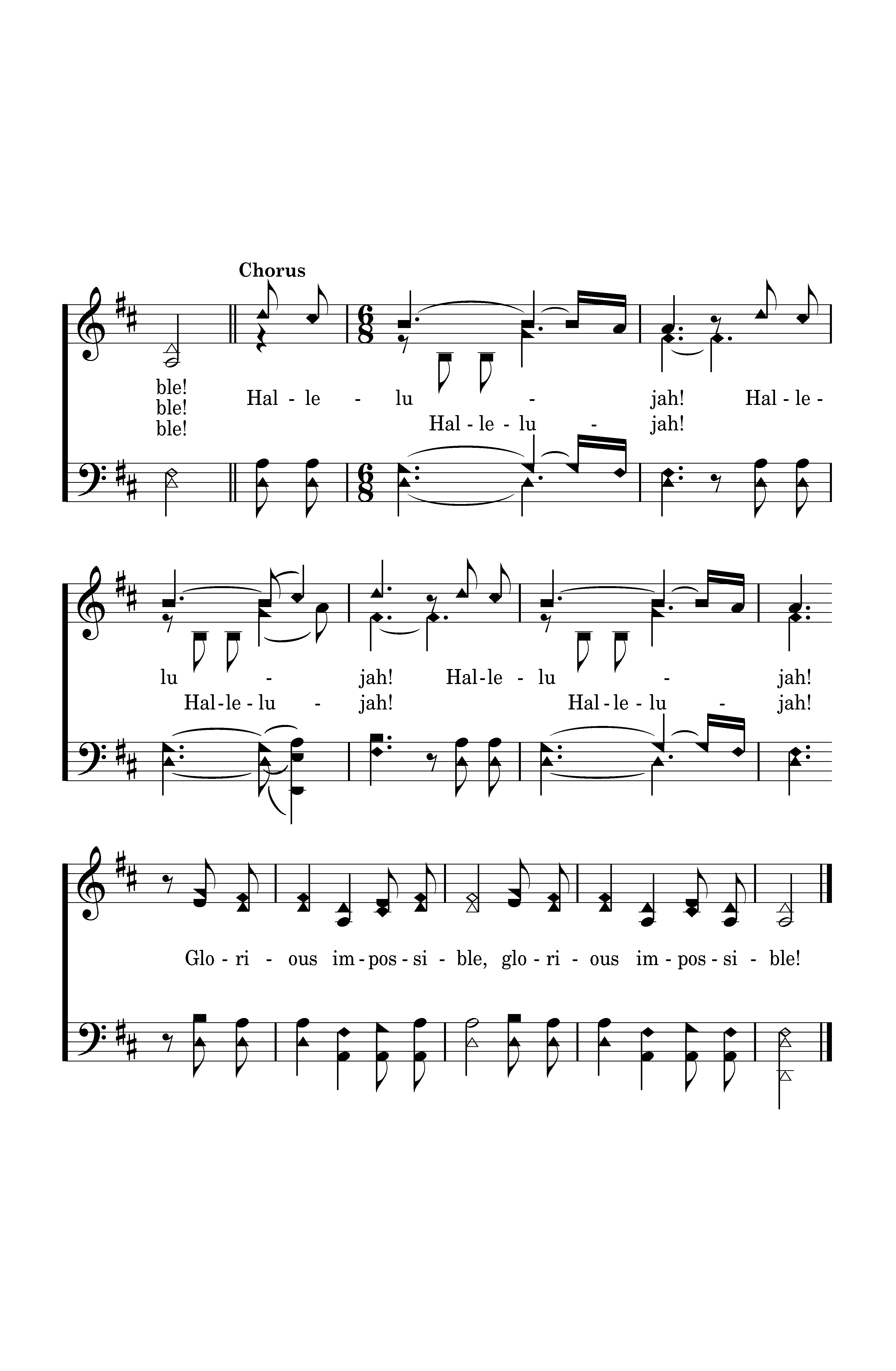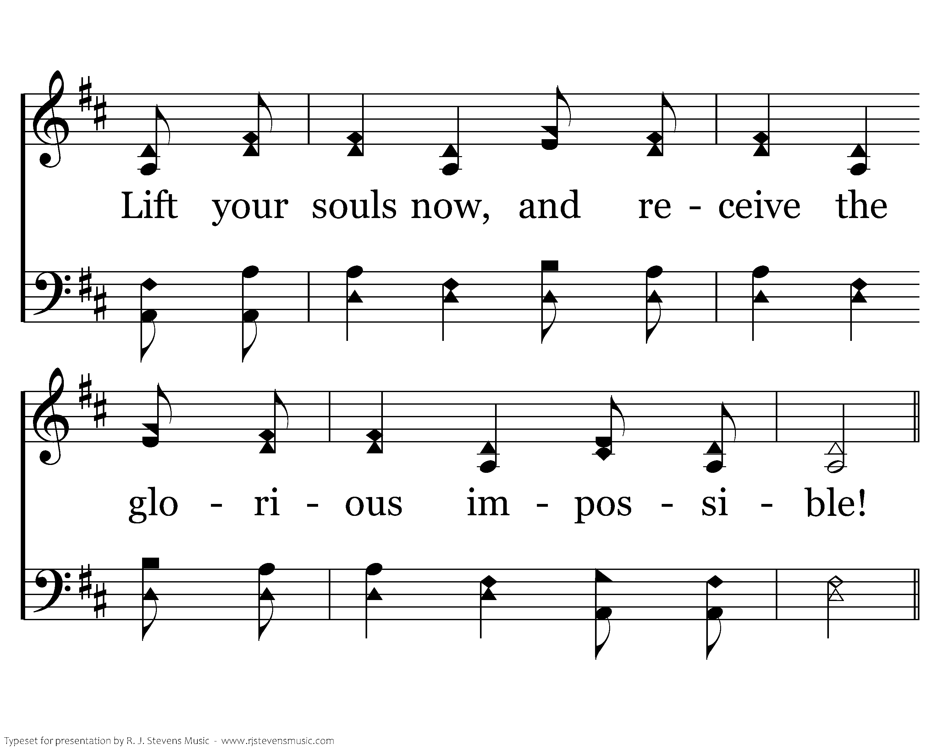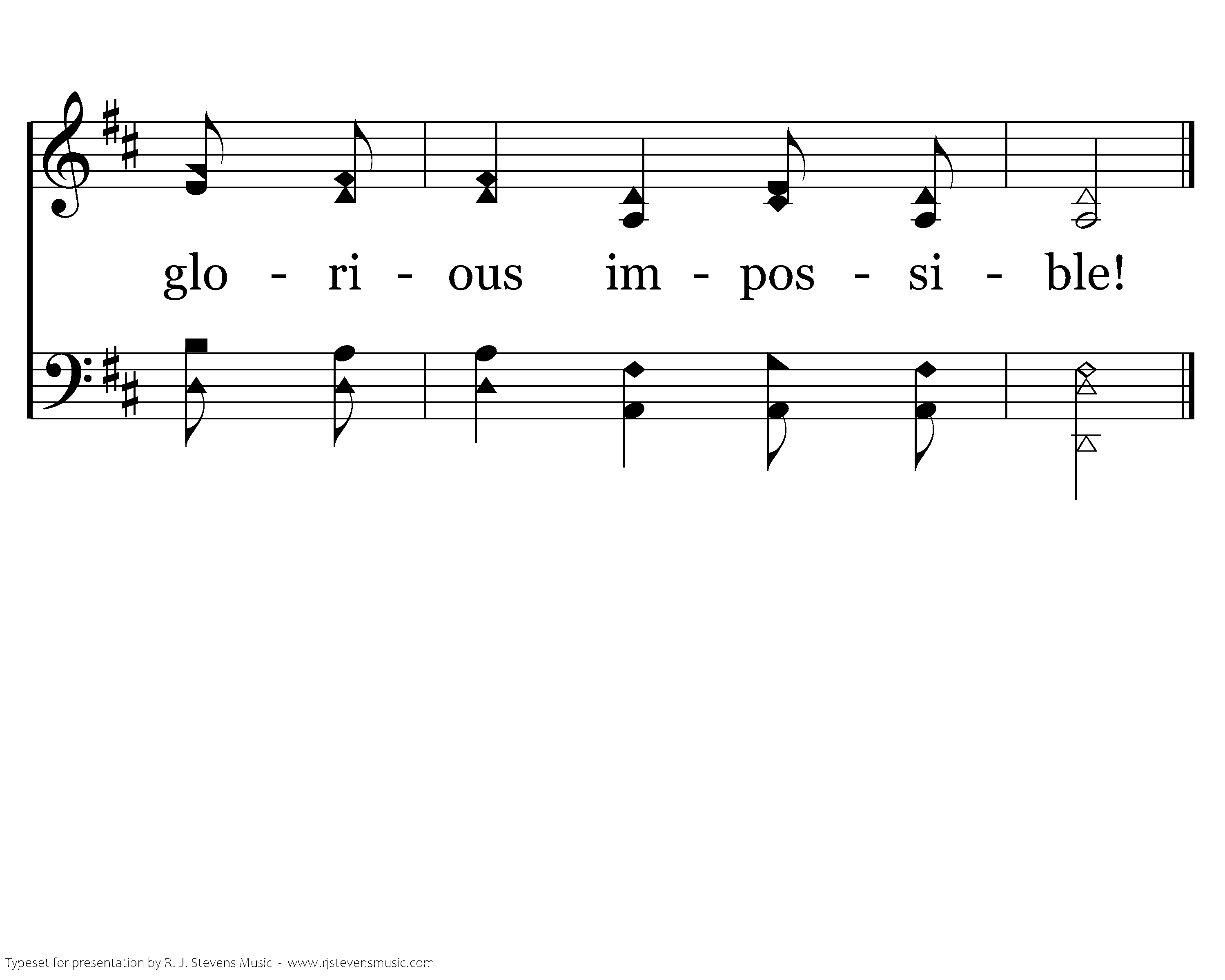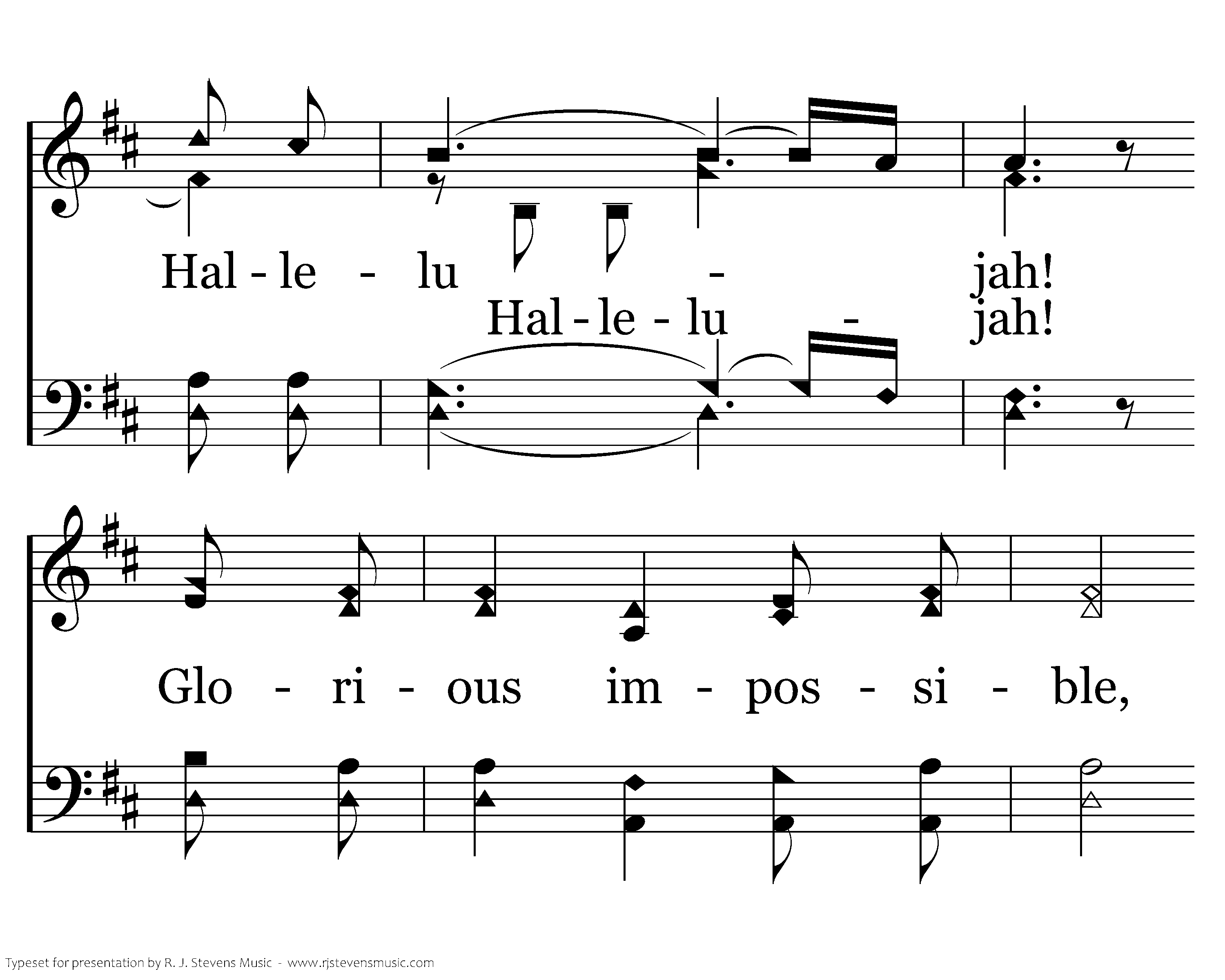 Hallelujah! Hallelujah! Hallelujah! Glorious impossible, glorious impossible! Hallelujah! Hallelujah! Hallelujah!