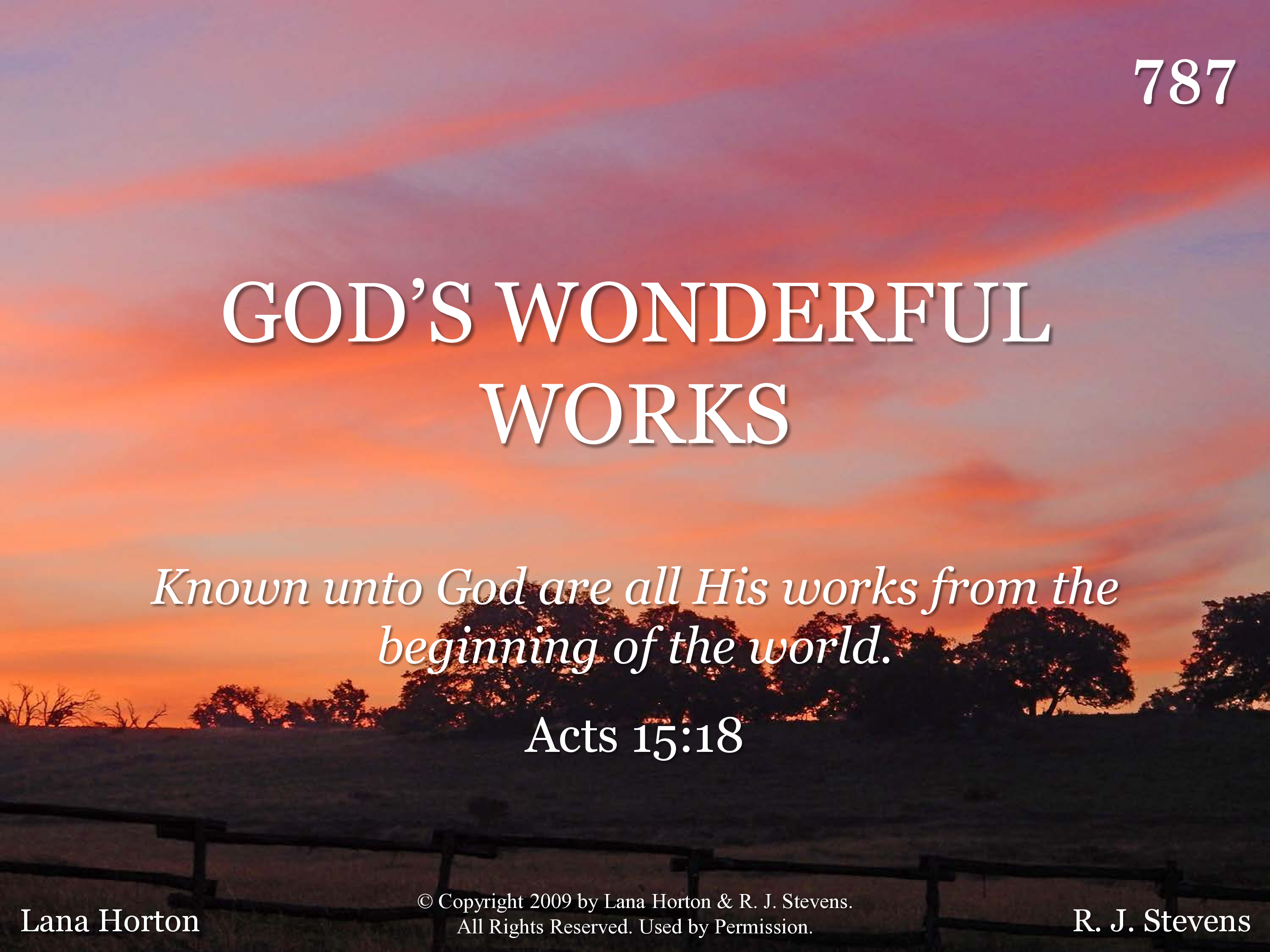 - Copyright © 2009 by Lana Horton & R. J. Stevens. All Rights Reserved. Used by Permission.