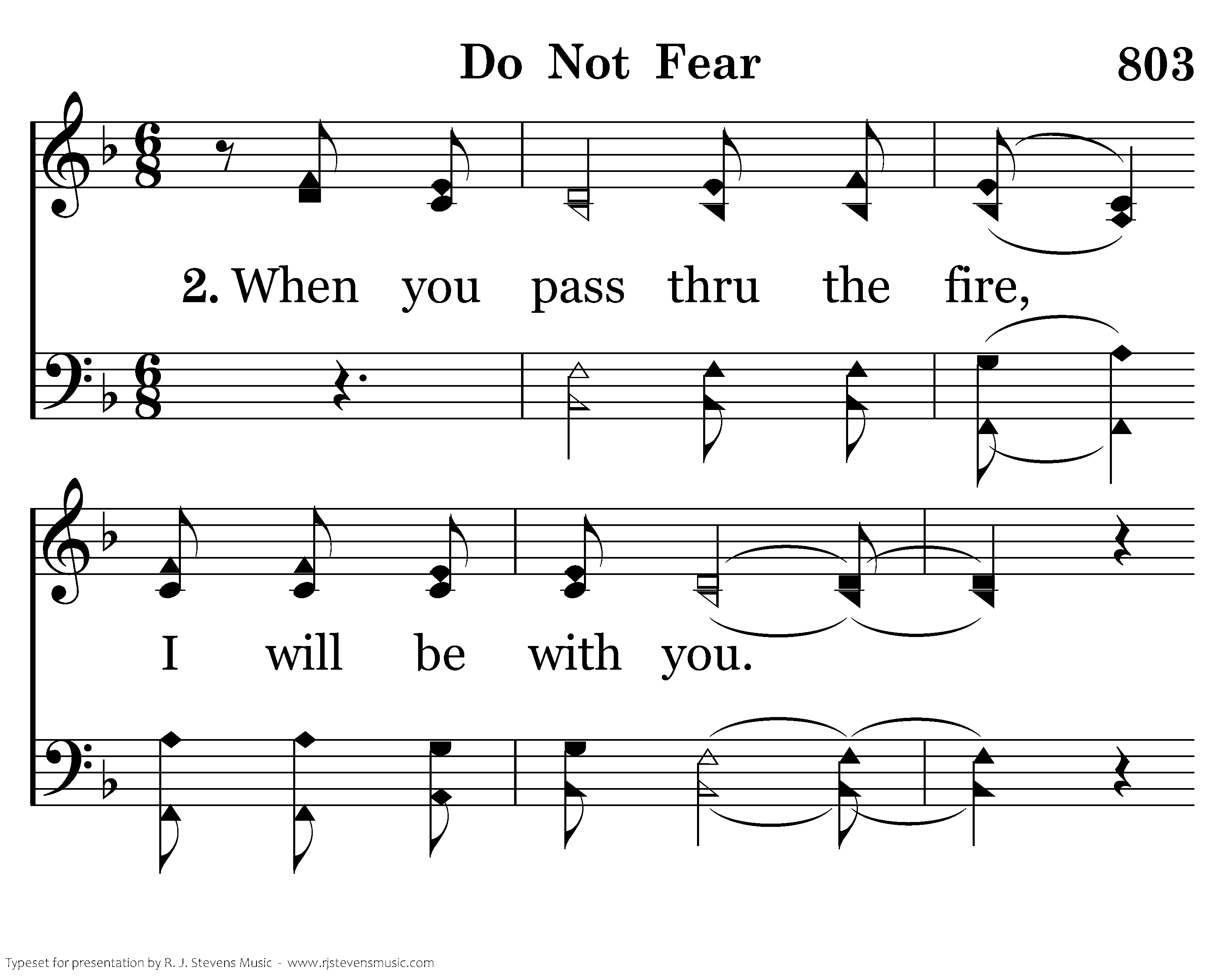 When you pass the fire, I will be with you. And flames will not all consume you. Do not fear. For I have redeemed you. I have called you by name, you are mine. For I am the Lour God. I am the Holy One of Israel your Savior. Do not fear. I am the Lord, Do not fear.