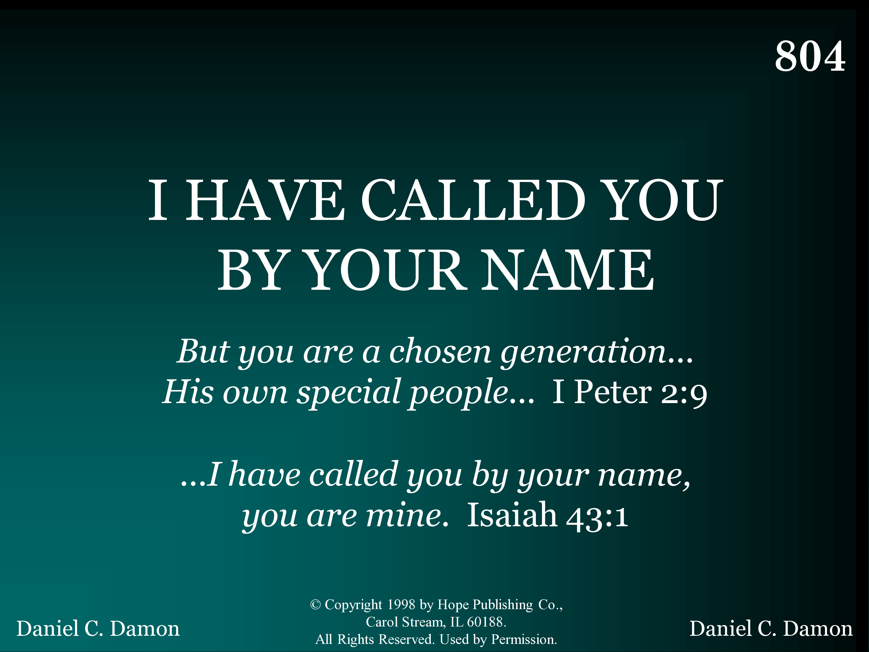 - Copyright © 1998 by Hope Publishing Co. (Admin. by Hope Publishing Co.) All Rights Reserved. Used by Permission.