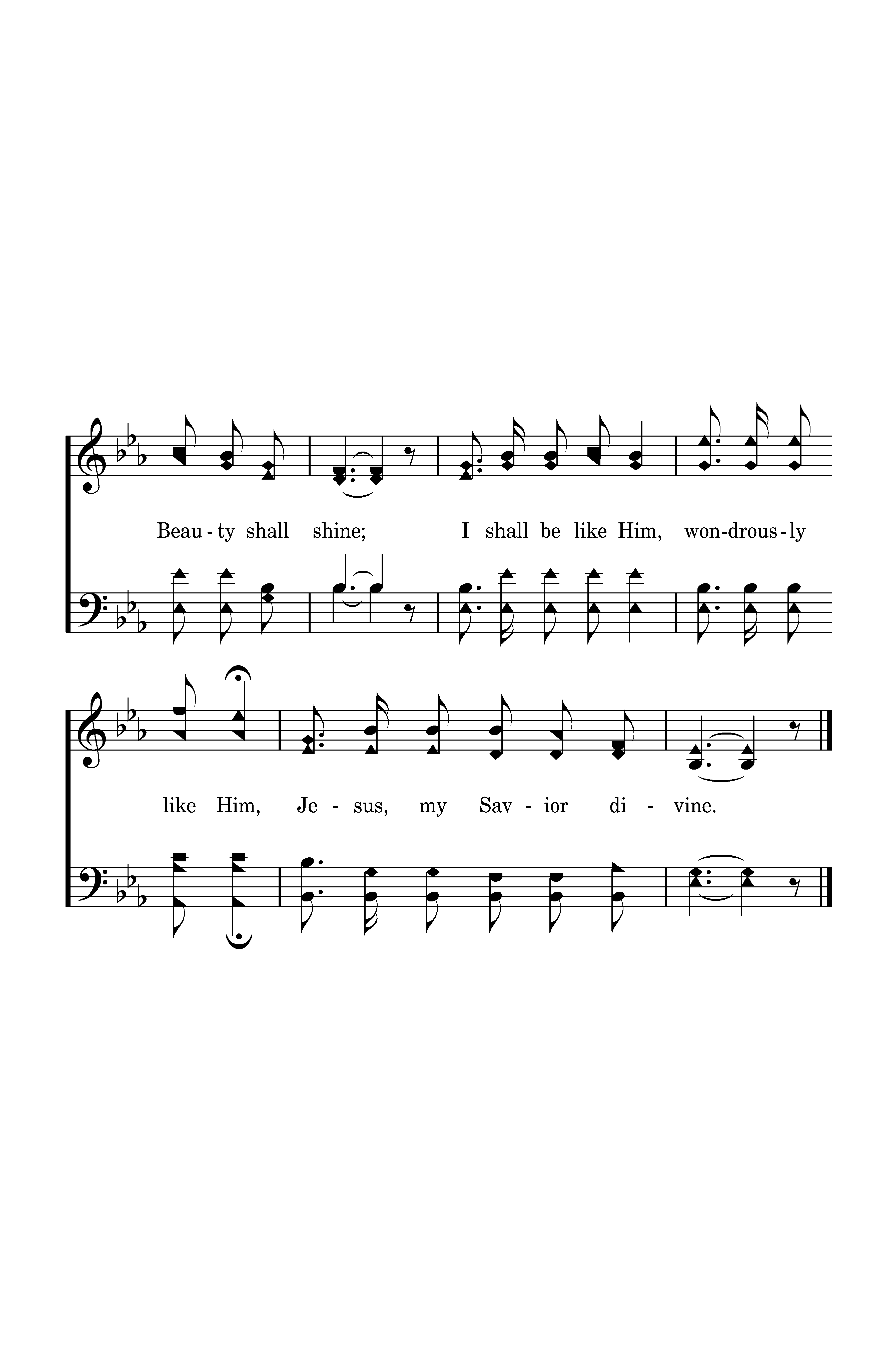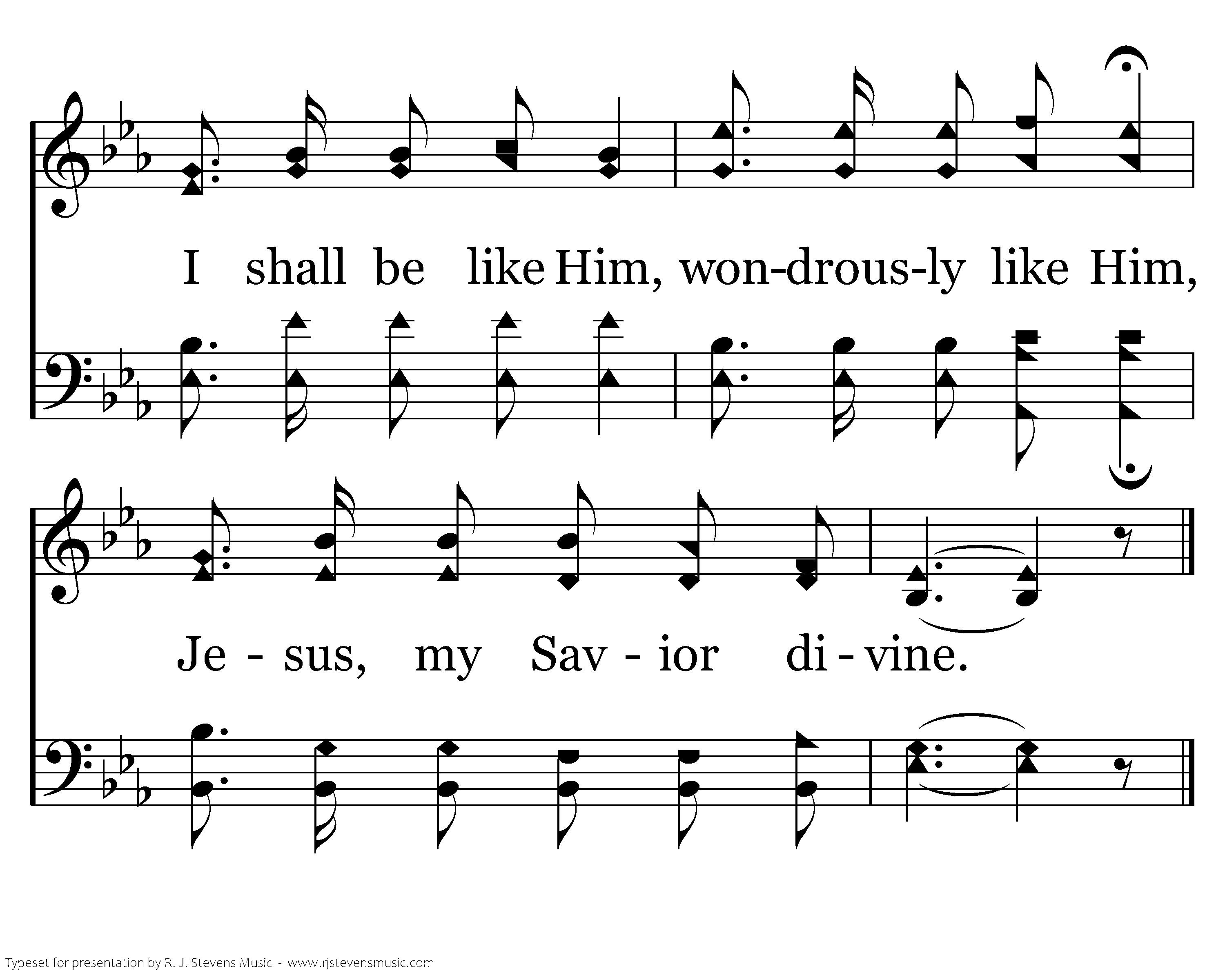 I shall I shall be like Him, I shall be like Him, And in His Beauty shall shine; I shall be like Him, wondrously like Him, Jesus, my Savior divine.