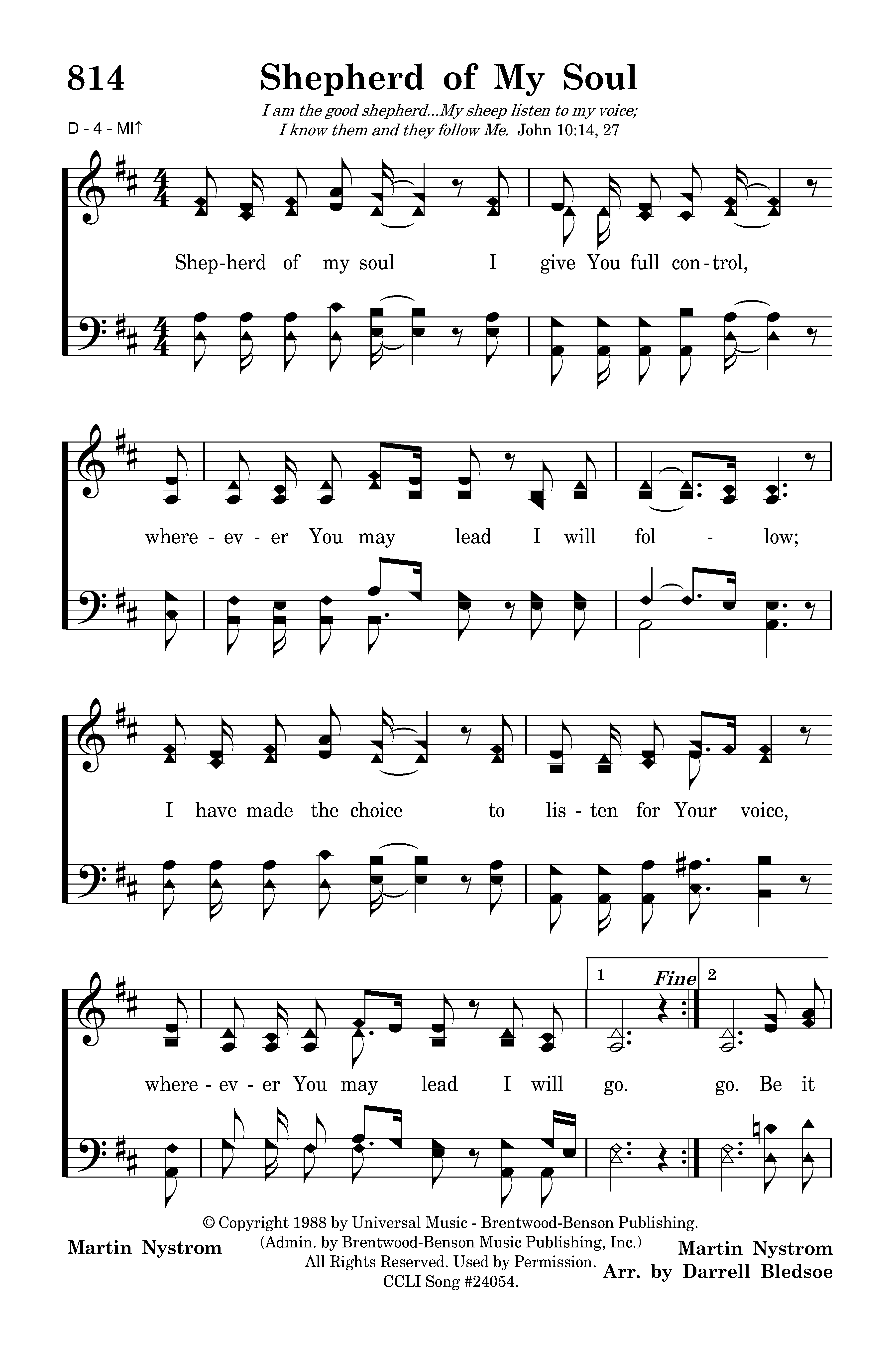 - Copyright © 1988 by Universal Music – Brentwood Benson Publishing. (Admin. by Brentwood-Benson Music Publishing, Inc.) All Rights Reserved. Used by Permission.