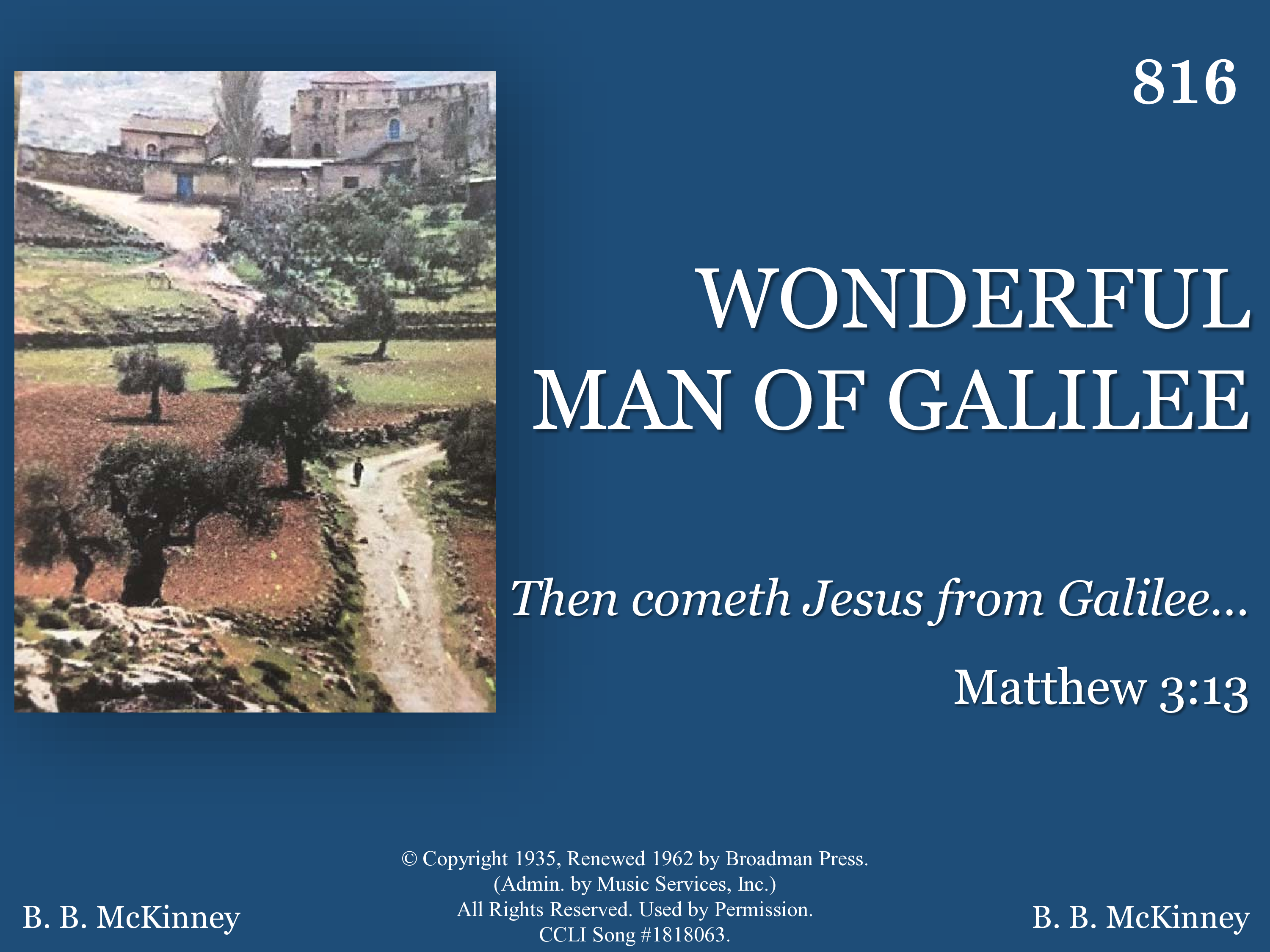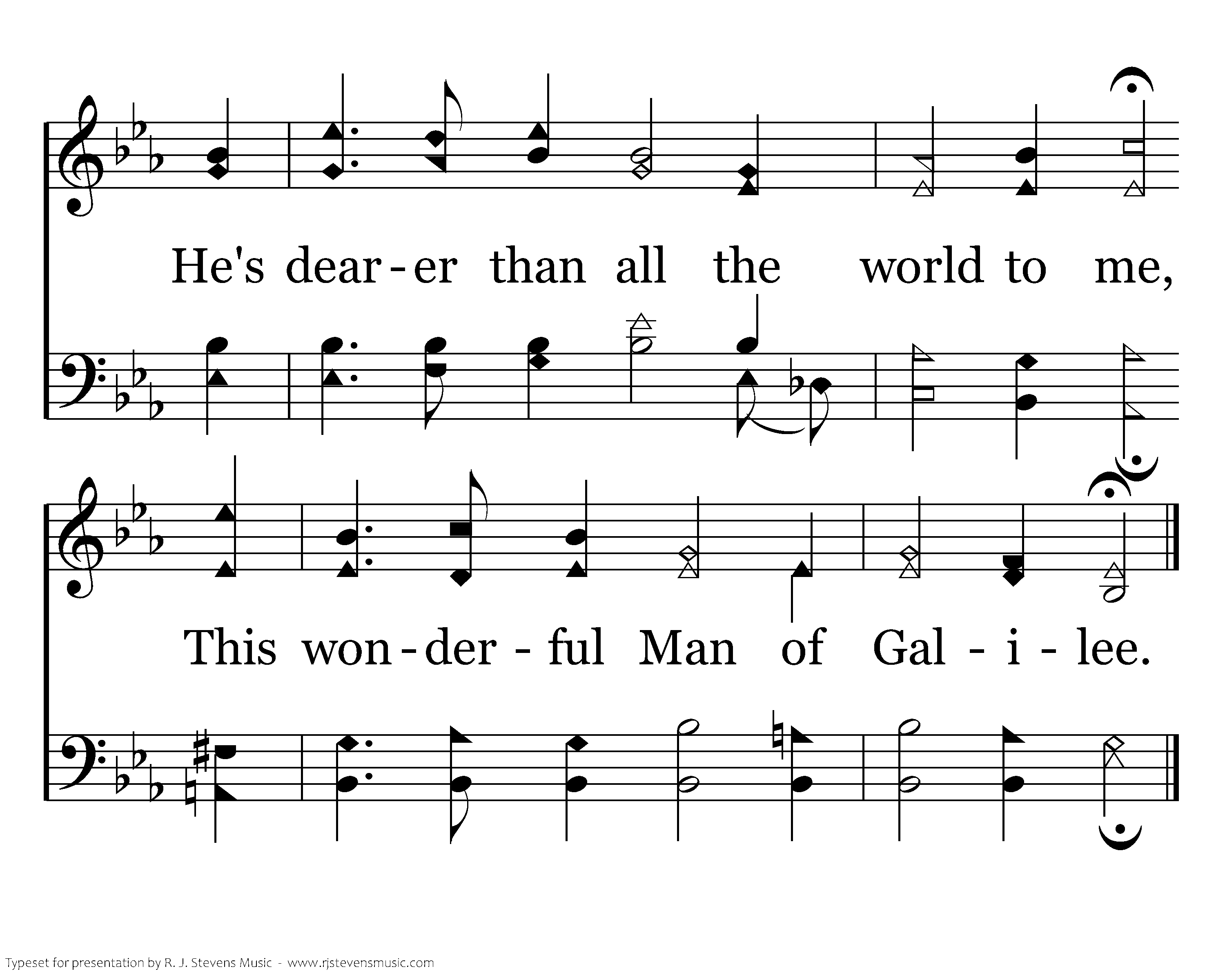 Wonderful Man of Galilee; Wonderful Man of Galilee; He's dearer than all the world to me, This wonderful Man of Galilee.