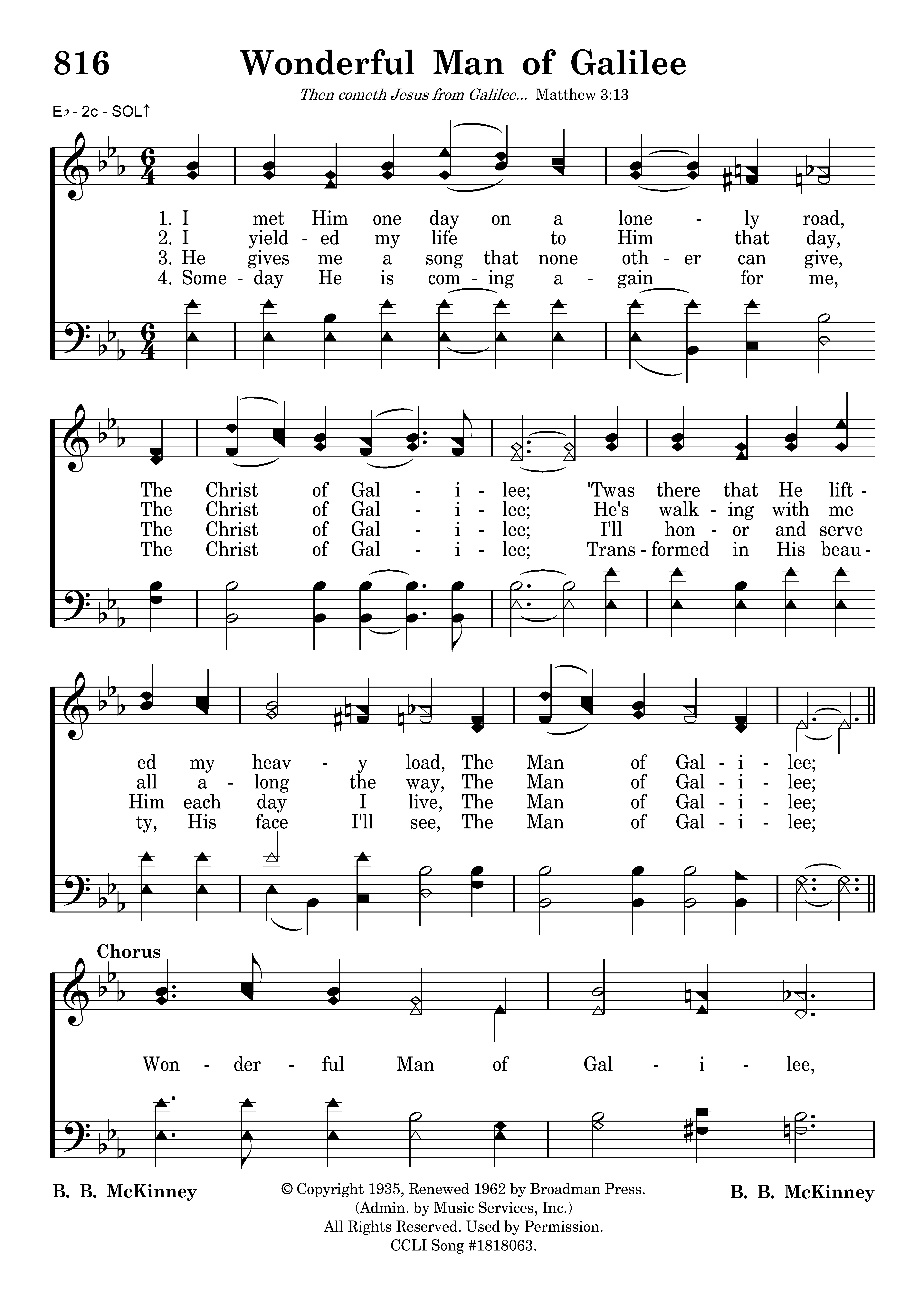 I met Him one day on a lonely road, The Christ of Galilee; 'Twas there that He lifted my heavy load, The Man of Galilee;