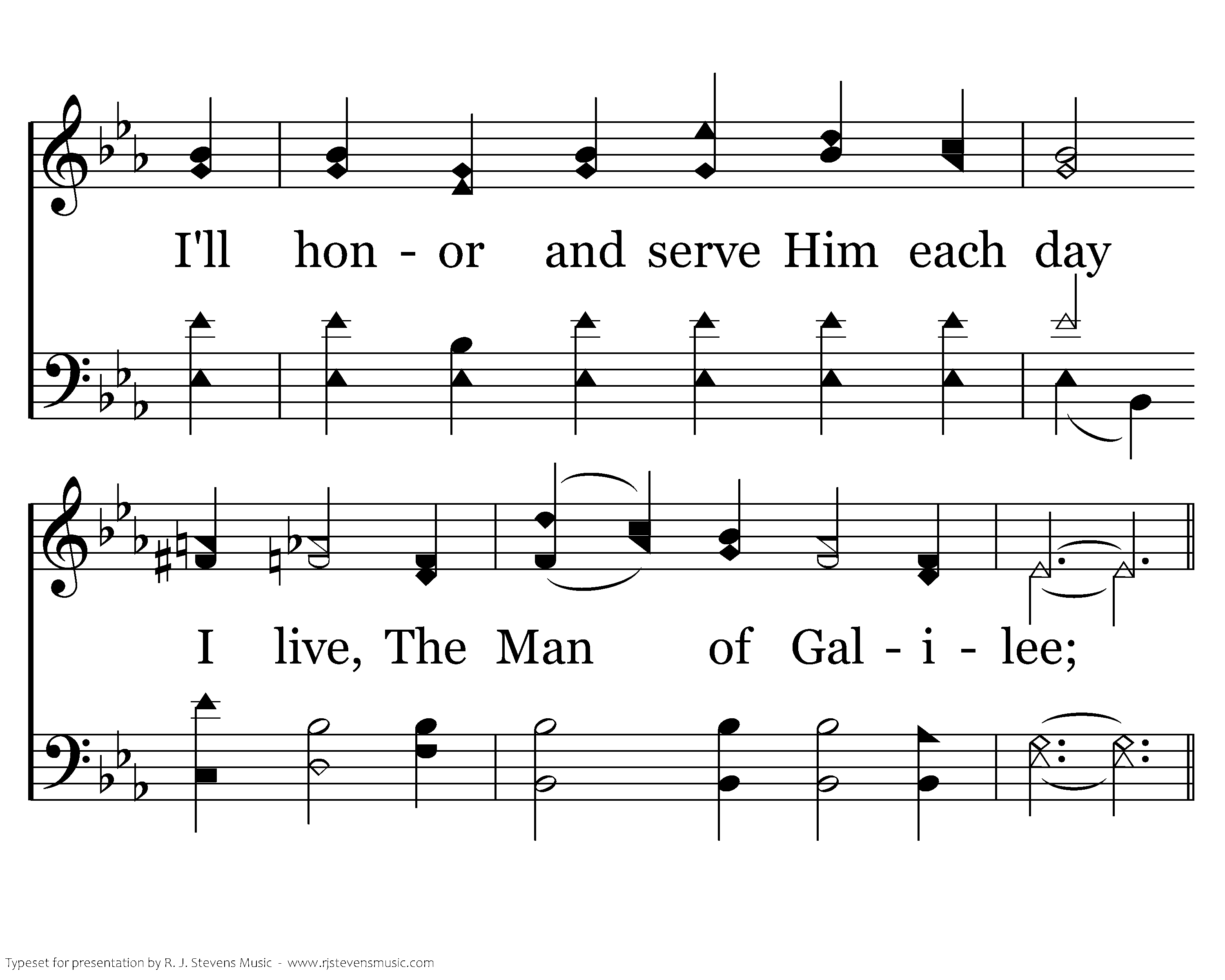 He gives me a song that none other can give, The Christ of Galilee; I'll honor and serve Him each day I live, The Man of Galilee;