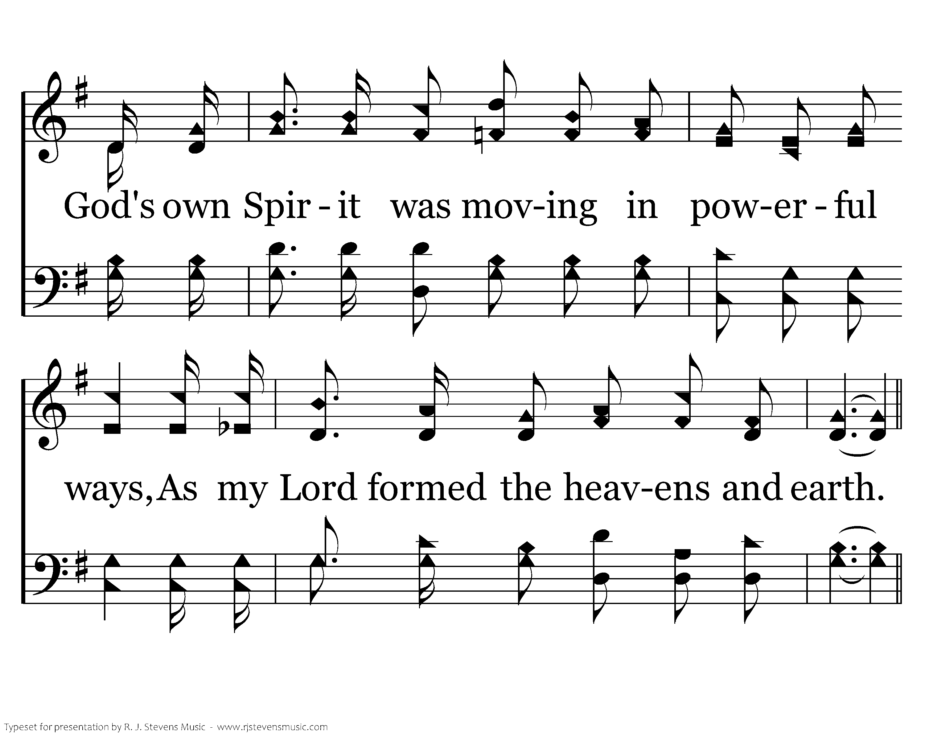 When darkness was on the face of the deep, God spoke and light filled the whole world. God's own Spirit was moving in powerful ways, As my Lord formed the heavens and earth.