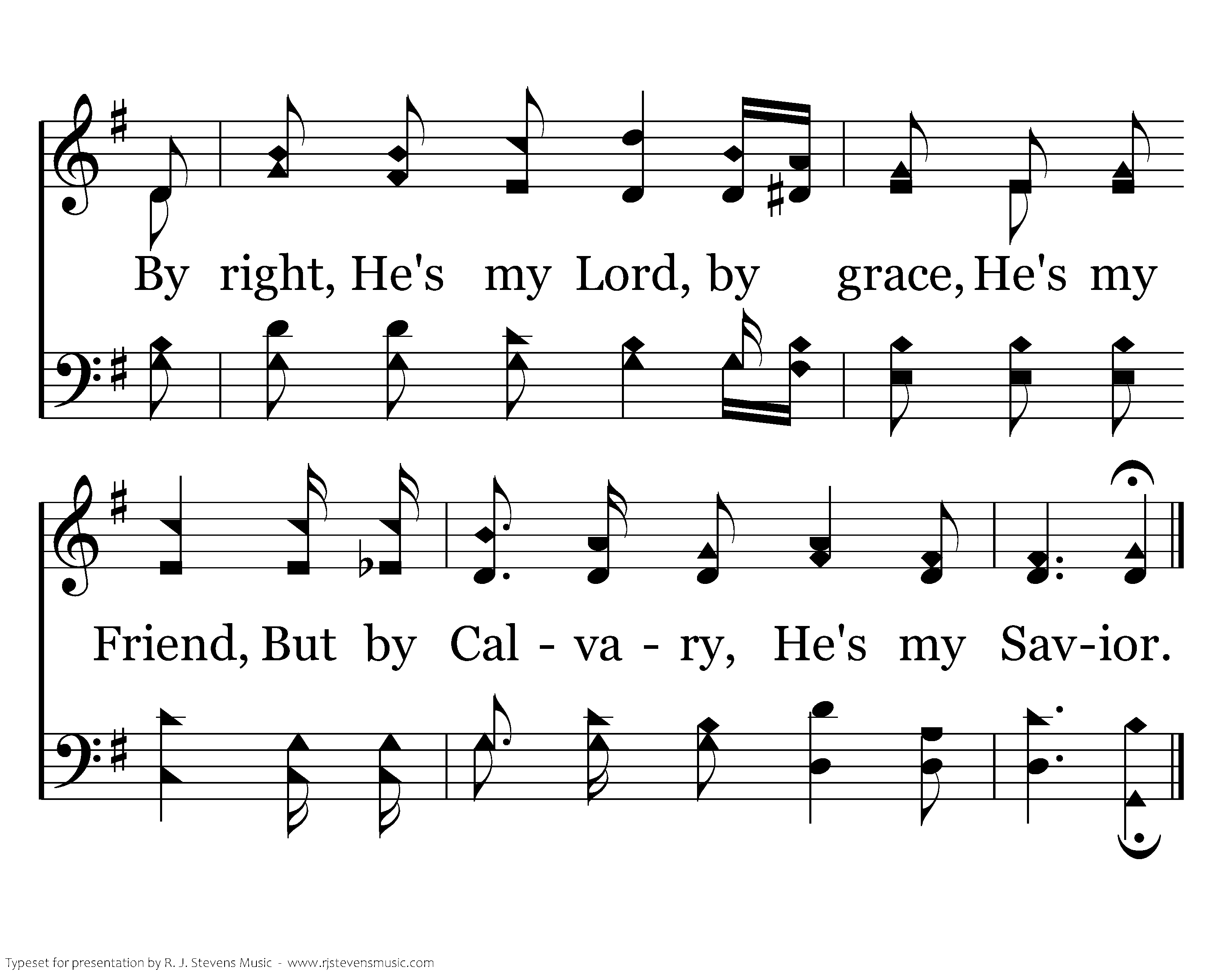 My Savior is Lord of Heaven and earth; Precious Friend who has died for me. By right, He's my Lord, by grace, He's my Friend, But by Calvary, He's my Savior.