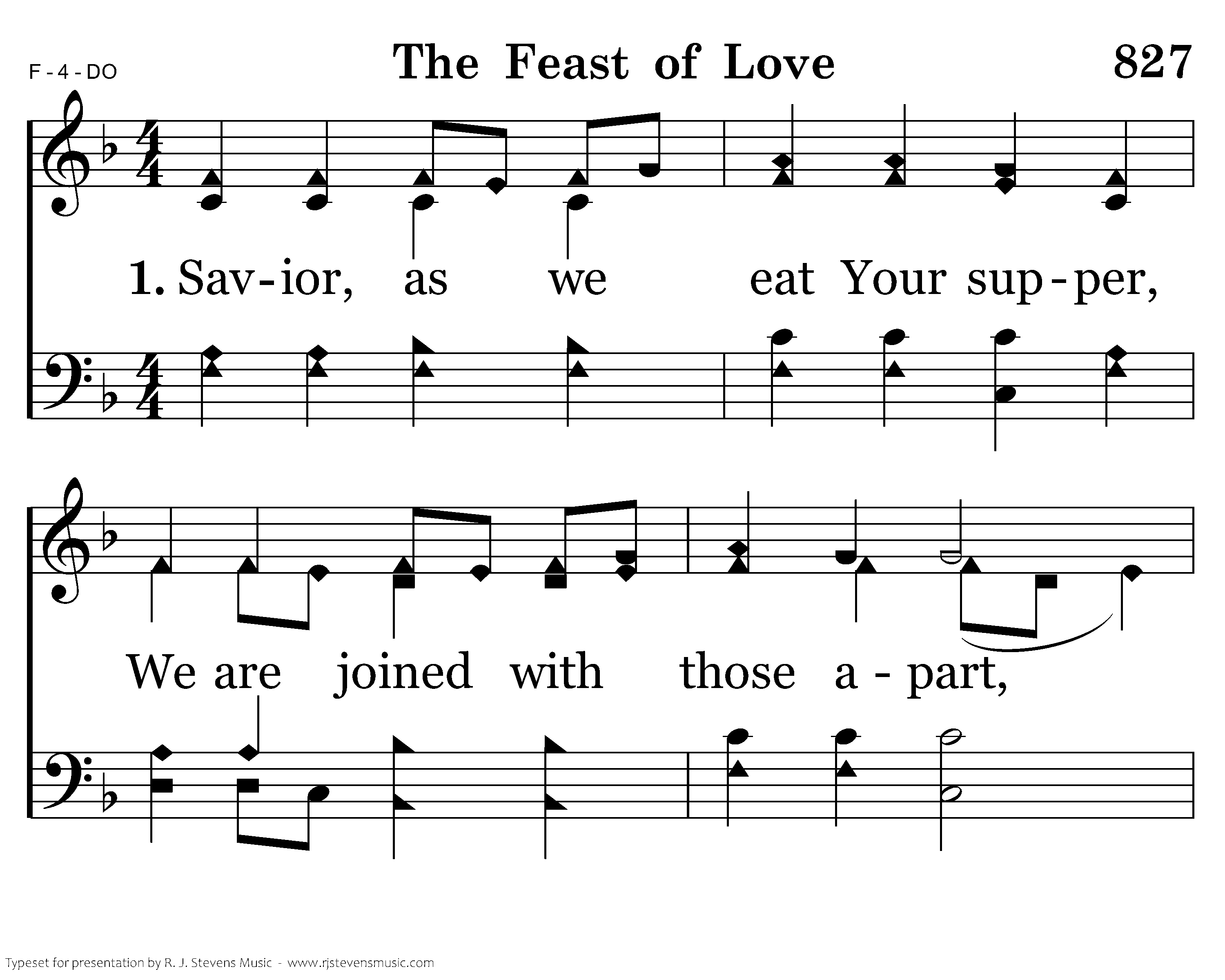 Savior, as we eat Your supper, We are joined with those apart. Joined in memory and worship, Near in worthiness of heart.
