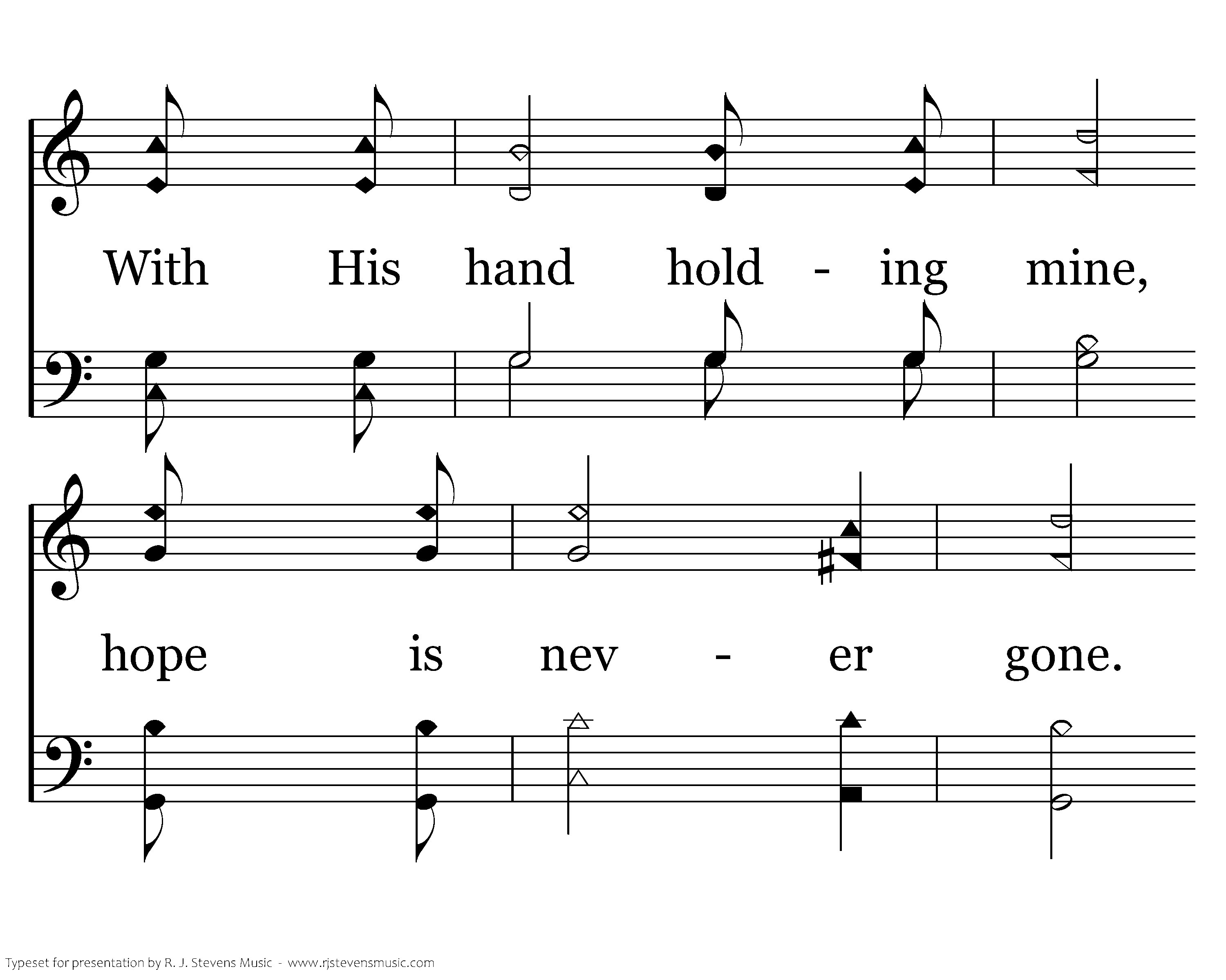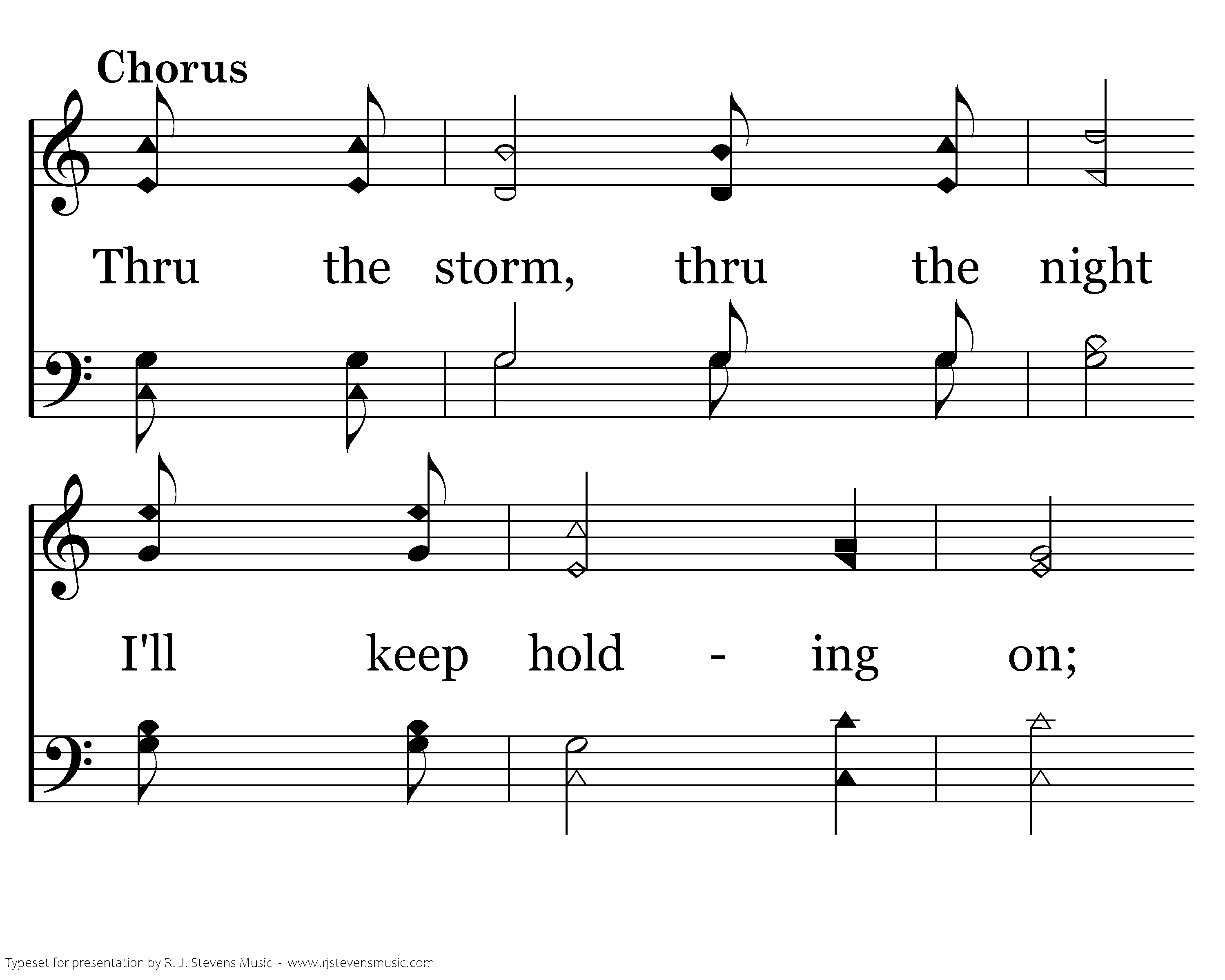 Thru the storm, thru the night I'll keep holding on; With His hand holding mine, hope is never gone. When I climb the last mile to heaven's land, I'll be led by the Master's hand.