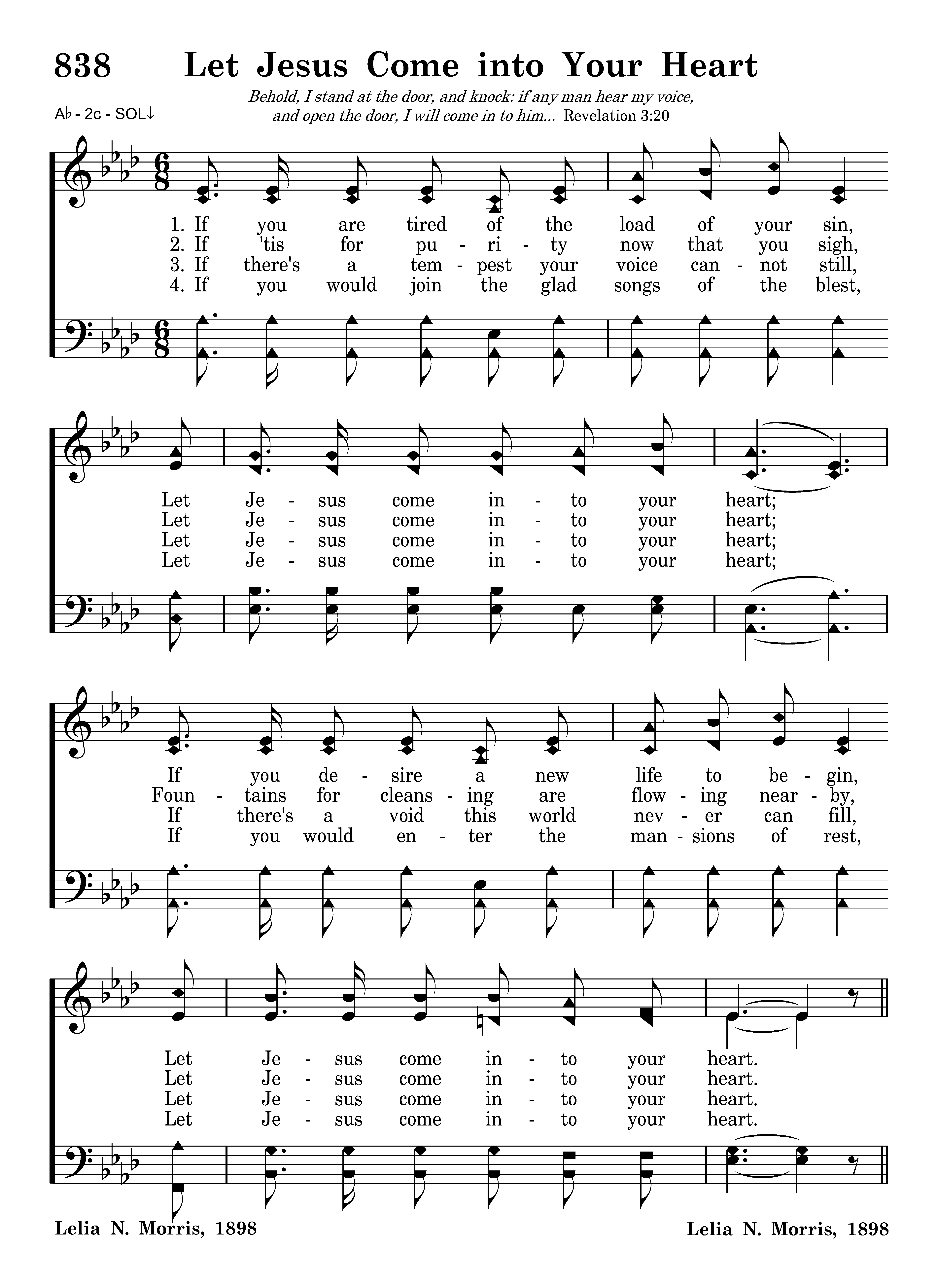 If you would join the glad songs of the blest, Let Jesus come into your heart; If you would enter the mansions of rest, Let Jesus come into your heart.