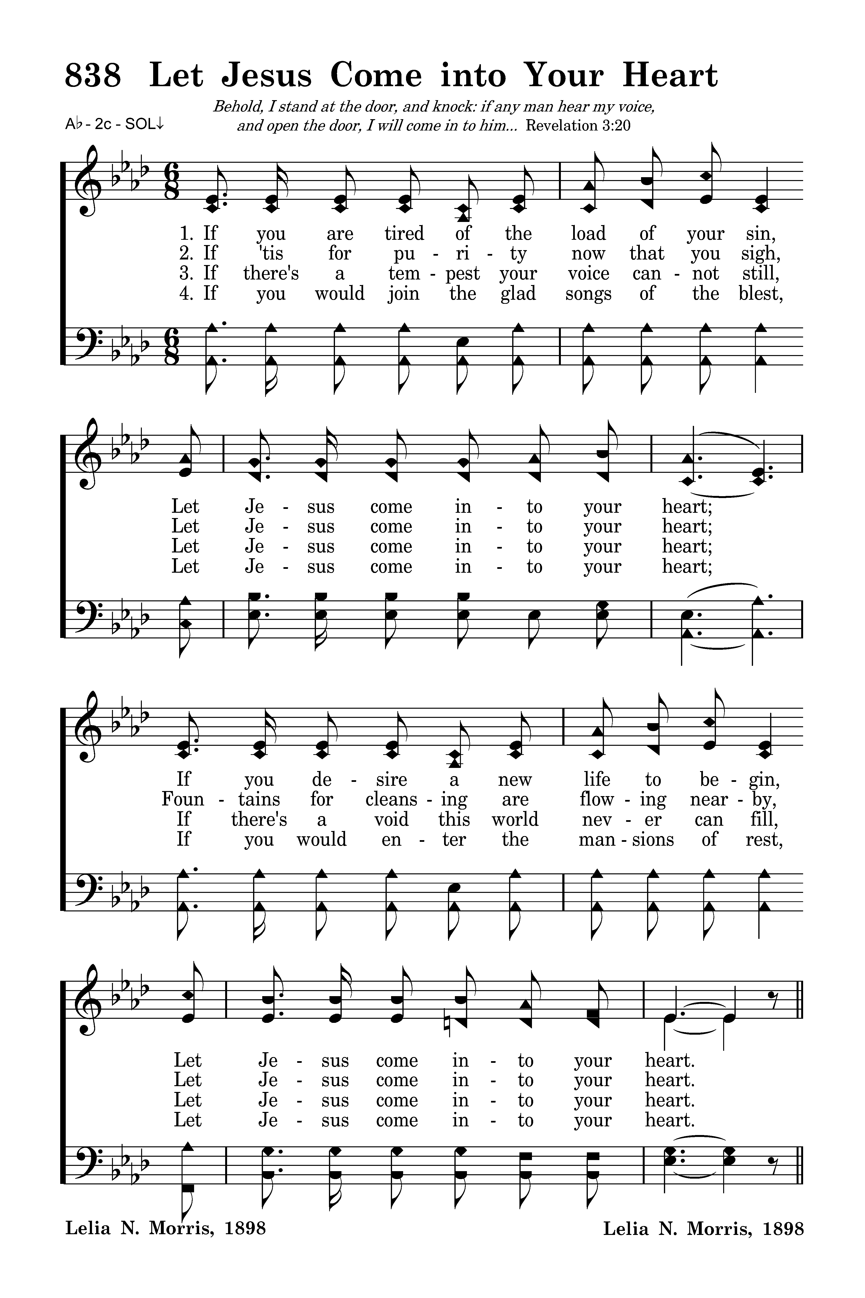 If you are tired of the load of your sin, Let Jesus come into your heart; If you desire a new life to begin, Let Jesus come into your heart.