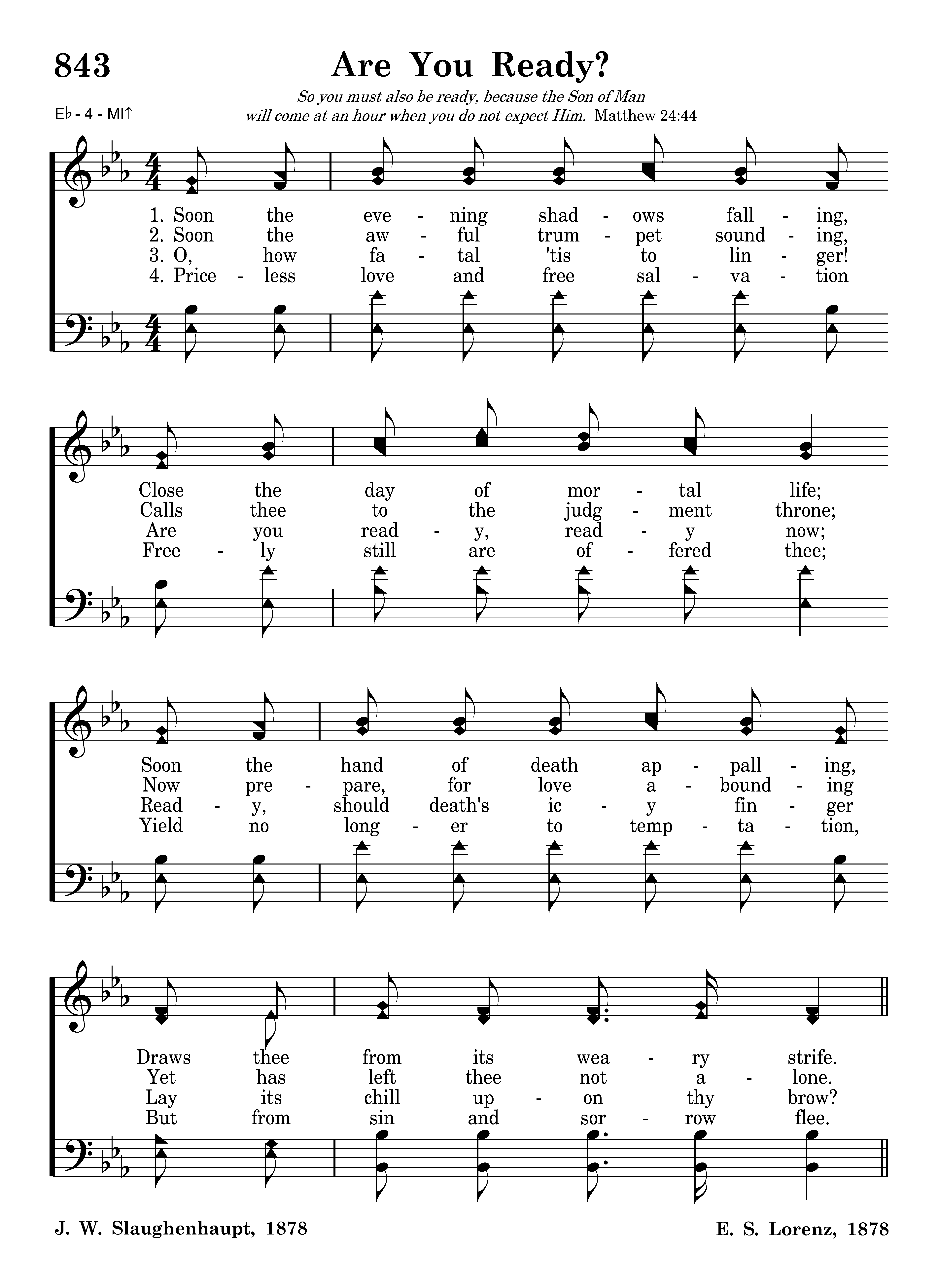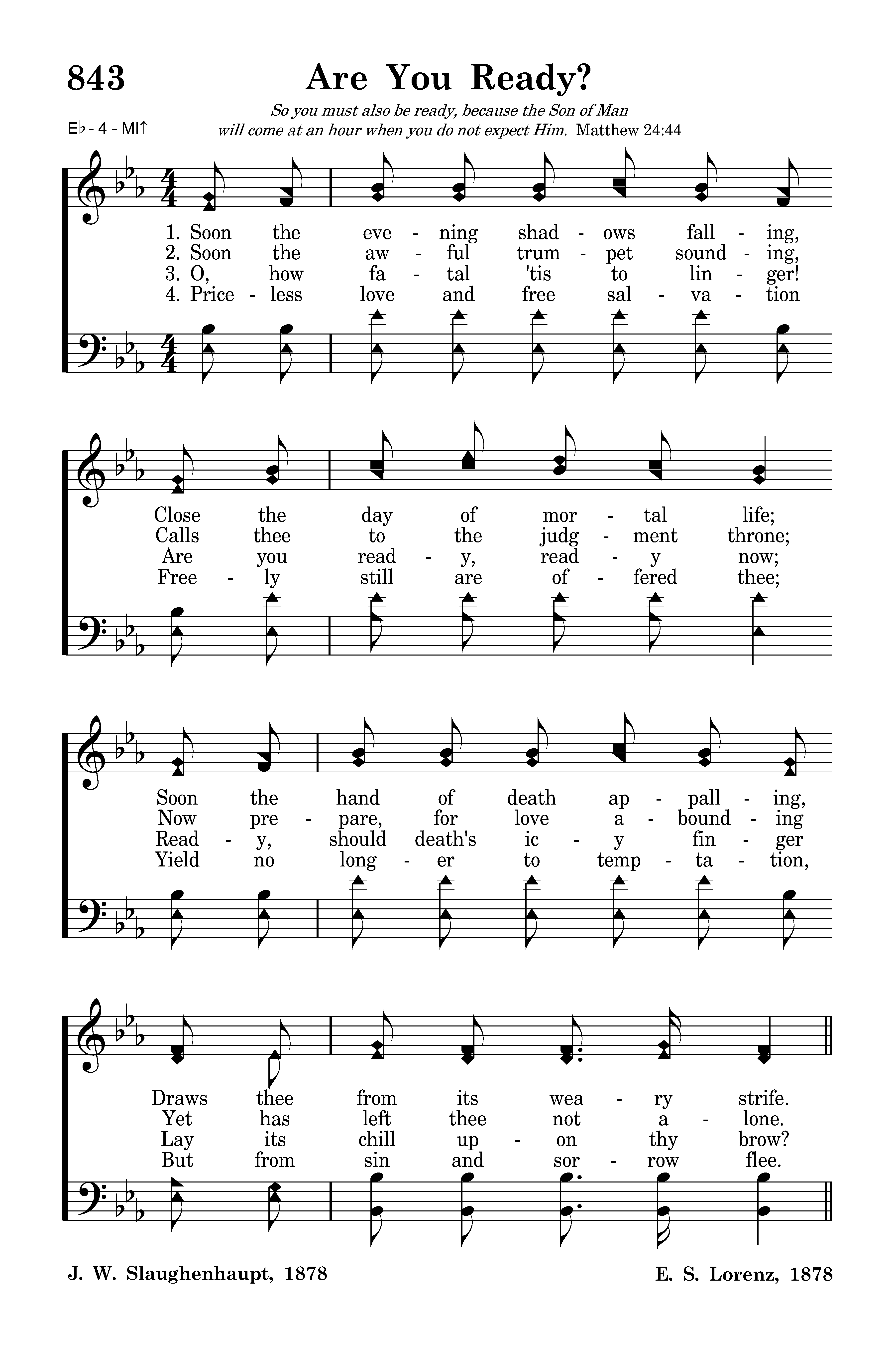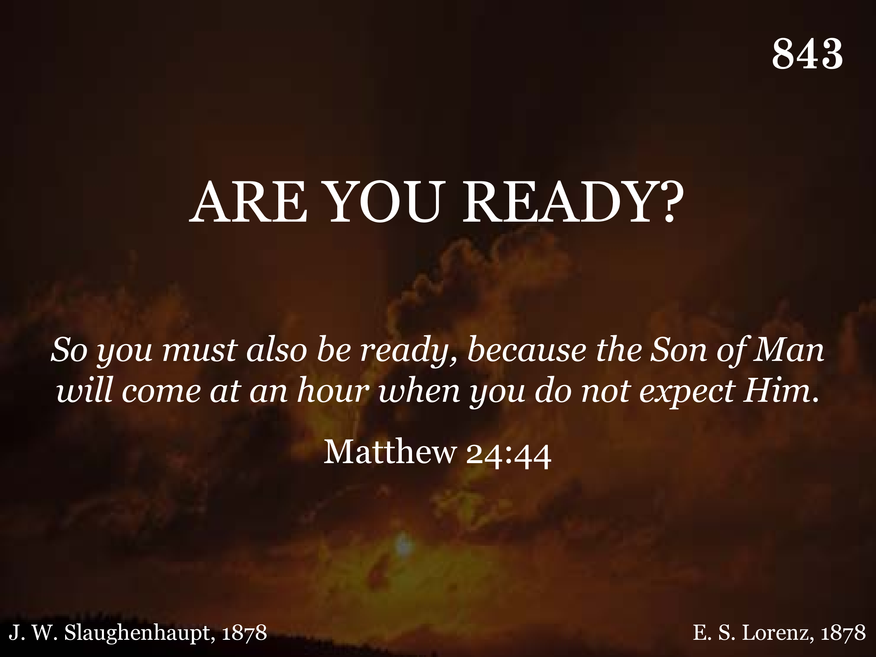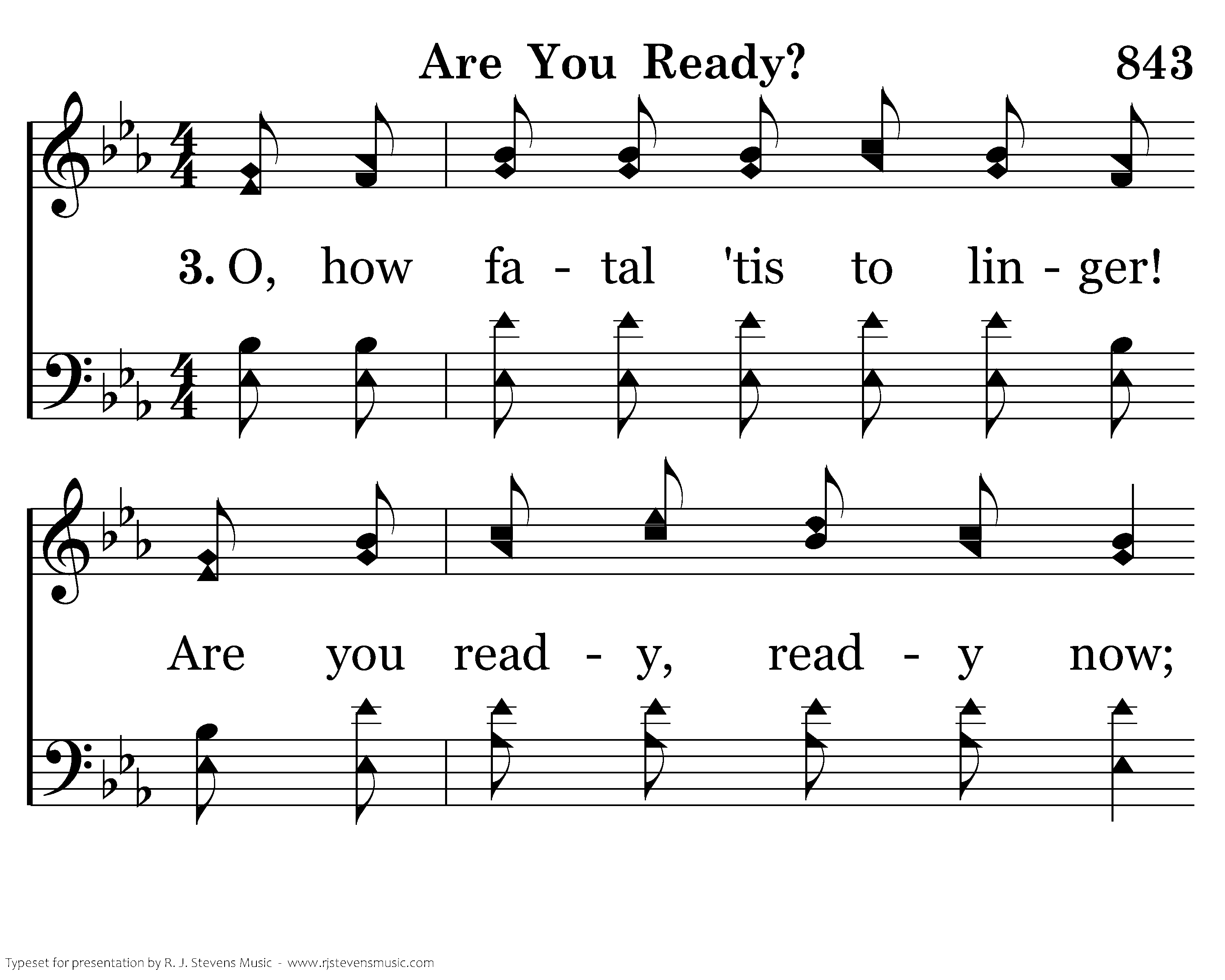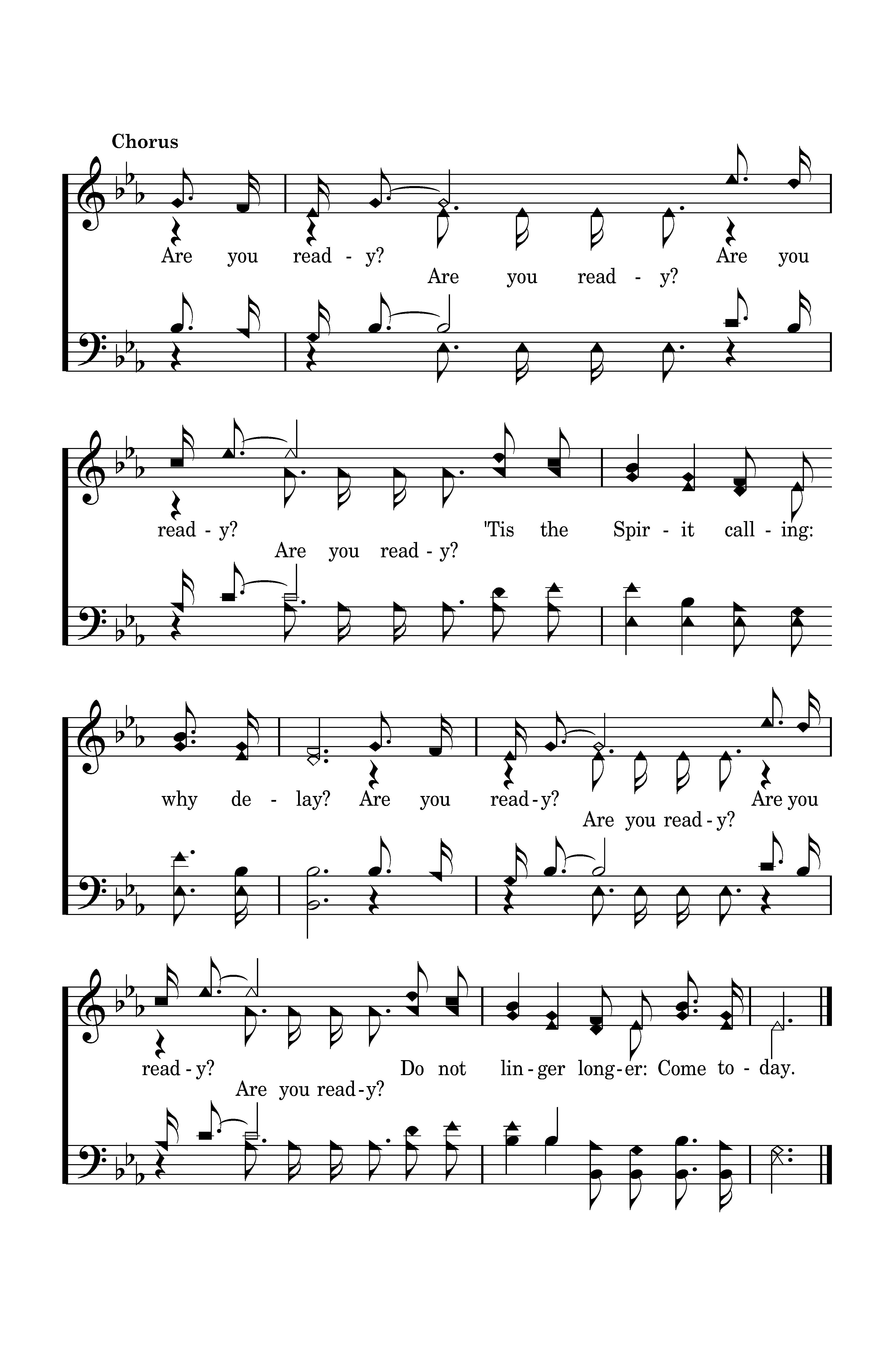 Are you ready? Are you ready? 'Tis the Spirit calling: why delay? Are you ready? Are you ready? Do not linger longer: Come today.