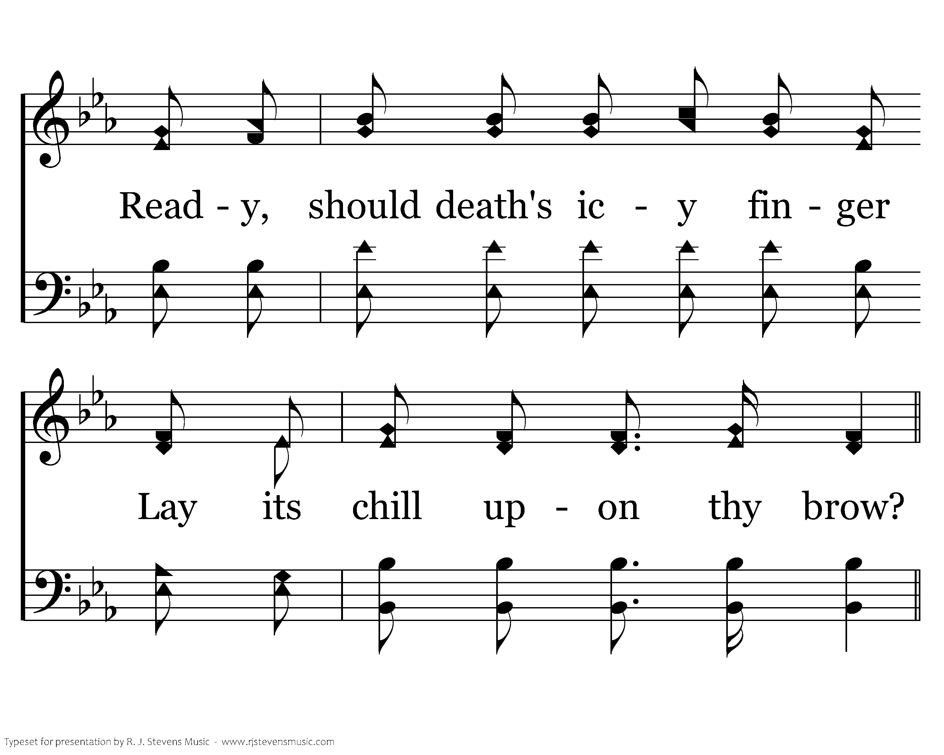 O, how fatal 'tis to linger! Are you ready, ready now; Ready, should death's icy finger Lay its chill upon thy brow?