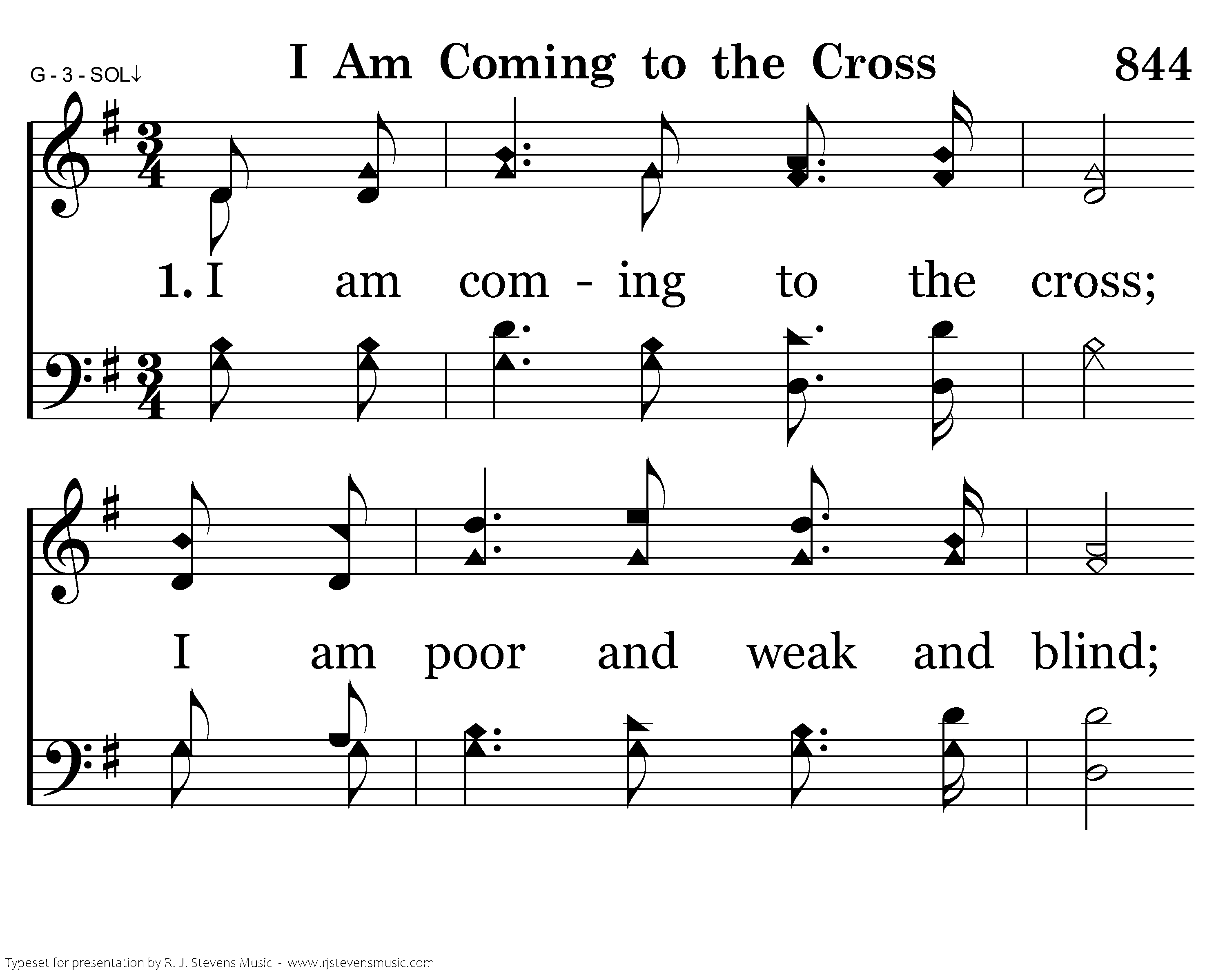 I am coming to the cross; I am poor and weak and blind; Tho' I count my soul but lost: I shall full salvation find.