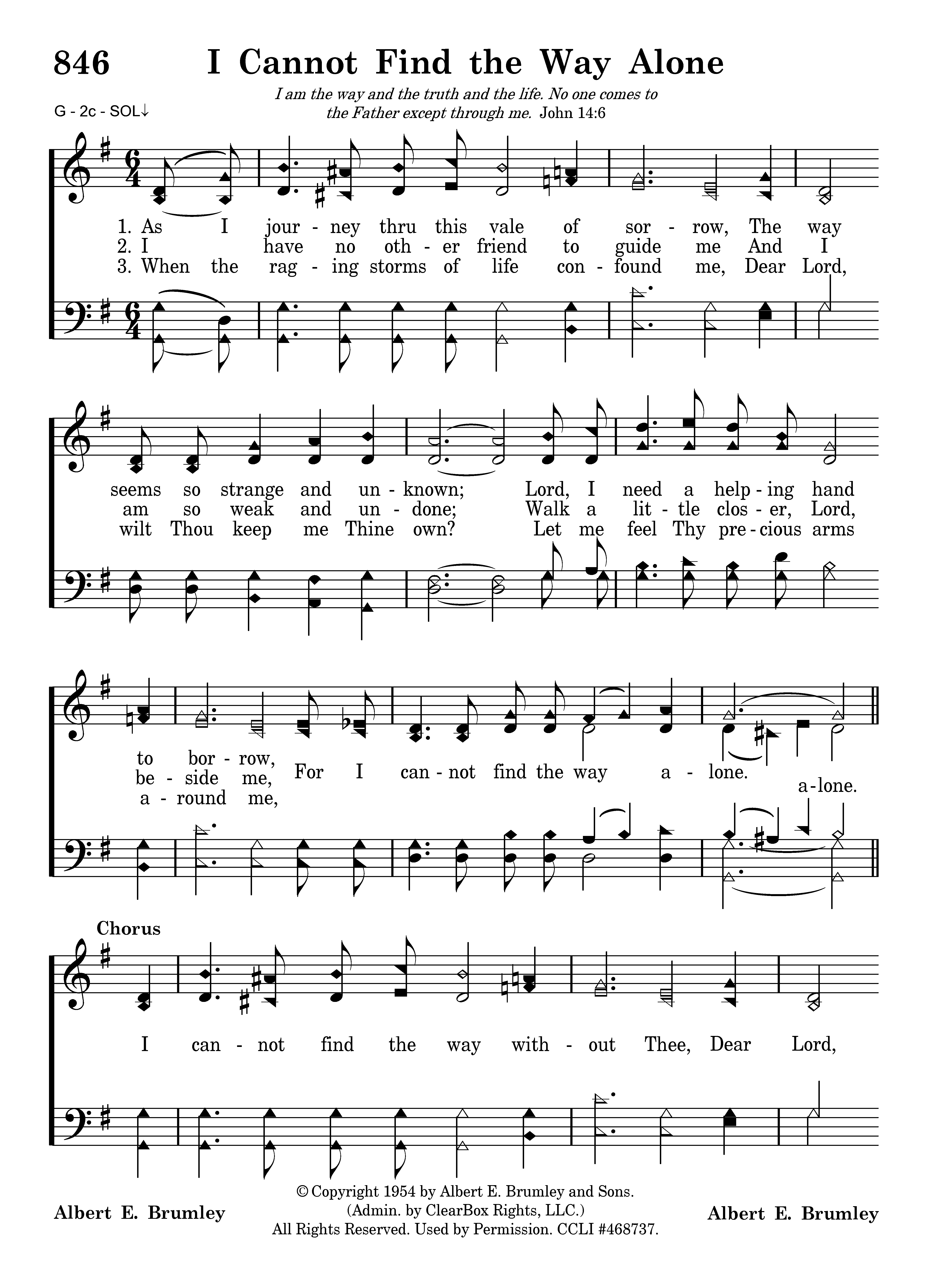 As I journey thru this vale of sorrow, The way seems so strange and unknown; Lord, I need a helping hand to borrow, For I cannot find the way alone.
