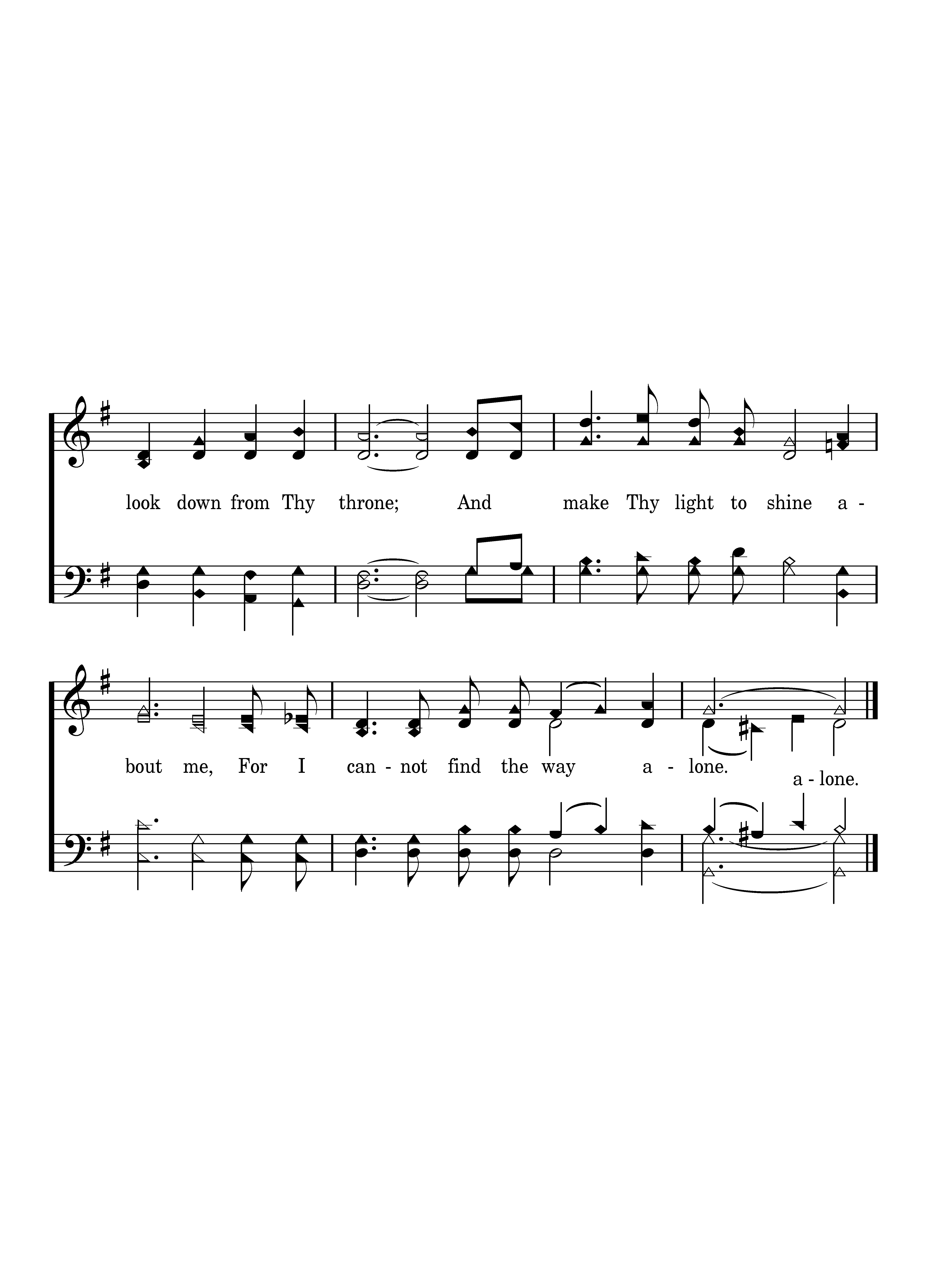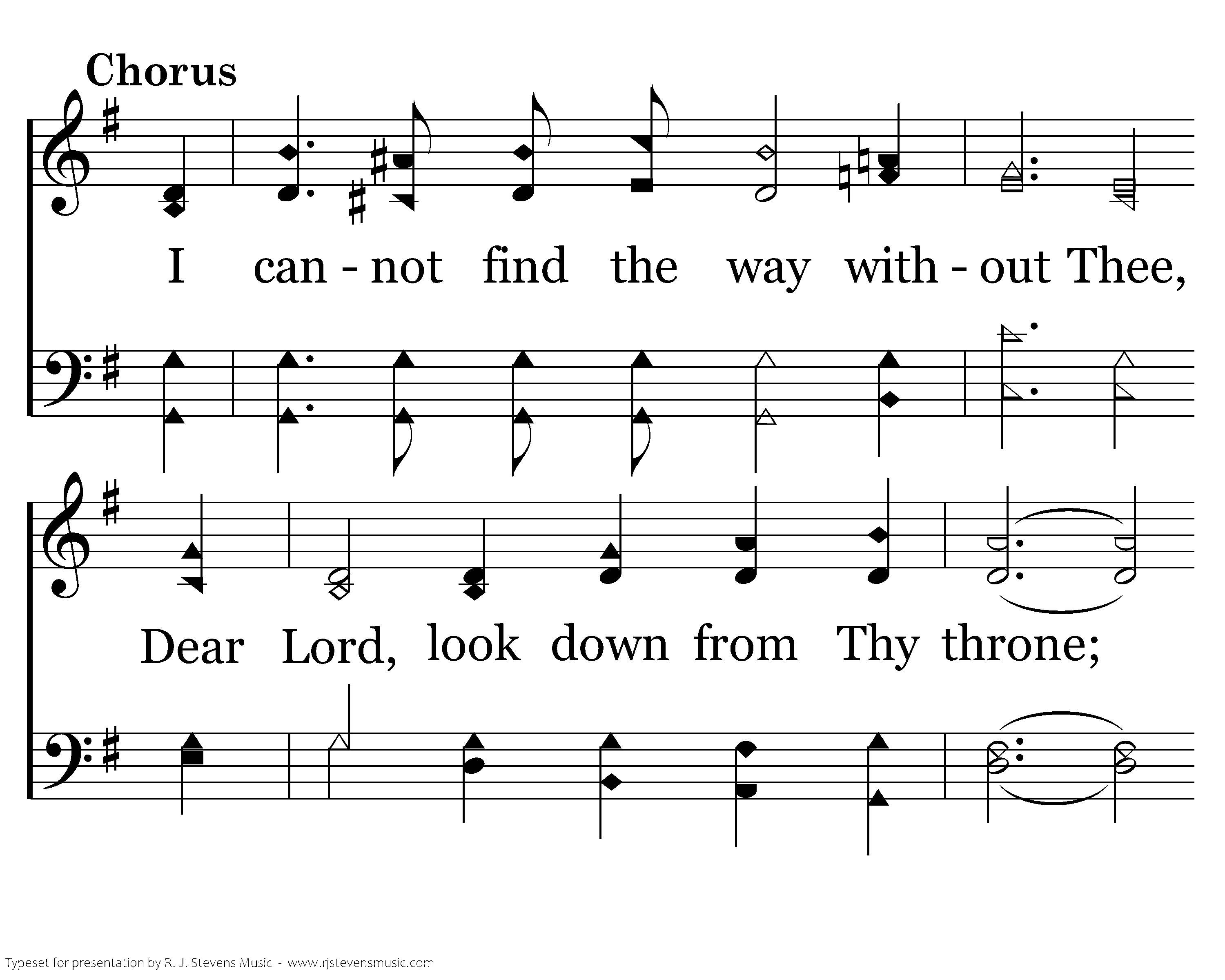 I cannot find the way without Thee, Dear Lord, look down from Thy throne; And make Thy light to shine about me, For I cannot find the way alone.