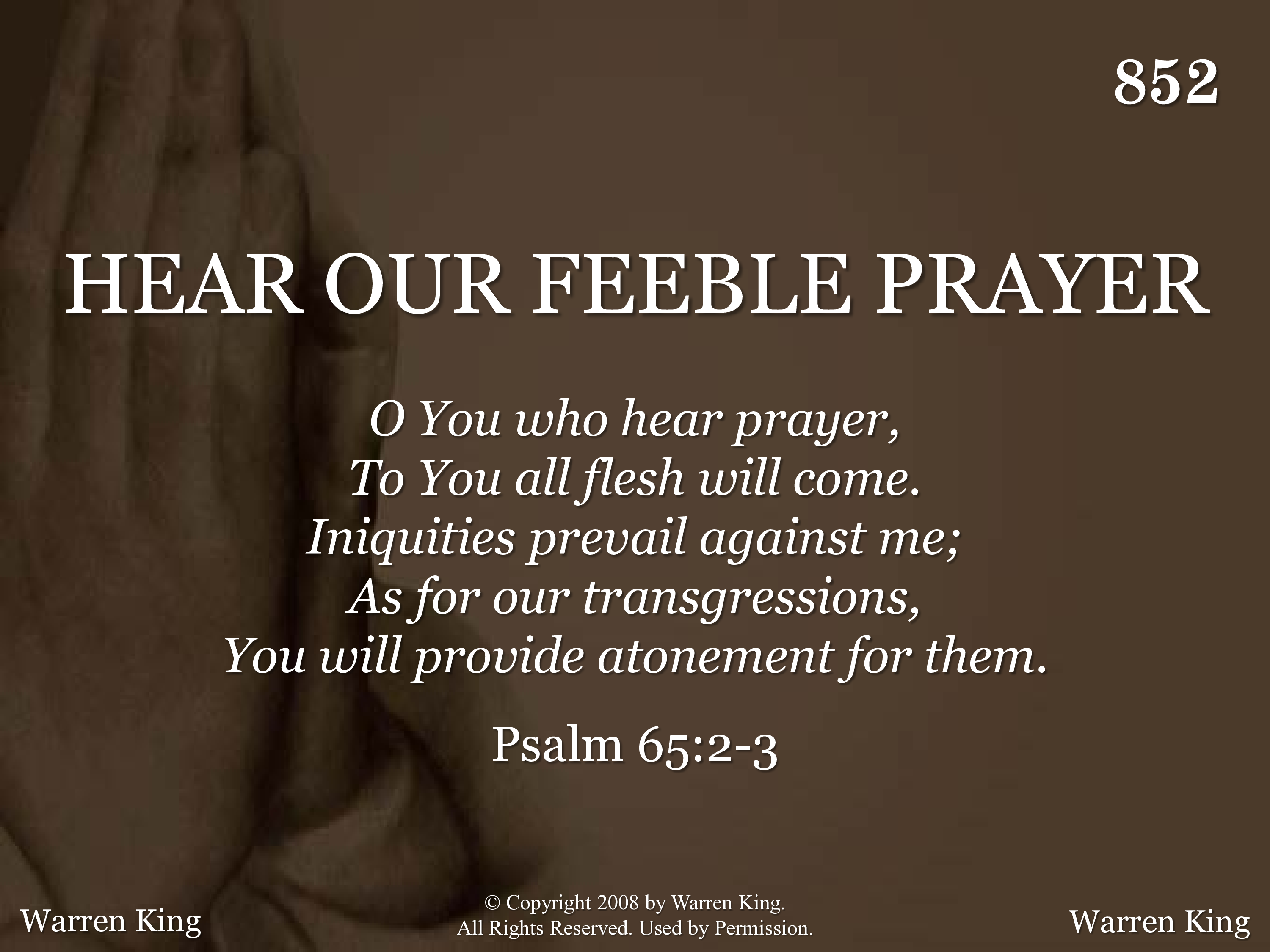 So, Father, hear our feeble prayer, Offered to You from hearts laid bare. Forgive us of our foolish ways, Hold us in the warmth of Your embrace.