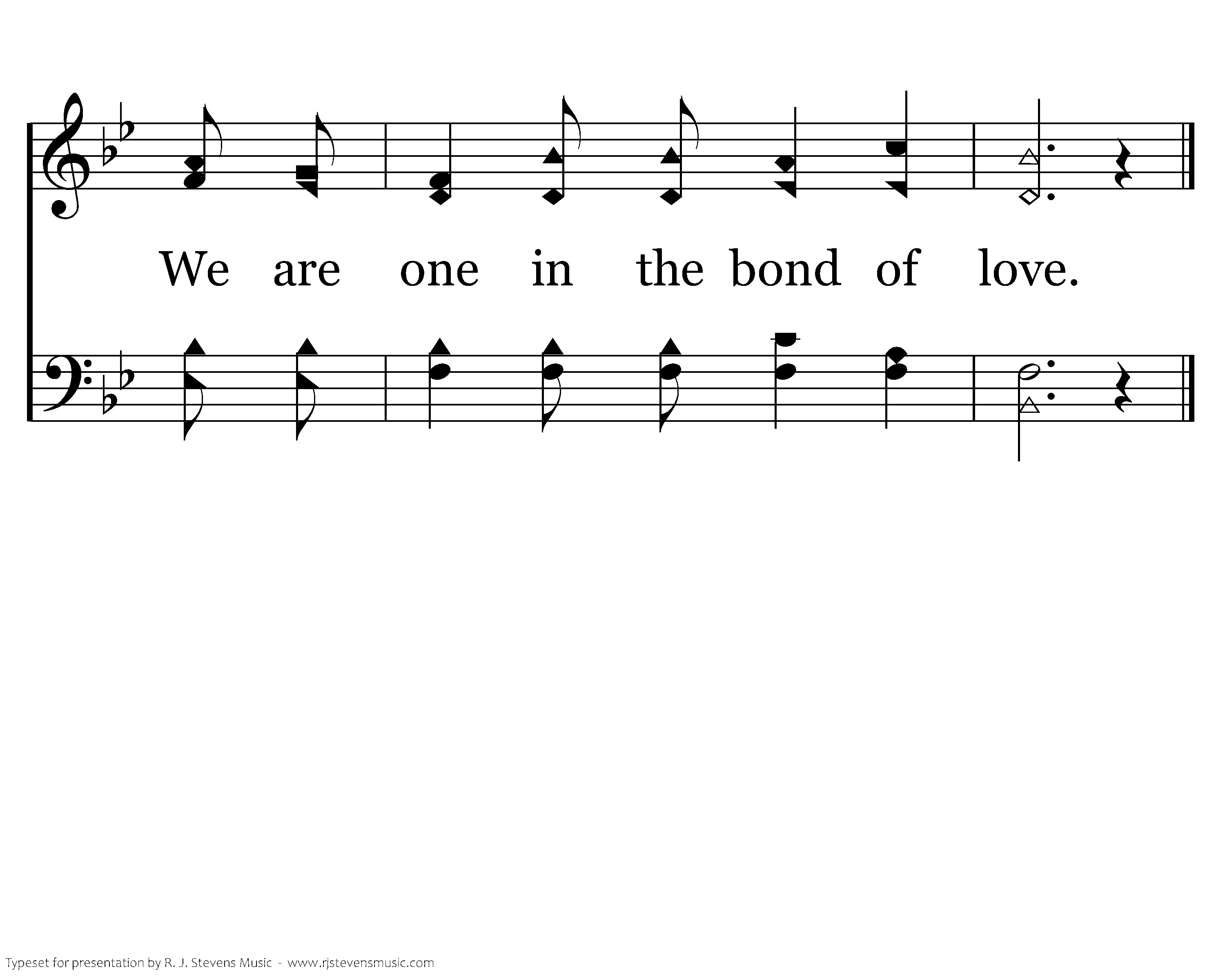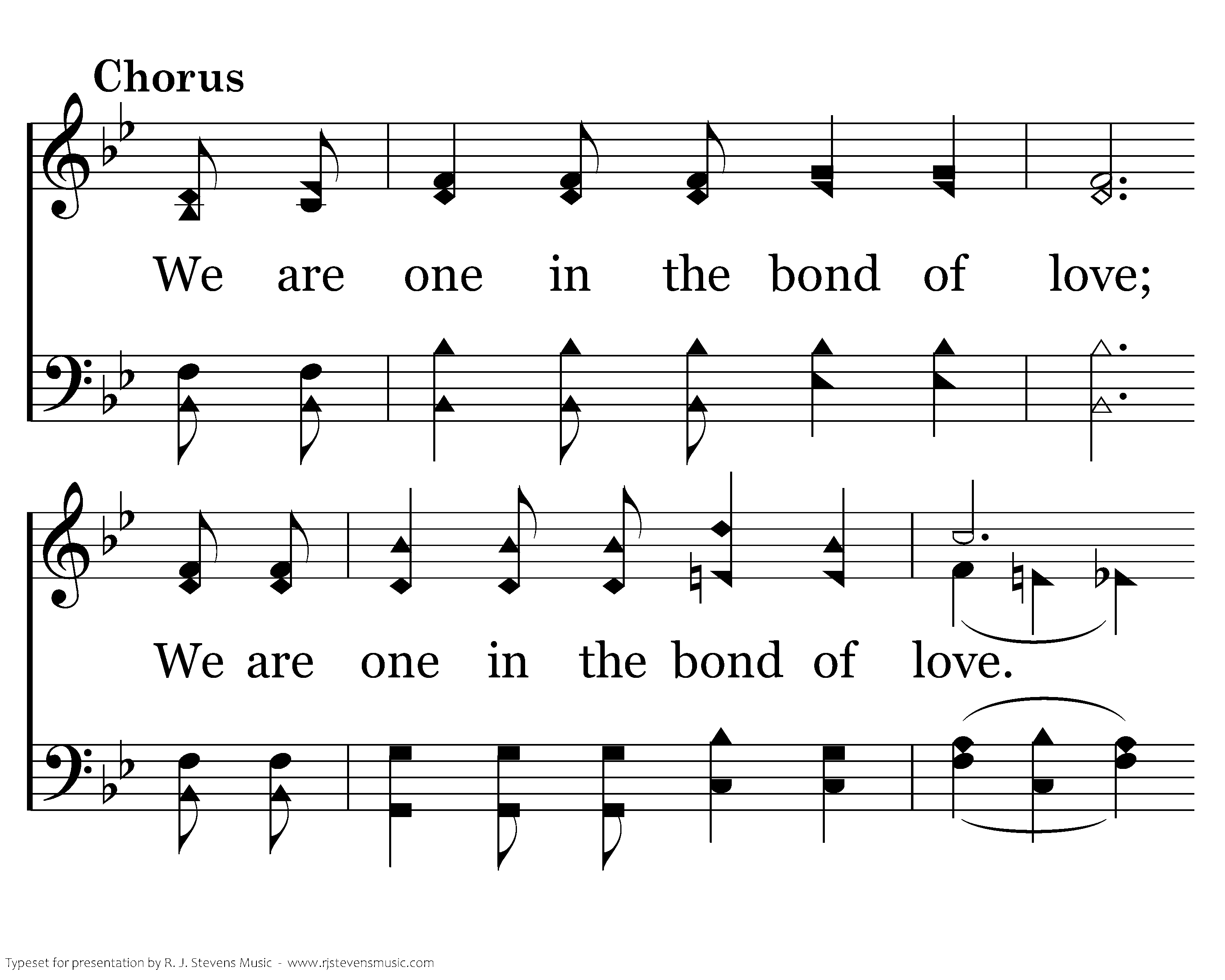 We are one in the bond of love; We are one in the bond of love. We have joined our spirits with the Spirit of God; We are one in the bond of love.