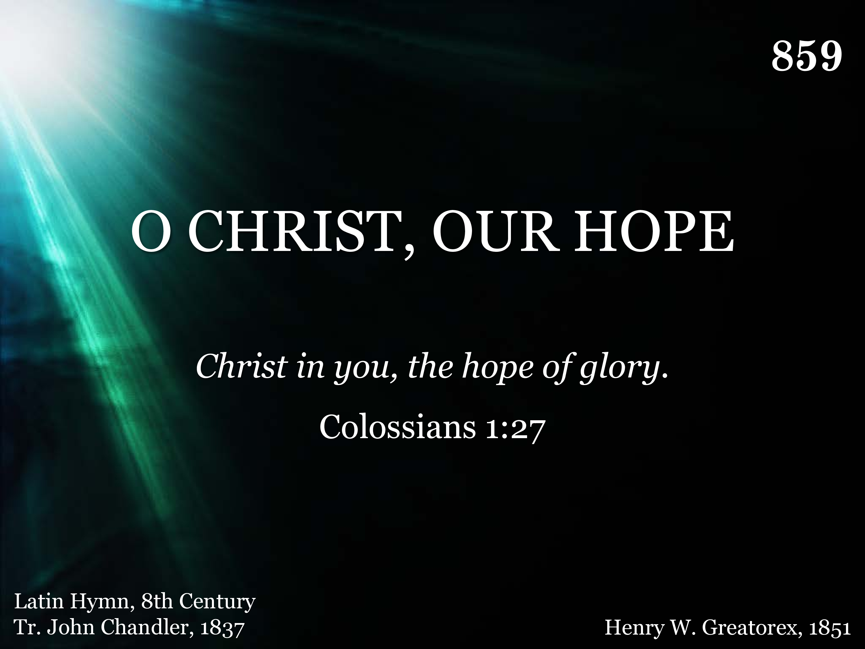 O Christ, our hope, our heart's desire, Redemption's only spring, Creator of the world art Thou, Its Savior and its King.