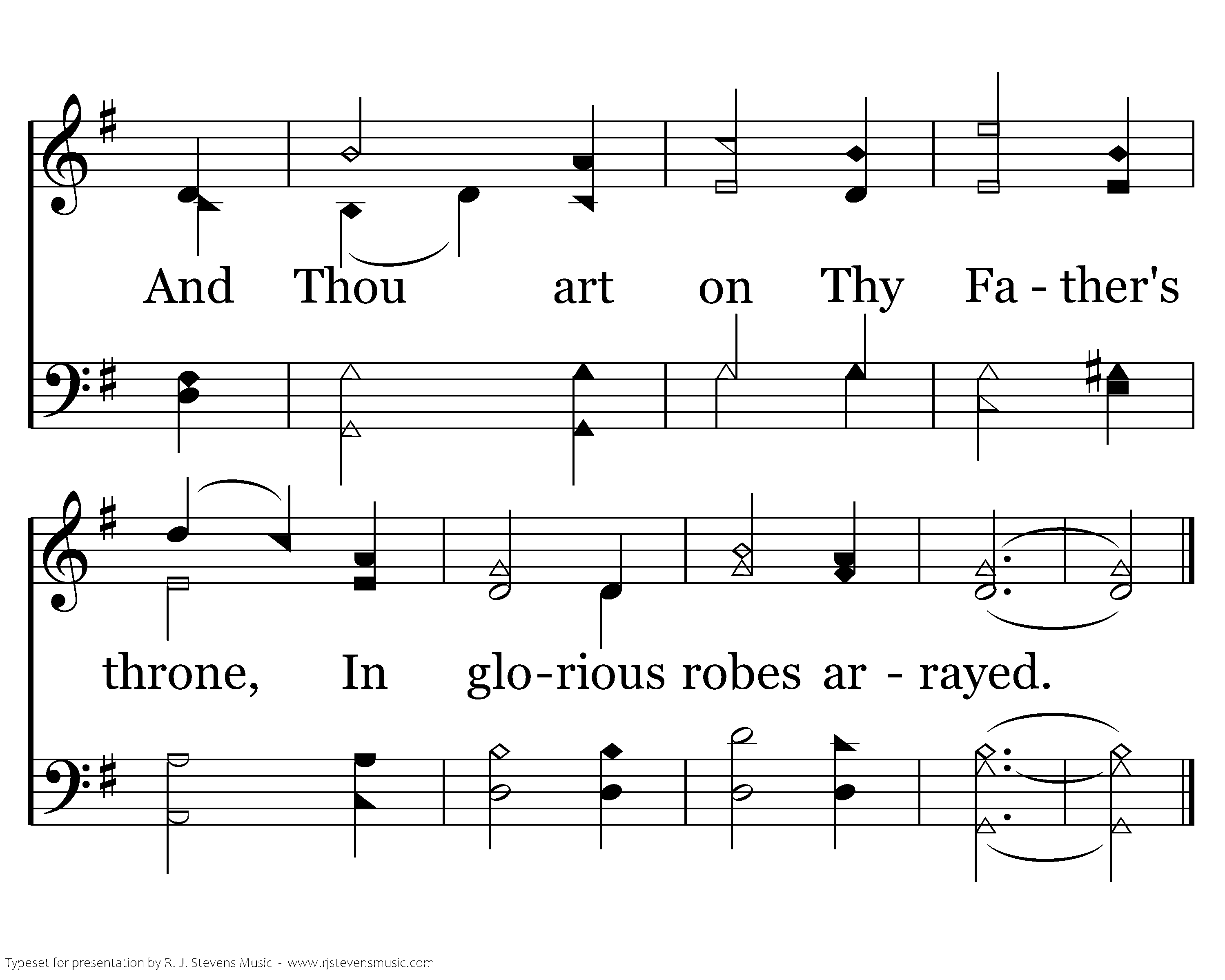 But now the bonds of death are burst, The ransom has been paid; And Thou art on Thy Father's throne, In glorious robes arrayed.