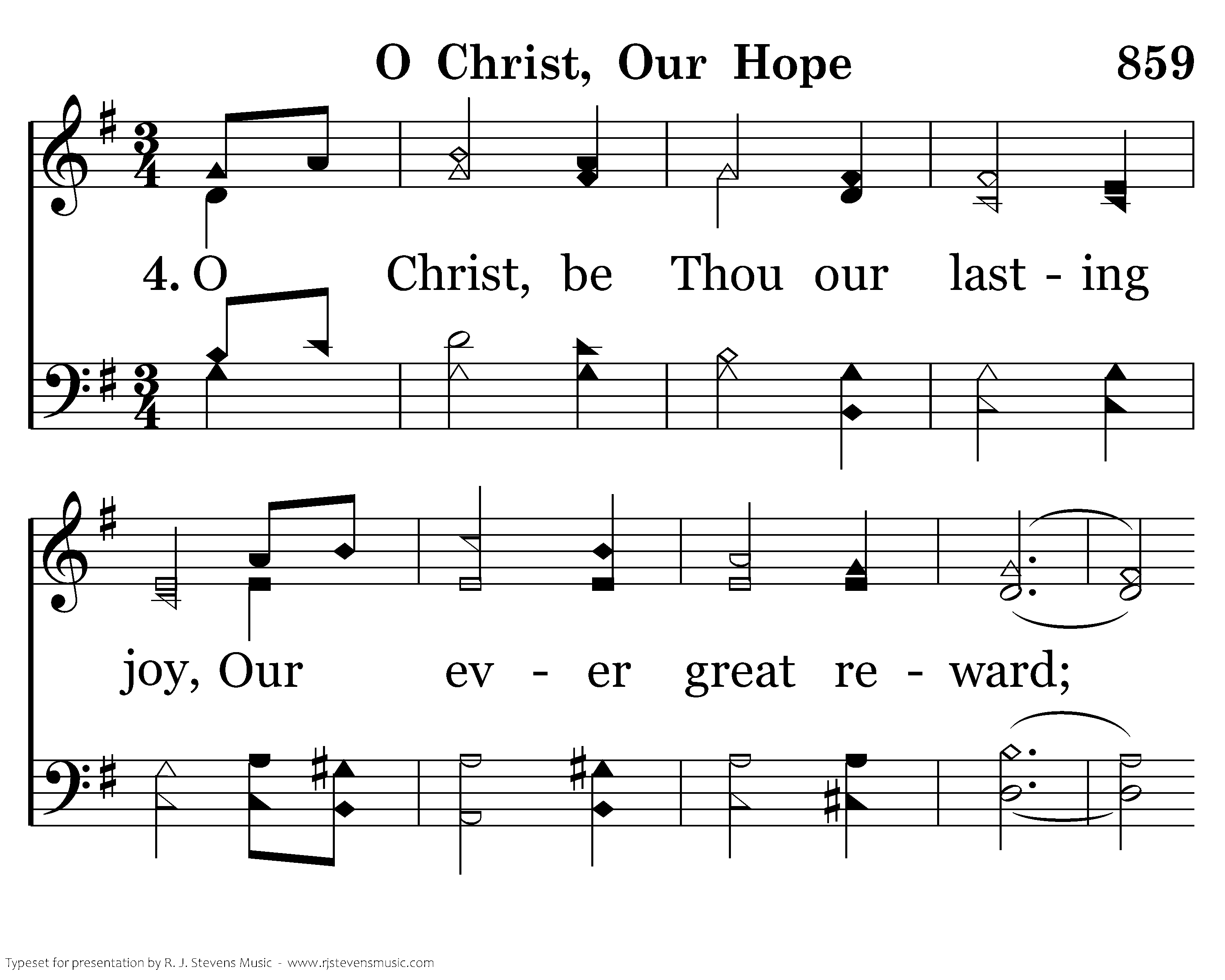 O Christ, be Thou our lasting joy, Our ever great reward; Our only glory may it be To glory in the Lord!