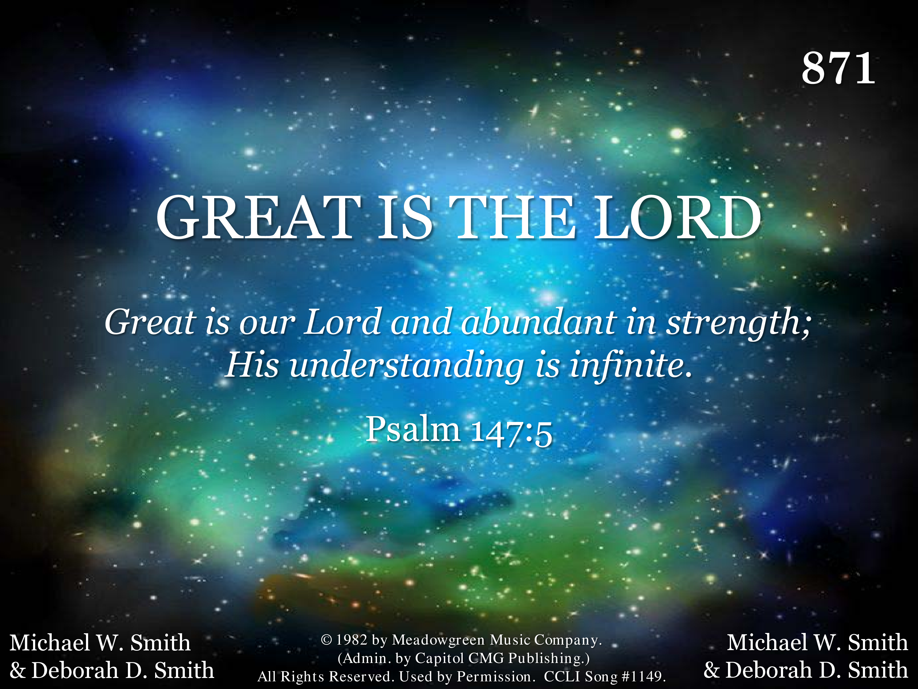 - Copyright © 1982 Meadowgreen Music Company. (Admin. by Capitol CMG Publishing.) All Rights Reserved. Used by Permission.