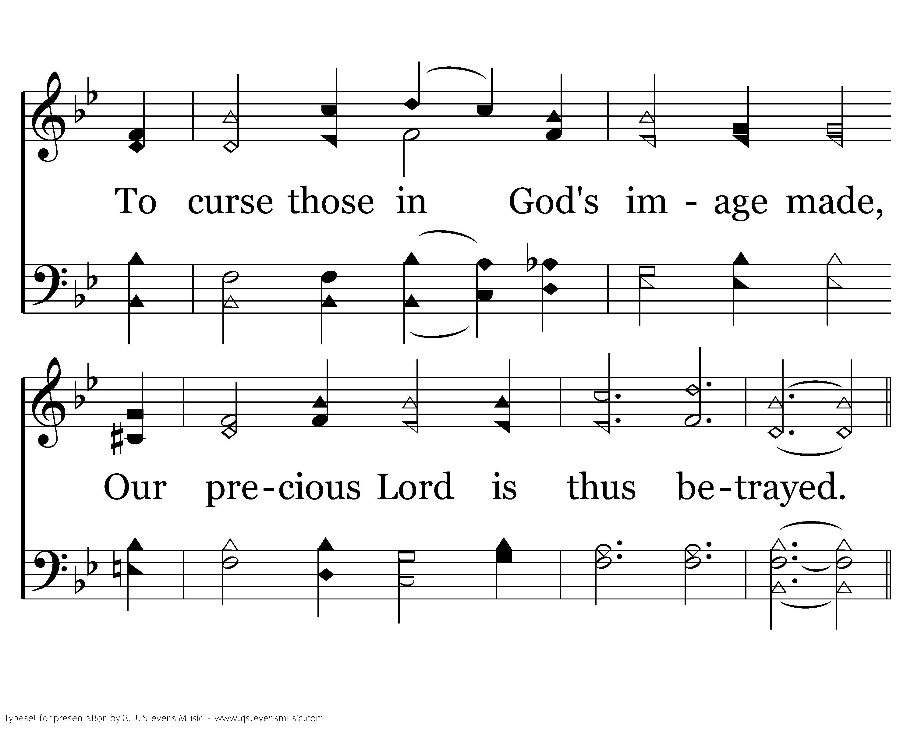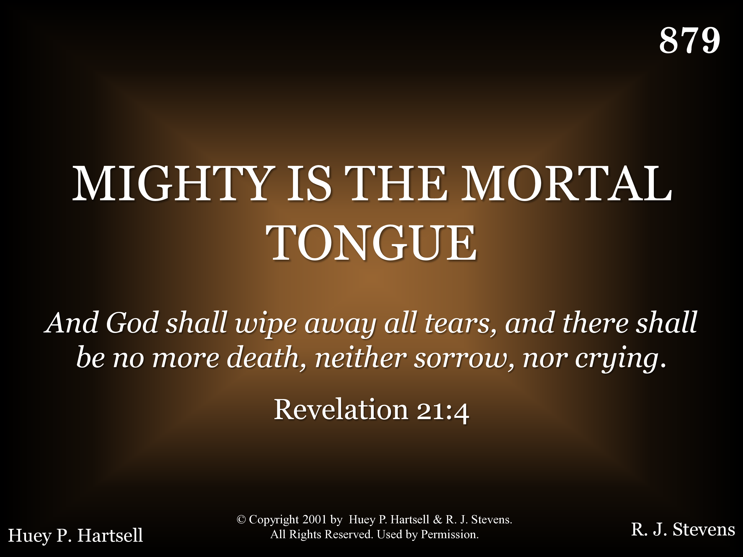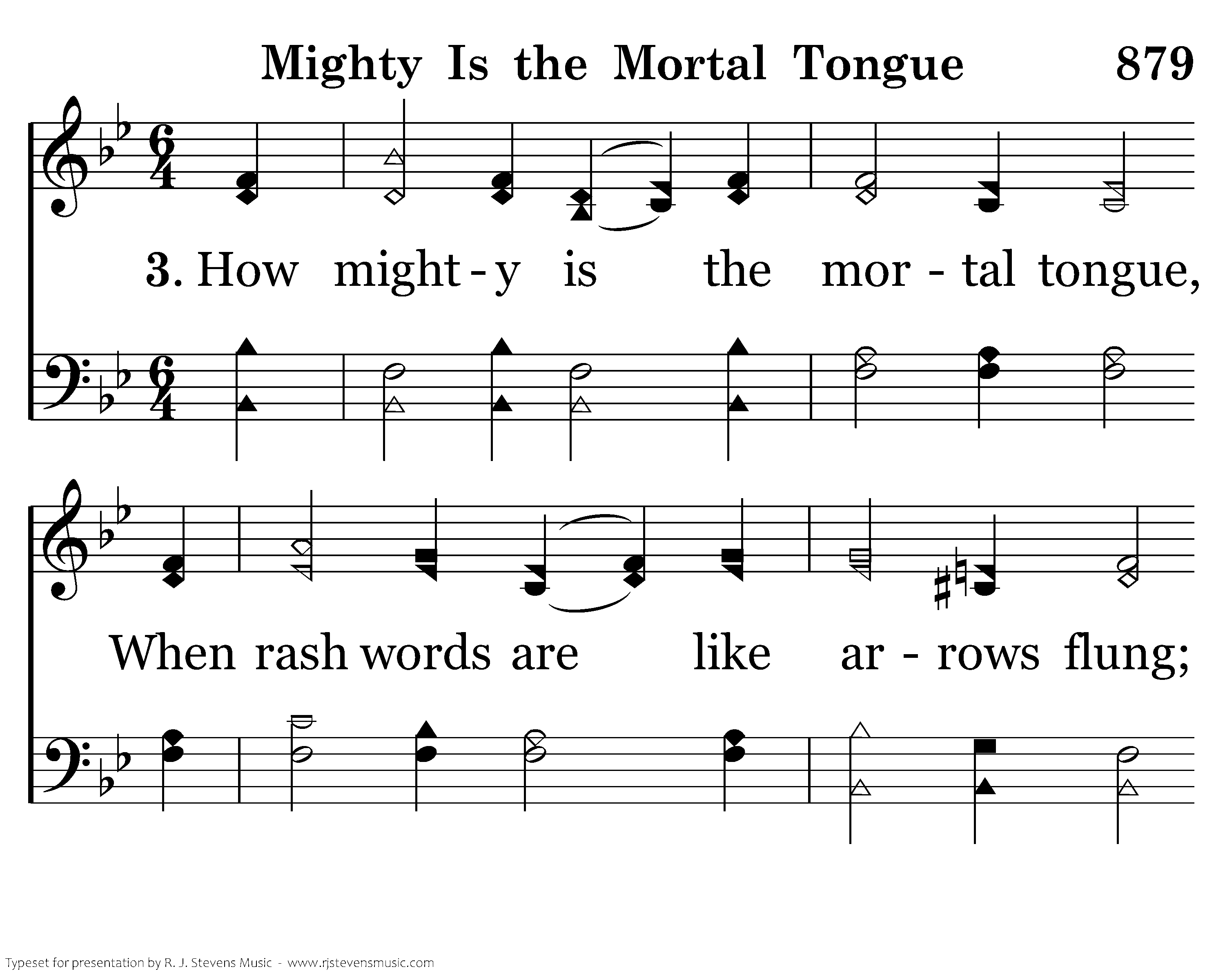 How mighty is the mortal tongue, When rash words are like arrows flung; To curse those in God's image made, Our precious Lord is thus betrayed.