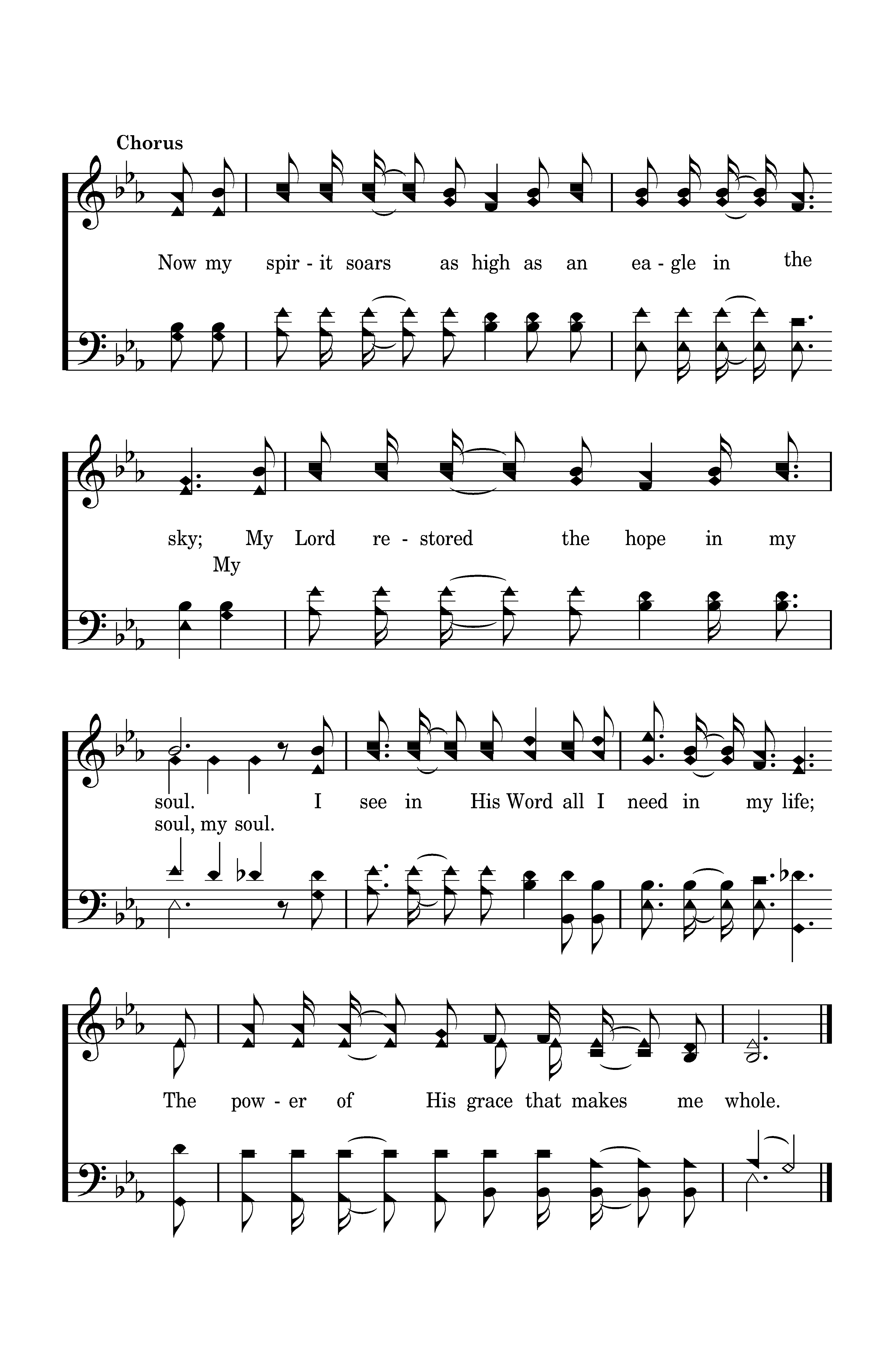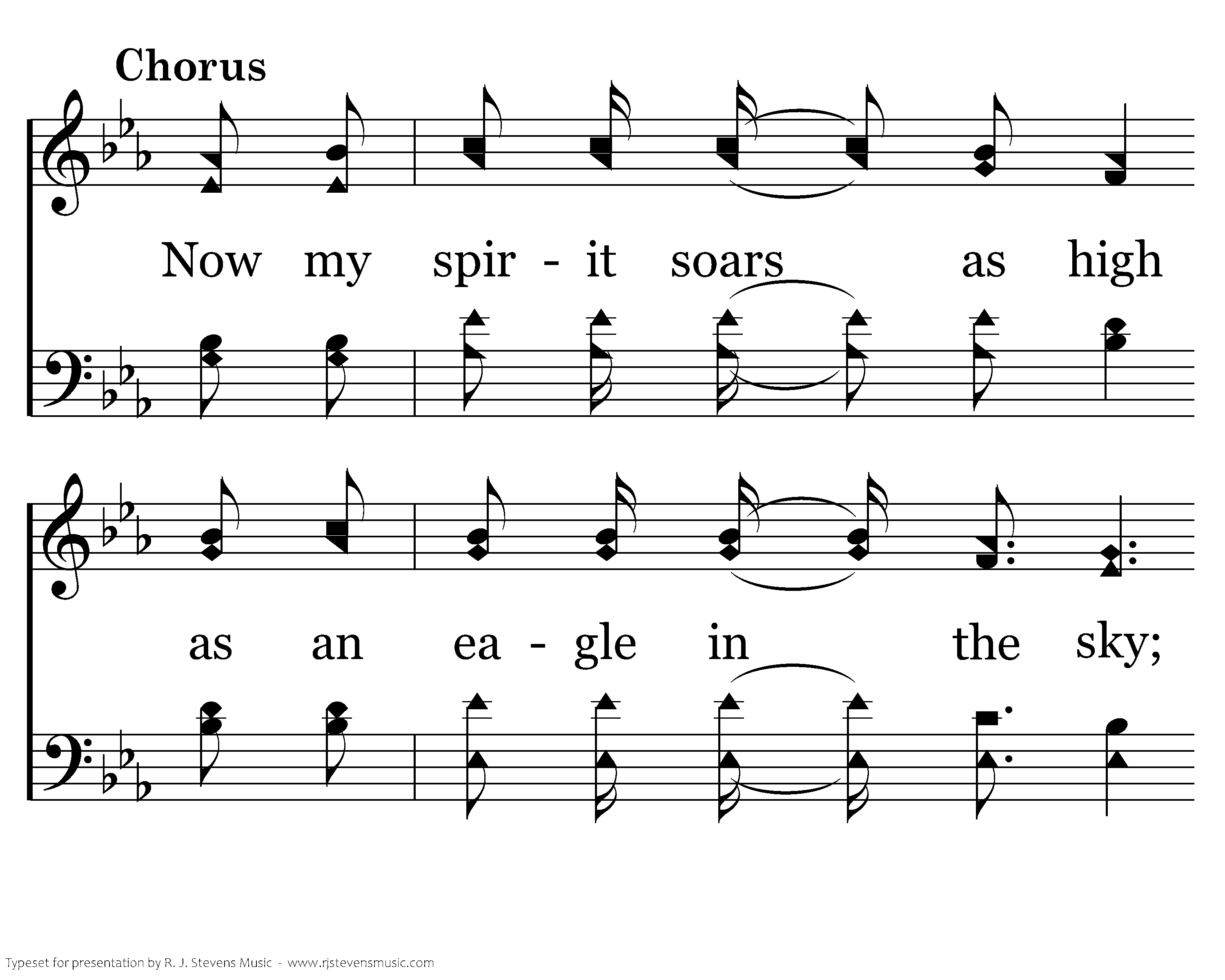 Now my spirit soars as high as an eagle in the sky; My Lord restored the hope in my soul. I see in His Word all I need in my life; The power of His grace that makes me whole.