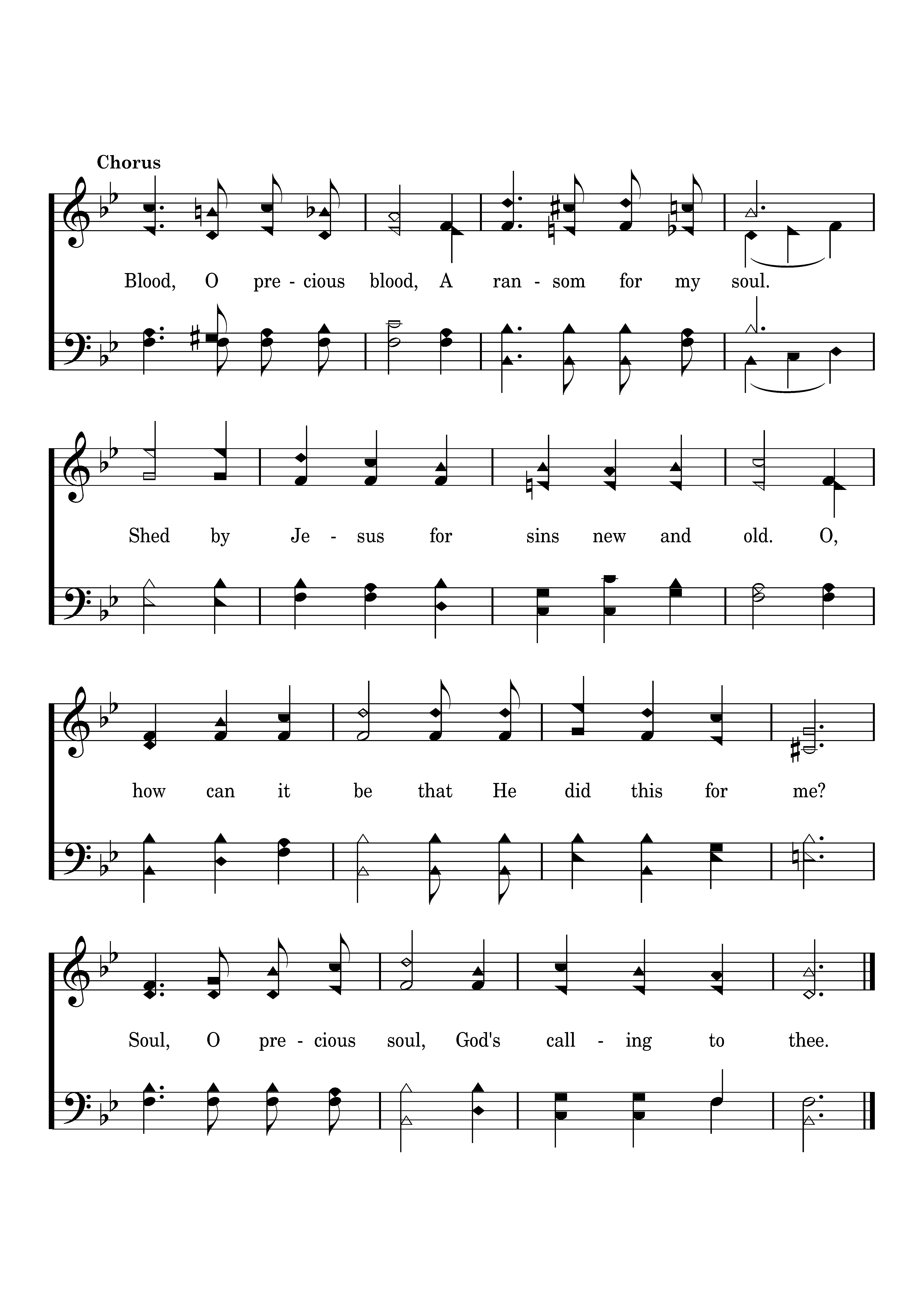 Blood, O precious blood, A ransom for my soul. Shed by Jesus for sins new and old. O, how can it be that He did this for me? Soul, O precious soul, God's calling to thee.