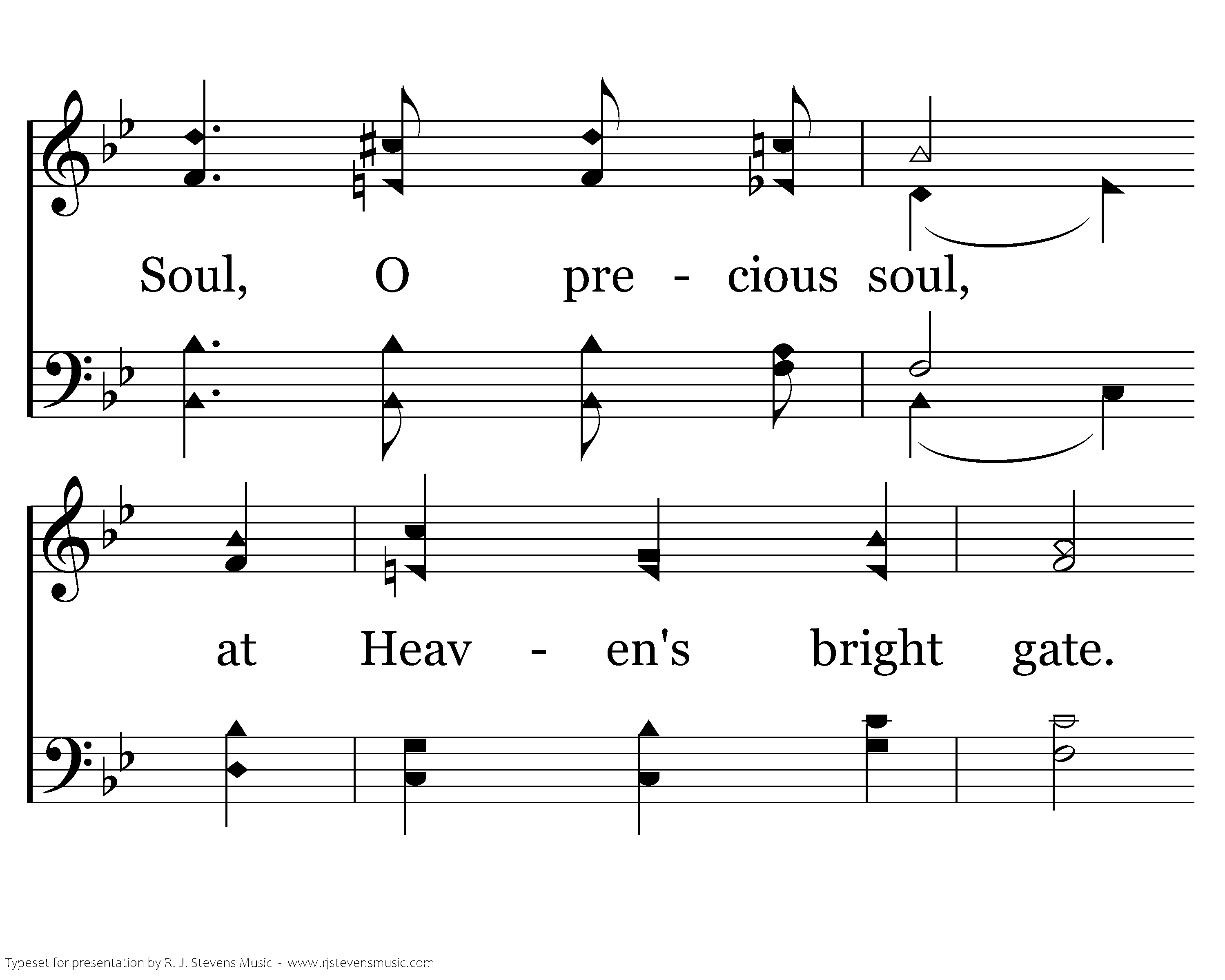 Soul, O precious soul, a home there awaits; Soul, O precious soul, at Heaven's bright gate. Adrift and alone my spirit has strayed. Soul, O precious soul, God's pointing the way.