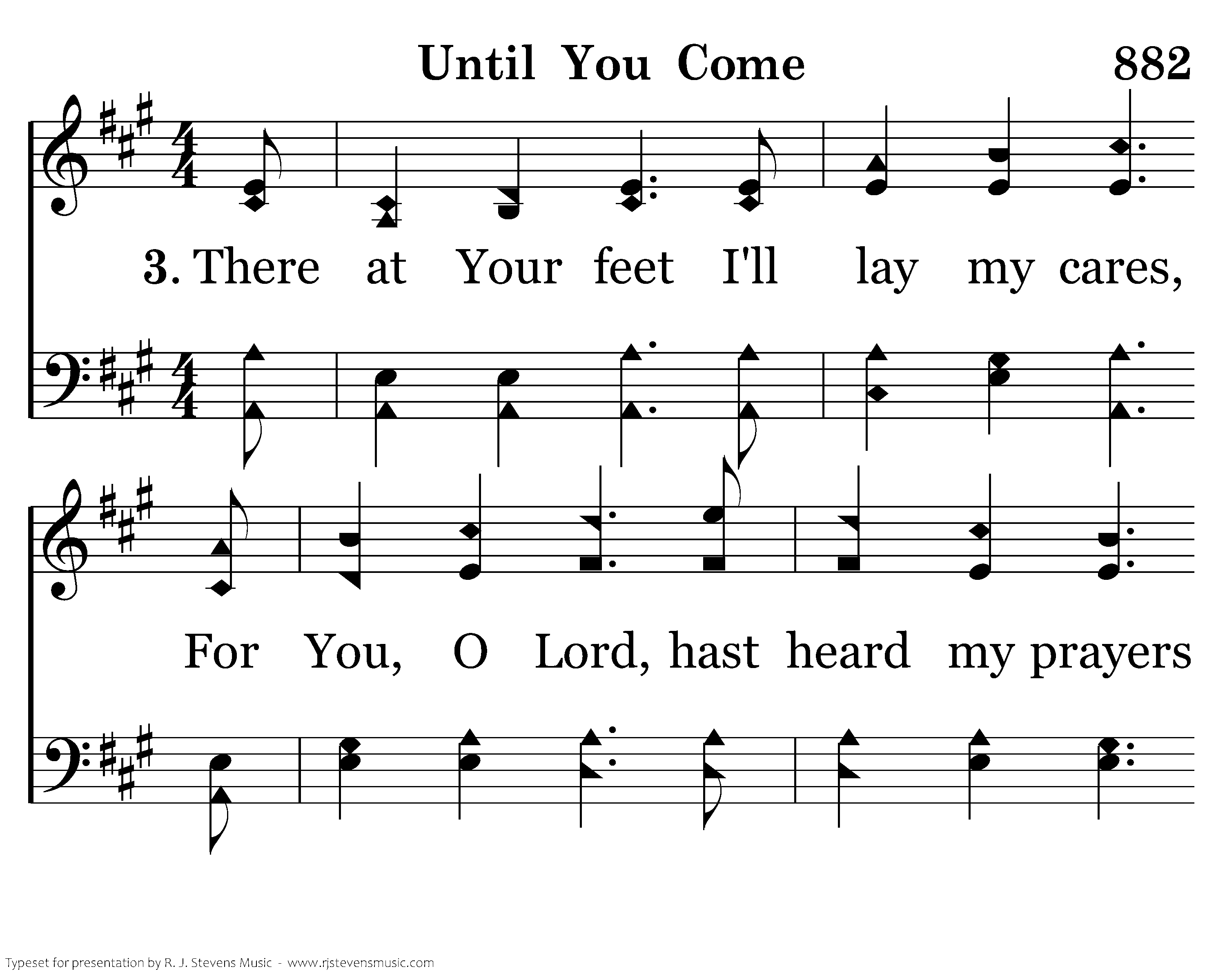 There at Your feet I'll lay my cares, For You, O Lord, hast heard my prayers and conquered ev'ry foe that dares My sorrows to renew. And fin'ly, Lord, they'll lay me down, Where loved ones gone before are found, To wait until the trumpet sounds Thy coming in the blue.