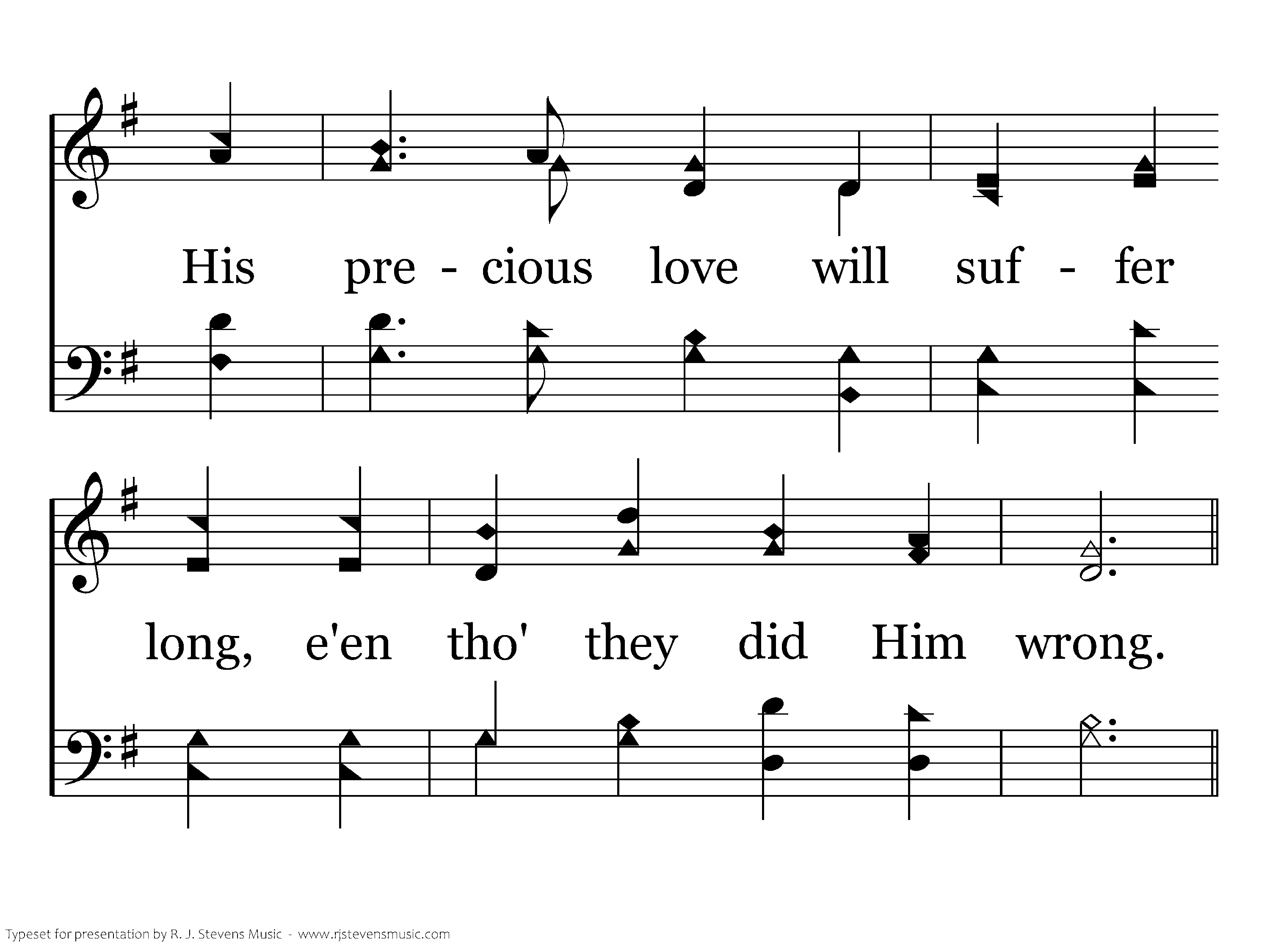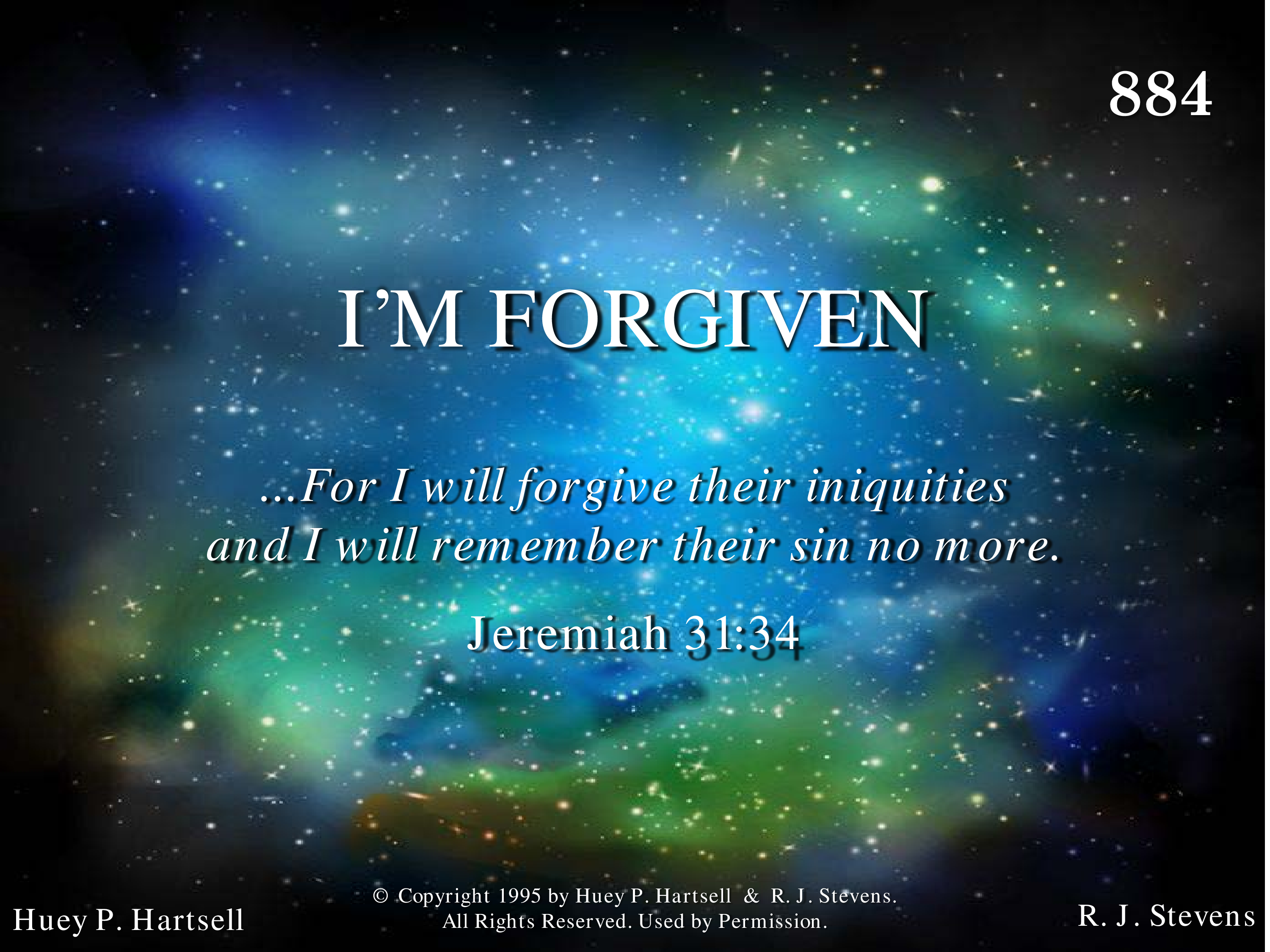 Tho' prodigals reproach His name, the Father waits the same. His precious love will suffer long, e'en tho' they did Him wrong. I'm forgiven! His blood cleanses me, blood cleanses me, and if faithful, heav'n I'll see. I'm forgiven! God said before, "I'll remember sin no more."