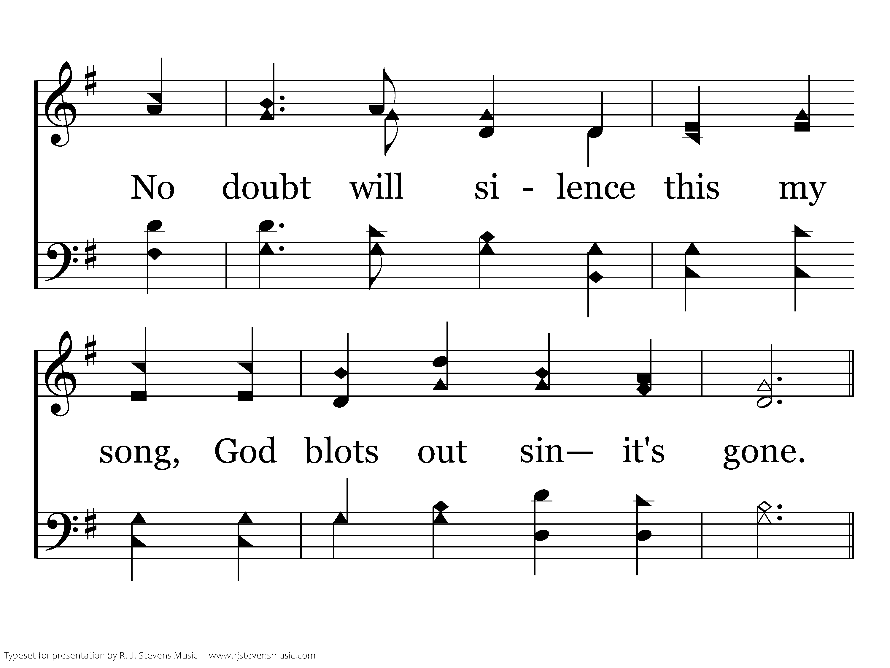Christ prayed "forgive them" from His cross, for sins He paid the cost. No doubt will silence this my song, God blots out sin it's gone.