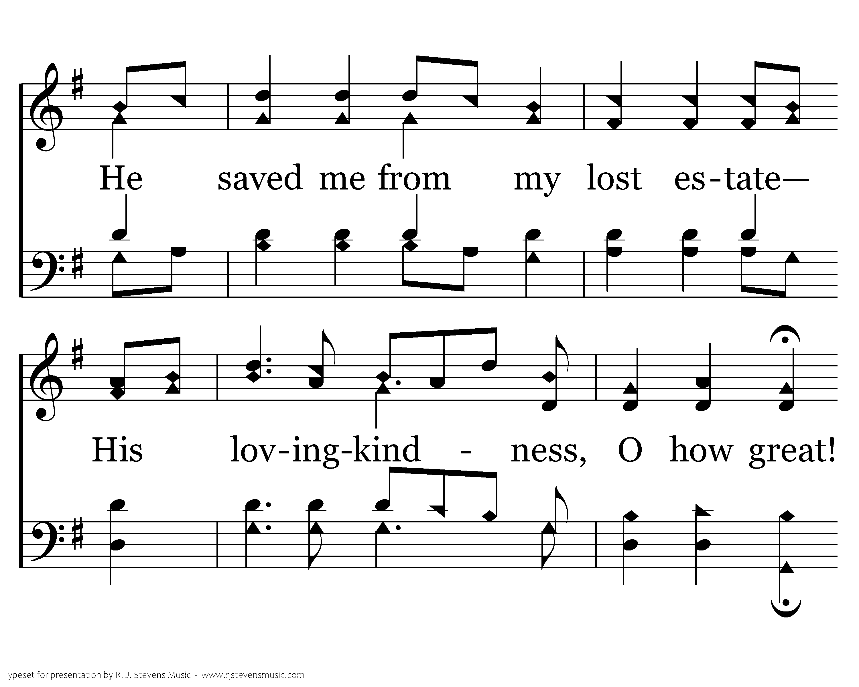 He saw me ruined in the fall, Yet loved me, notwithstanding all; He saved me from my lost estate His lovingkindness, O how great! Lovingkindness, lovingkindness, His lovingkindness, O how great!