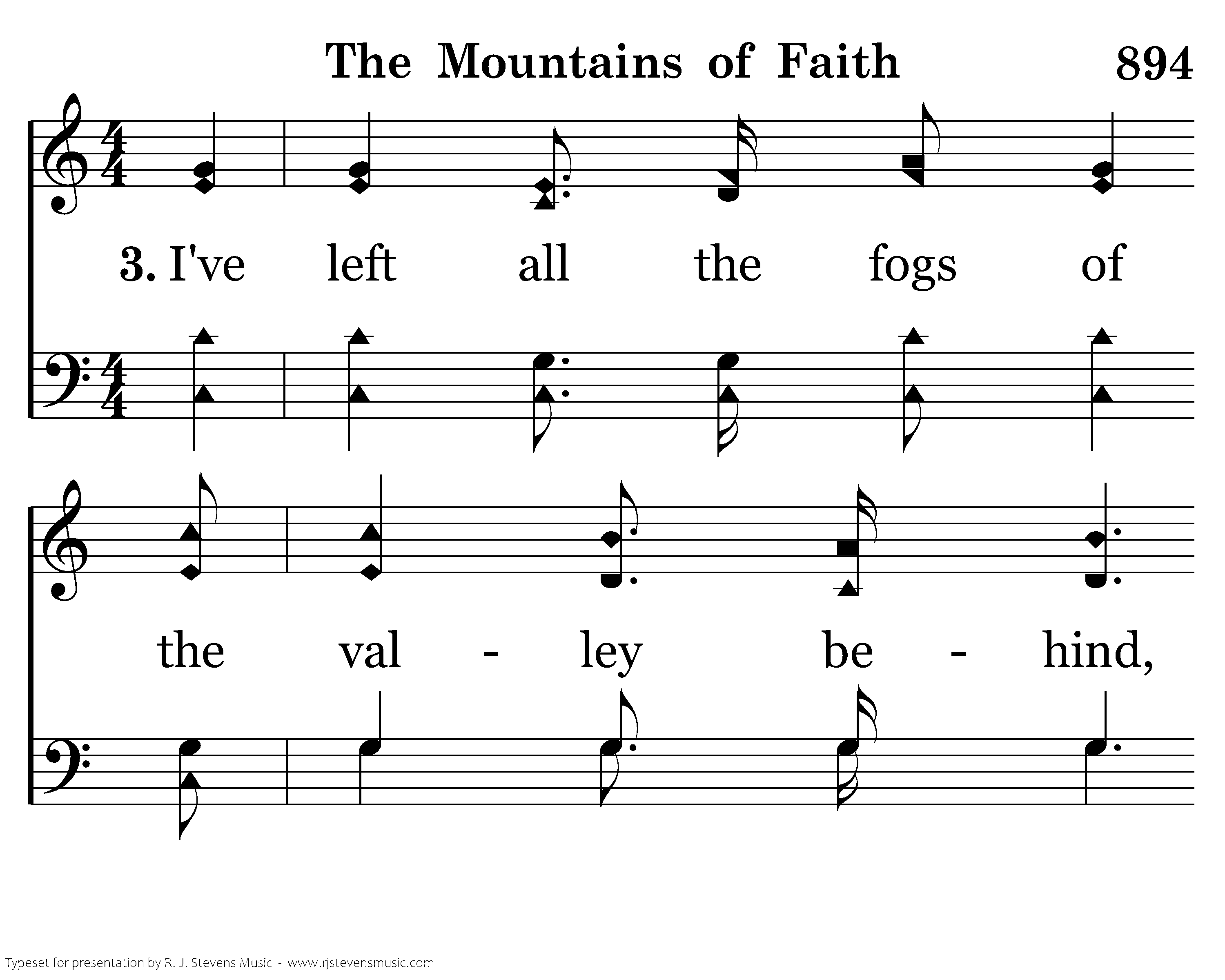 I've left all the fogs of the valley behind, And here the bright sunlight forever I find; The clouds are beneath me, above is my home, And Christ, my dear Savior, invites me to come.