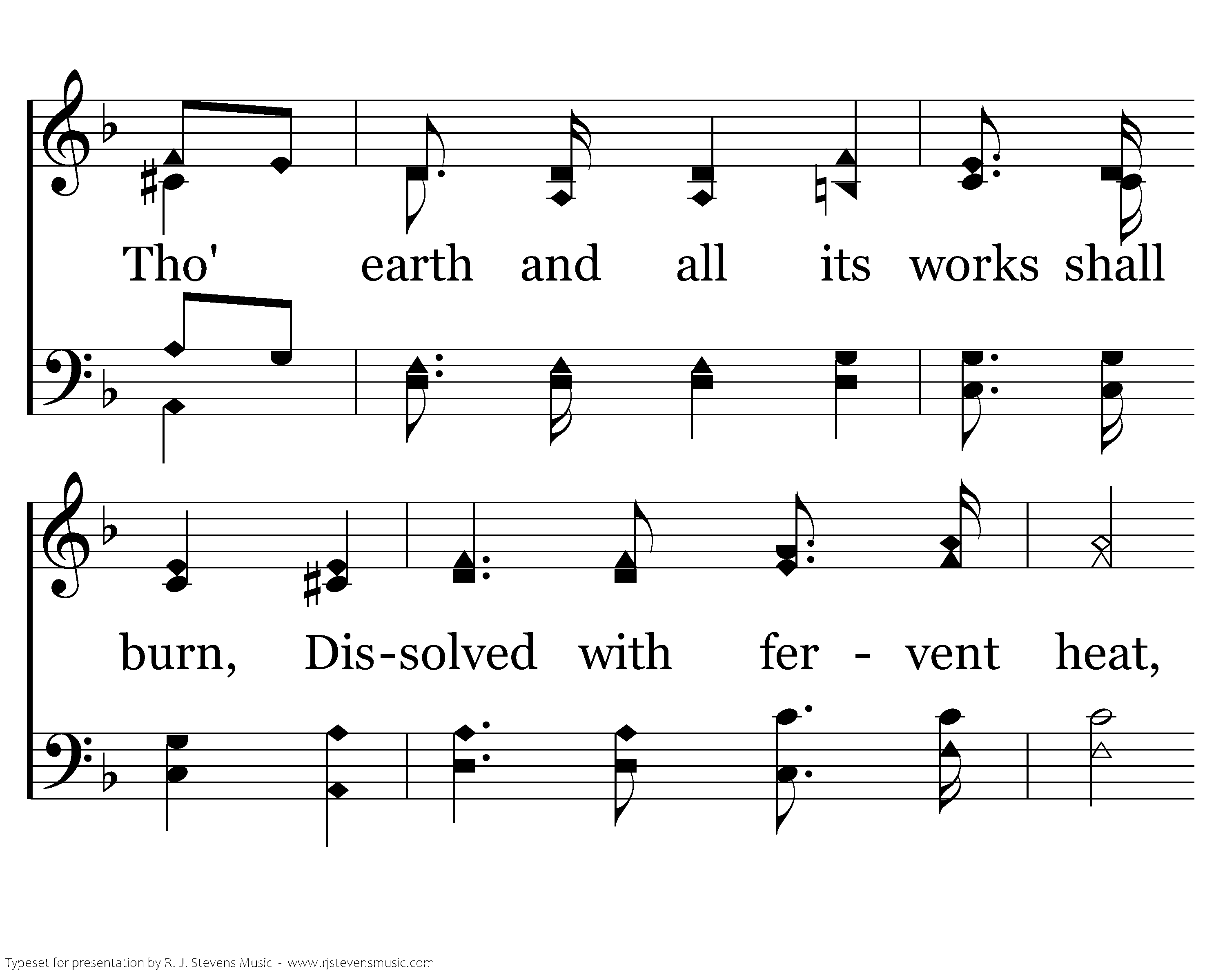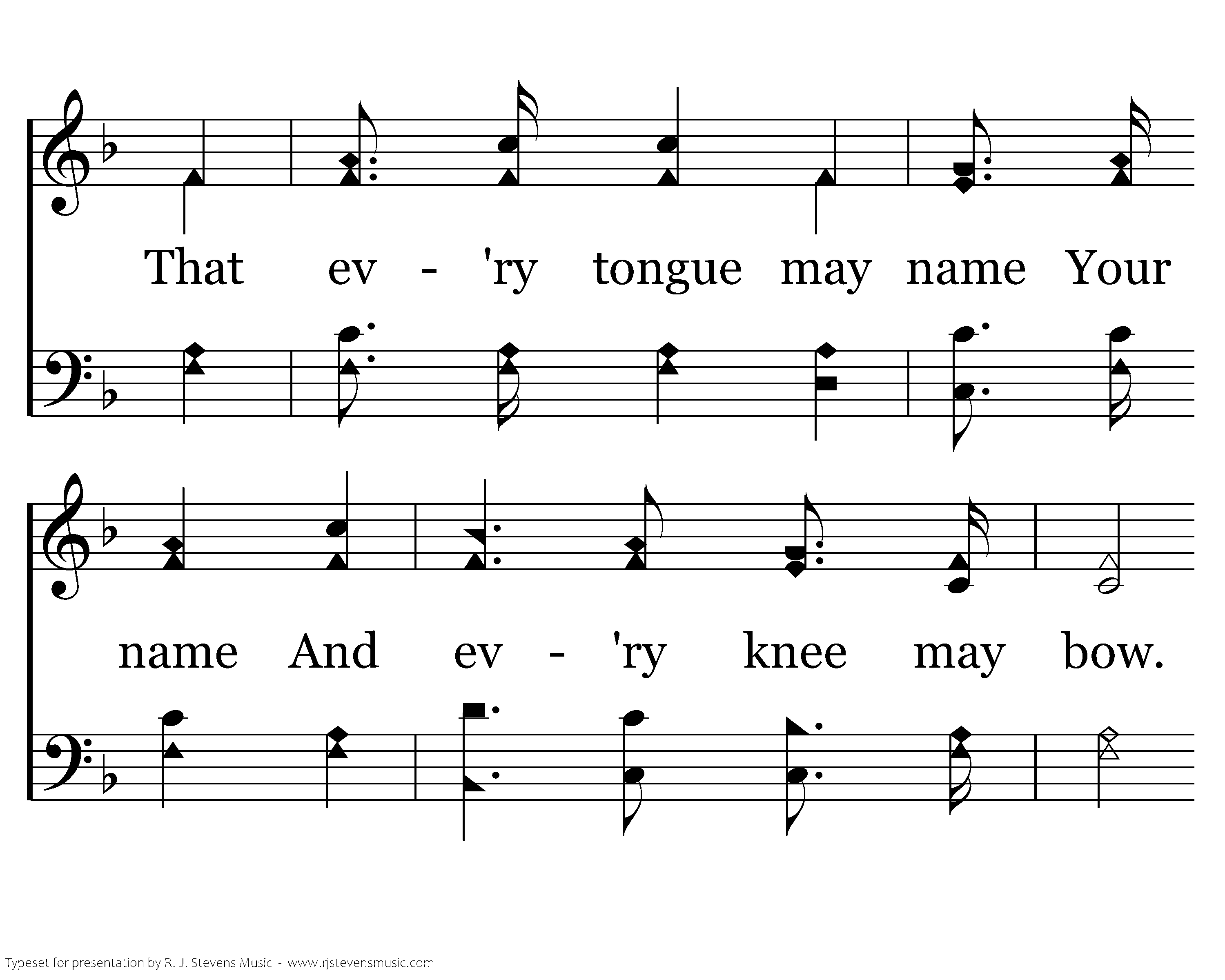 "O Maranatha!" we exclaim; We long to see it now, That ev'ry tongue may name Your name And ev'ry knee may bow. Tho' earth and all its works shall burn, Dissolved with fervent heat, Yet haste the day of Your return, And make Your reign complete!