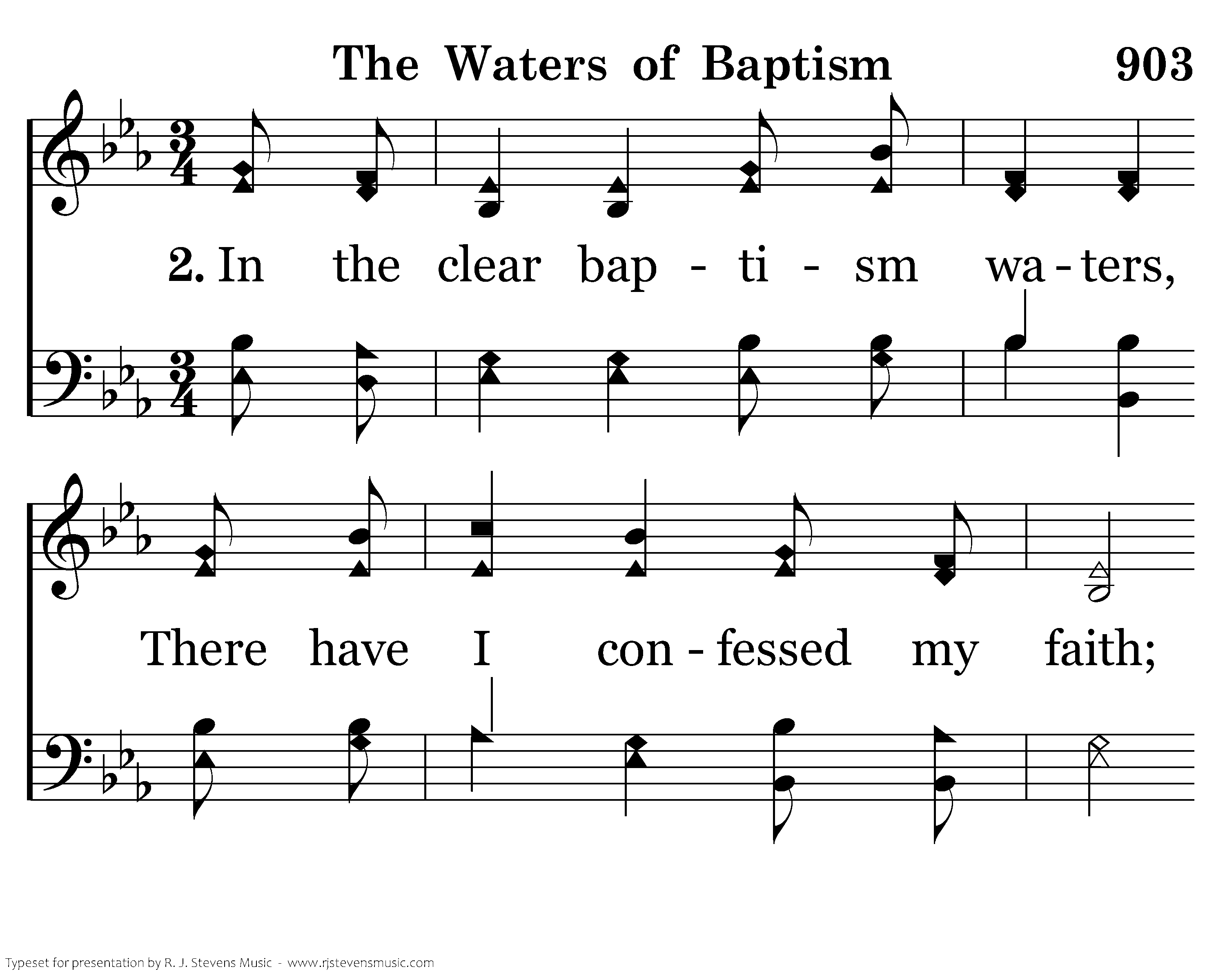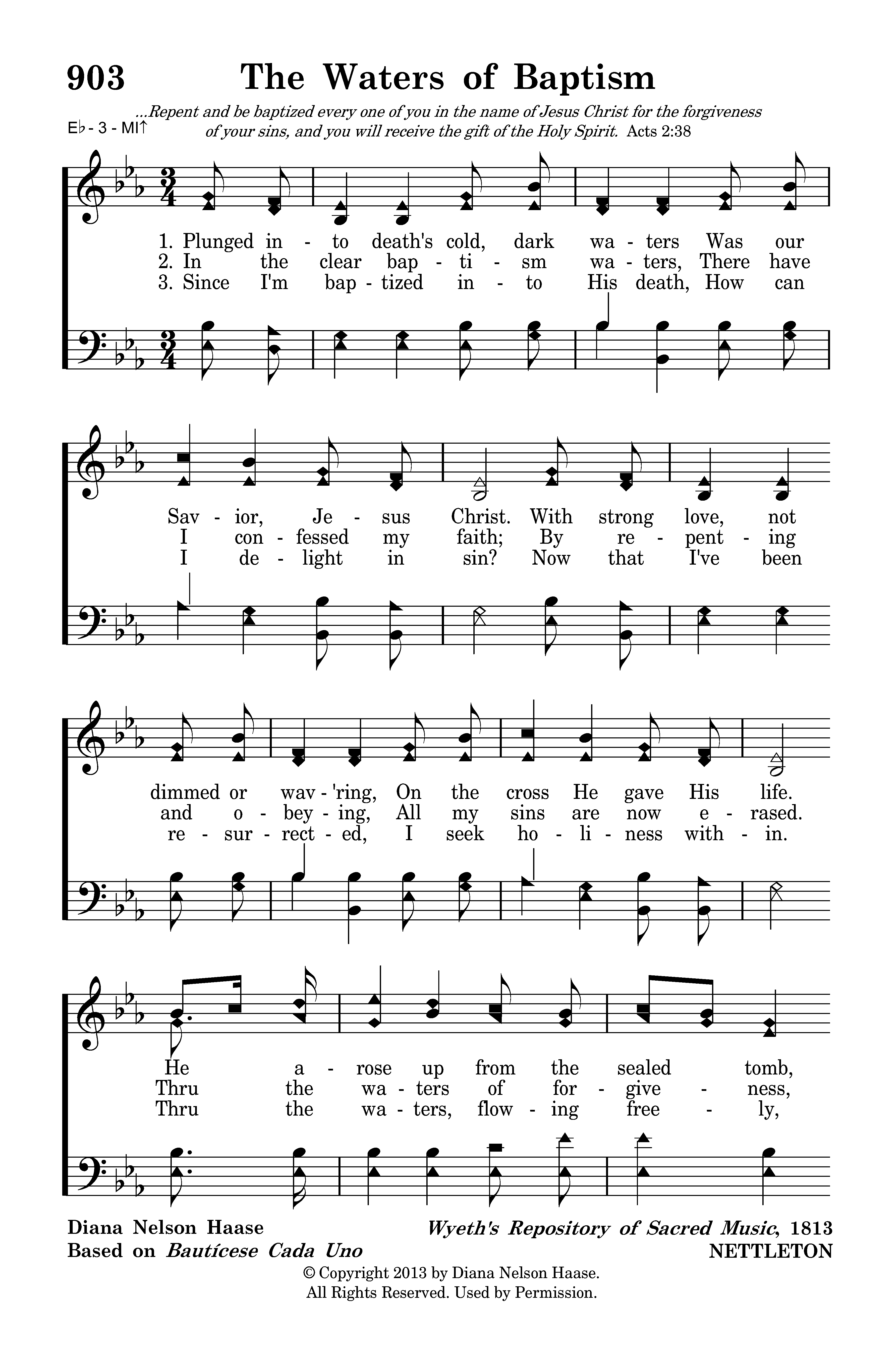 In the clear baptism waters, There have I confessed my faith; By repenting and obeying, All my sins are now erased. Thru the waters of forgiveness, Now redeemed, I follow Christ. From this day, I'll gladly serve Him, Dead to self and worldly vice.