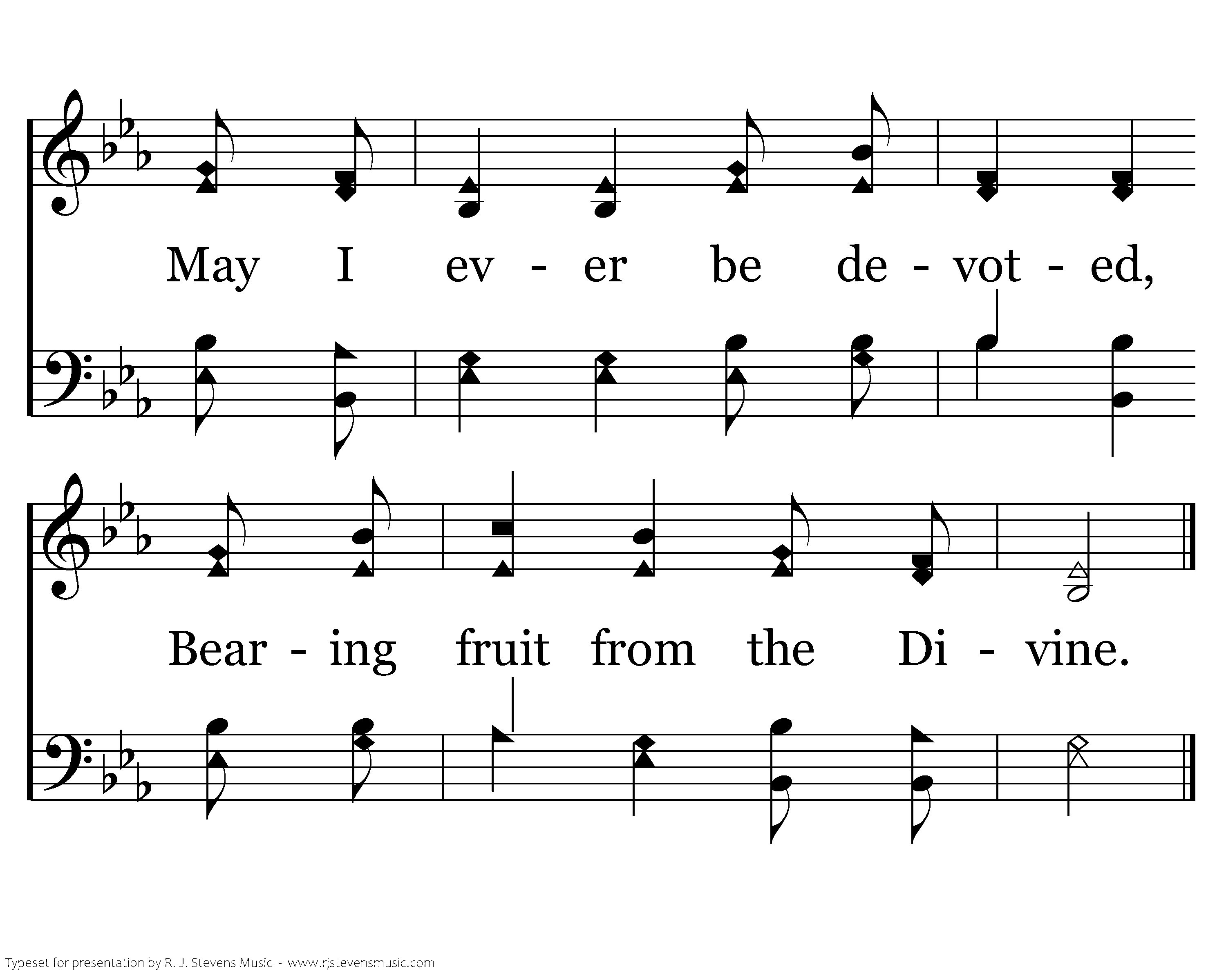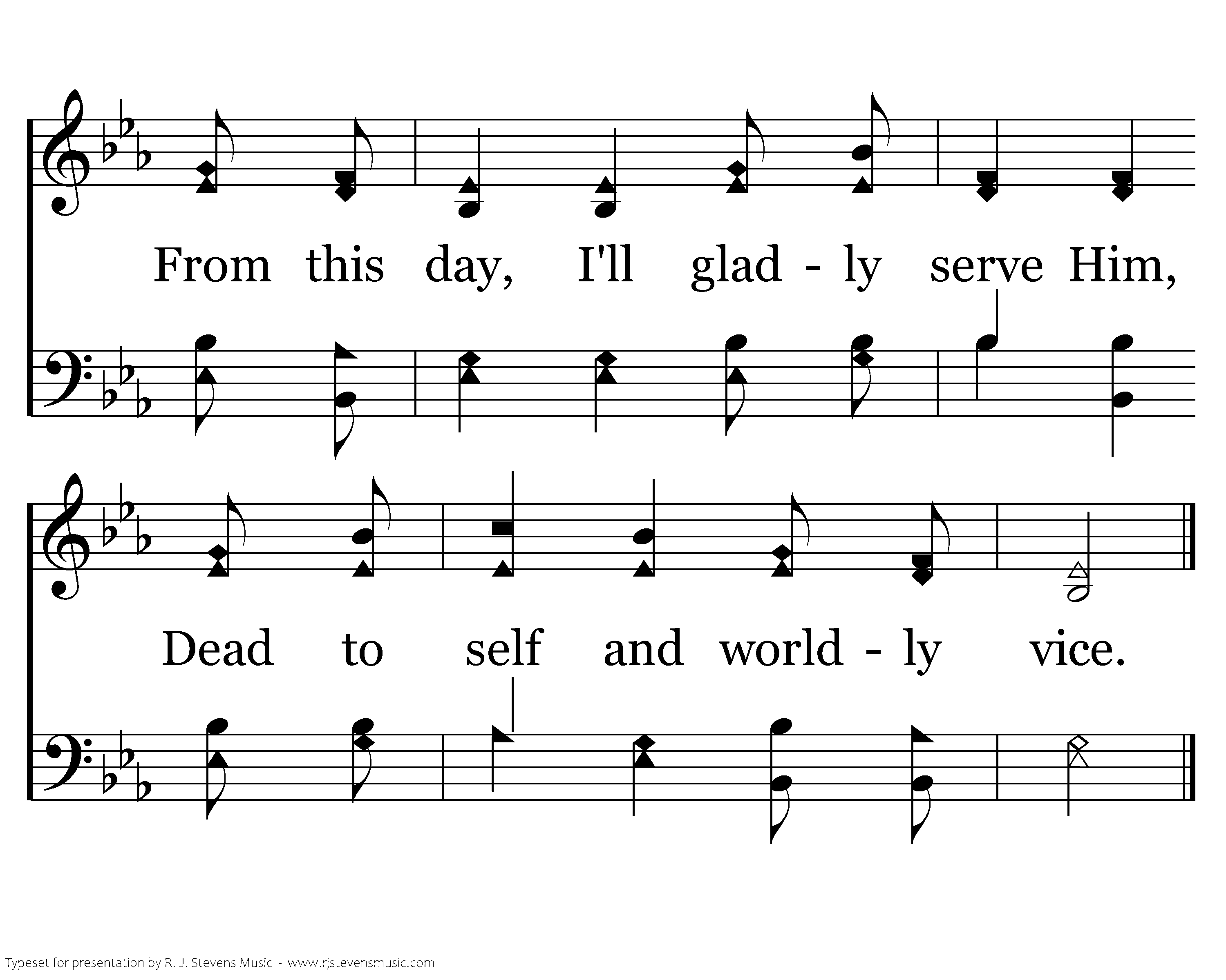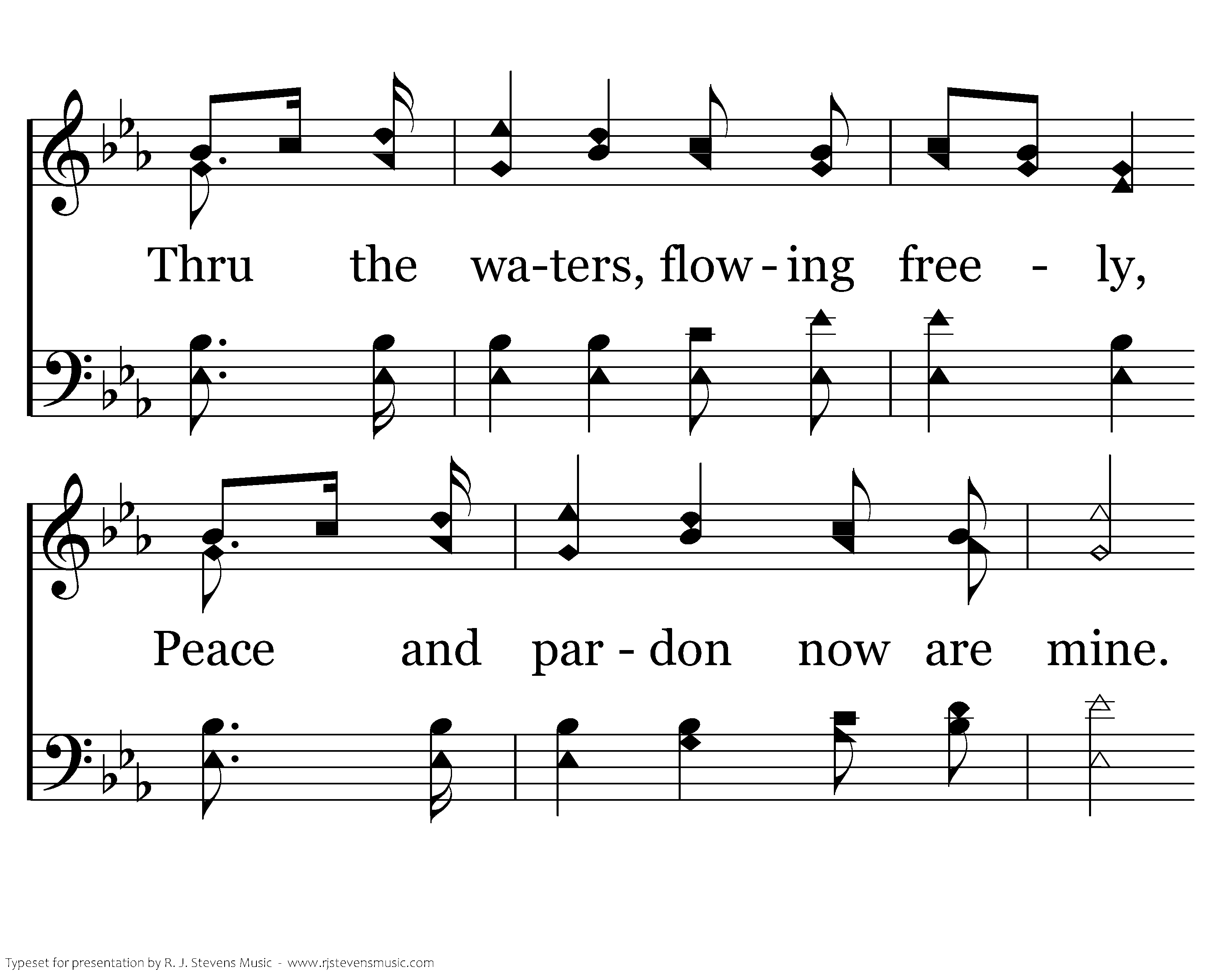 Since I'm baptized into His death, How can I delight in sin? Now that I've been resurrected, I seek holiness within. Thru the waters, flowing freely, Peace and pardon now are mine. May I ever be devoted, Bearing fruit from the Divine.