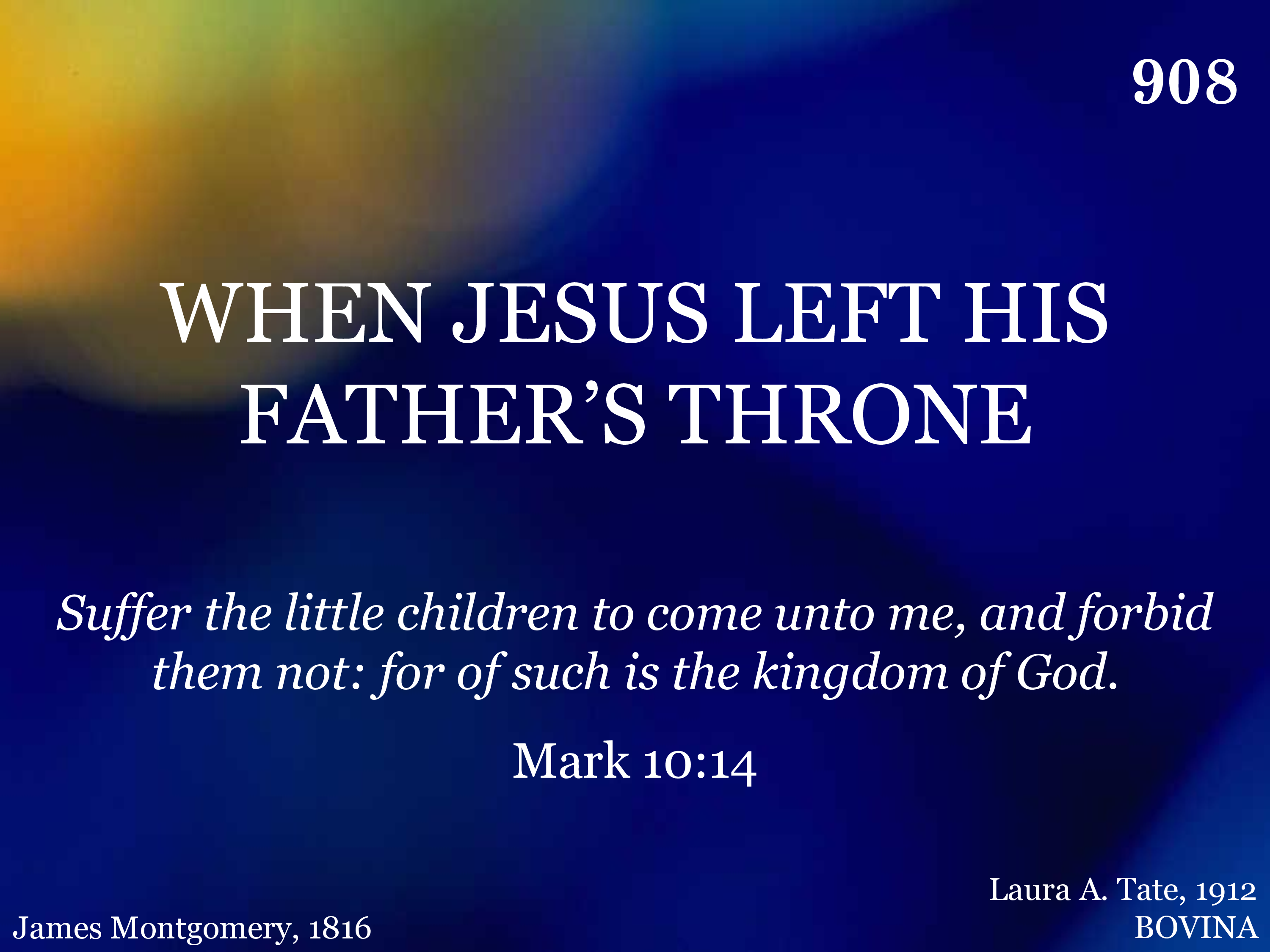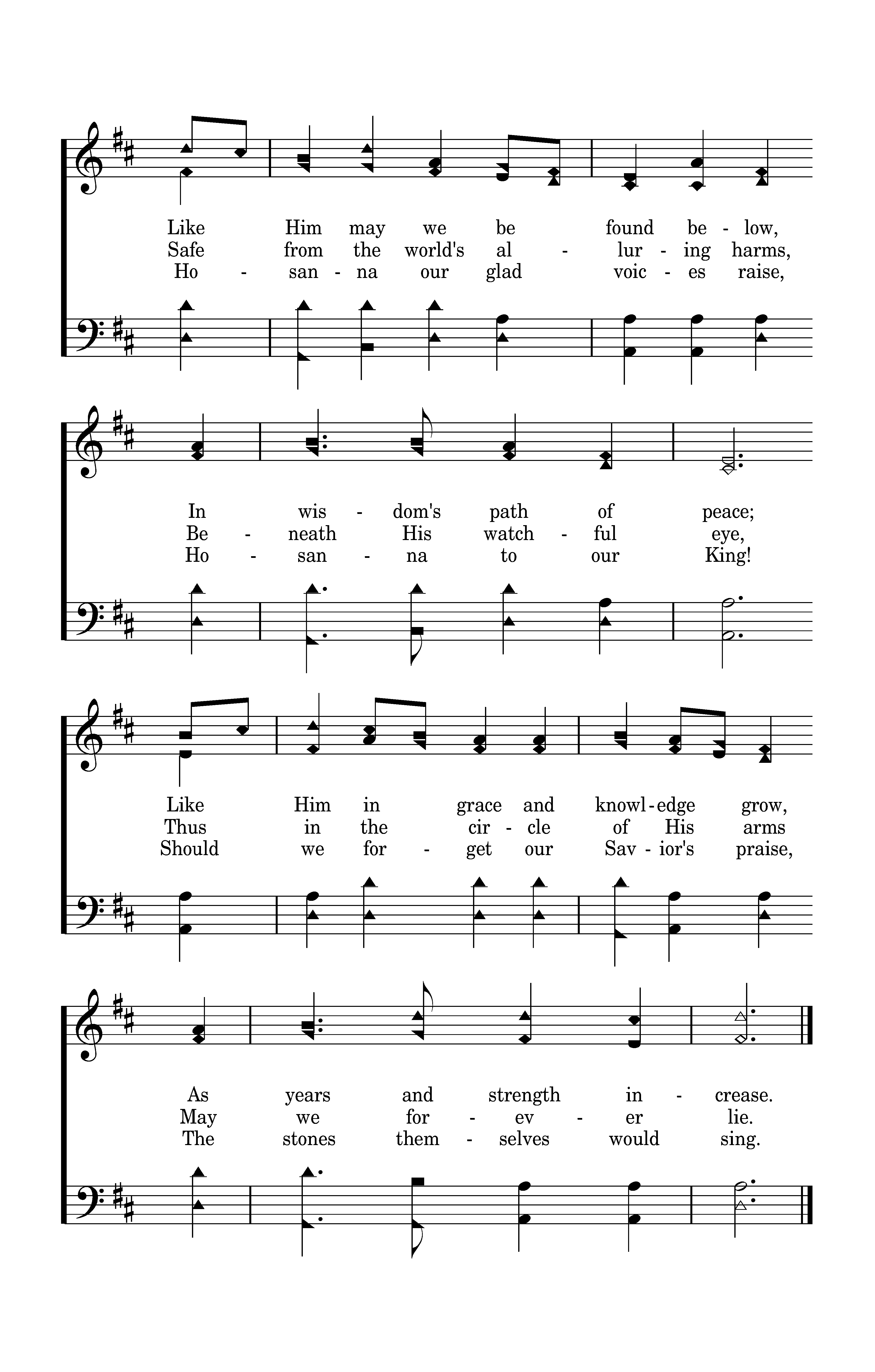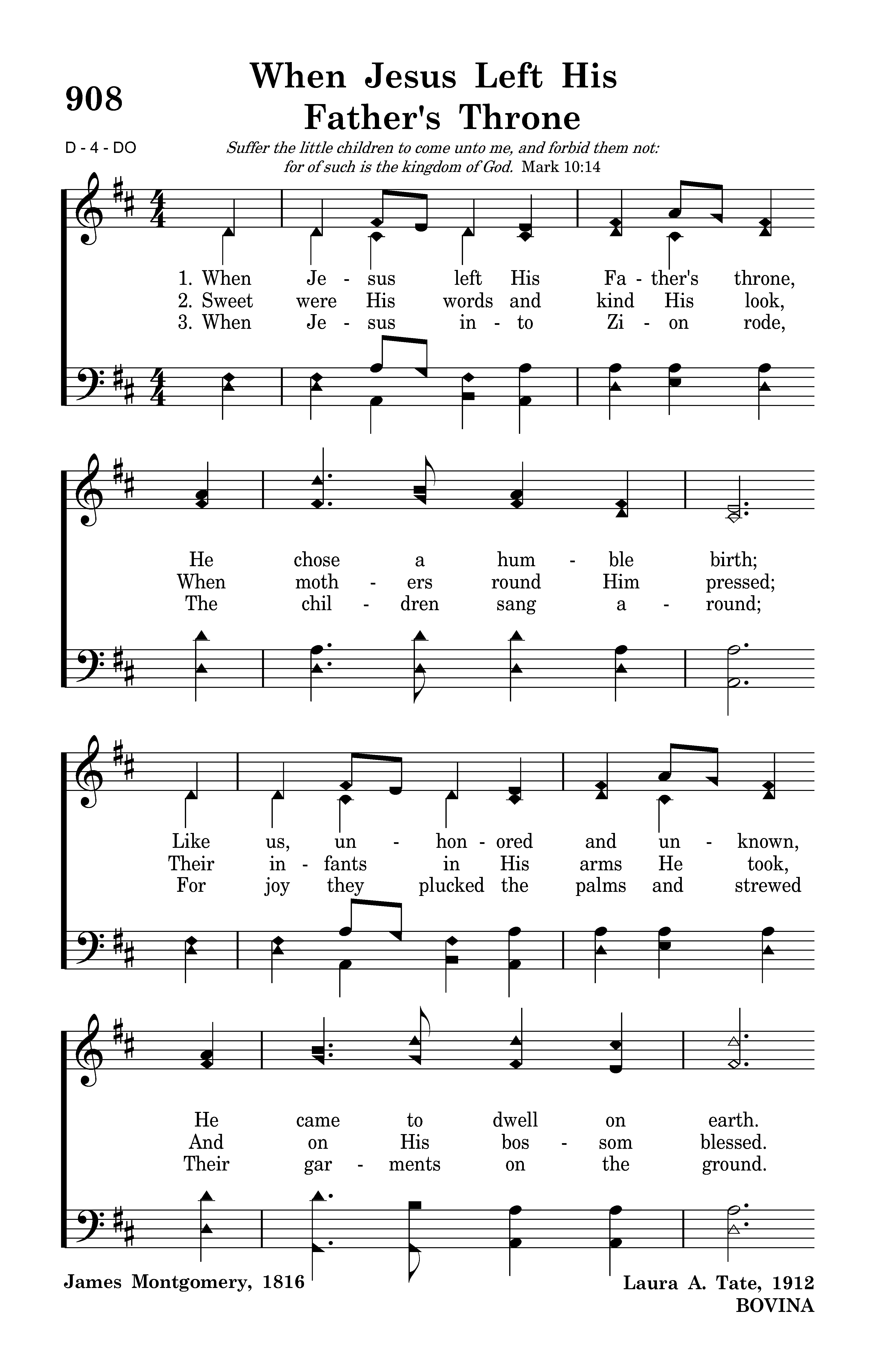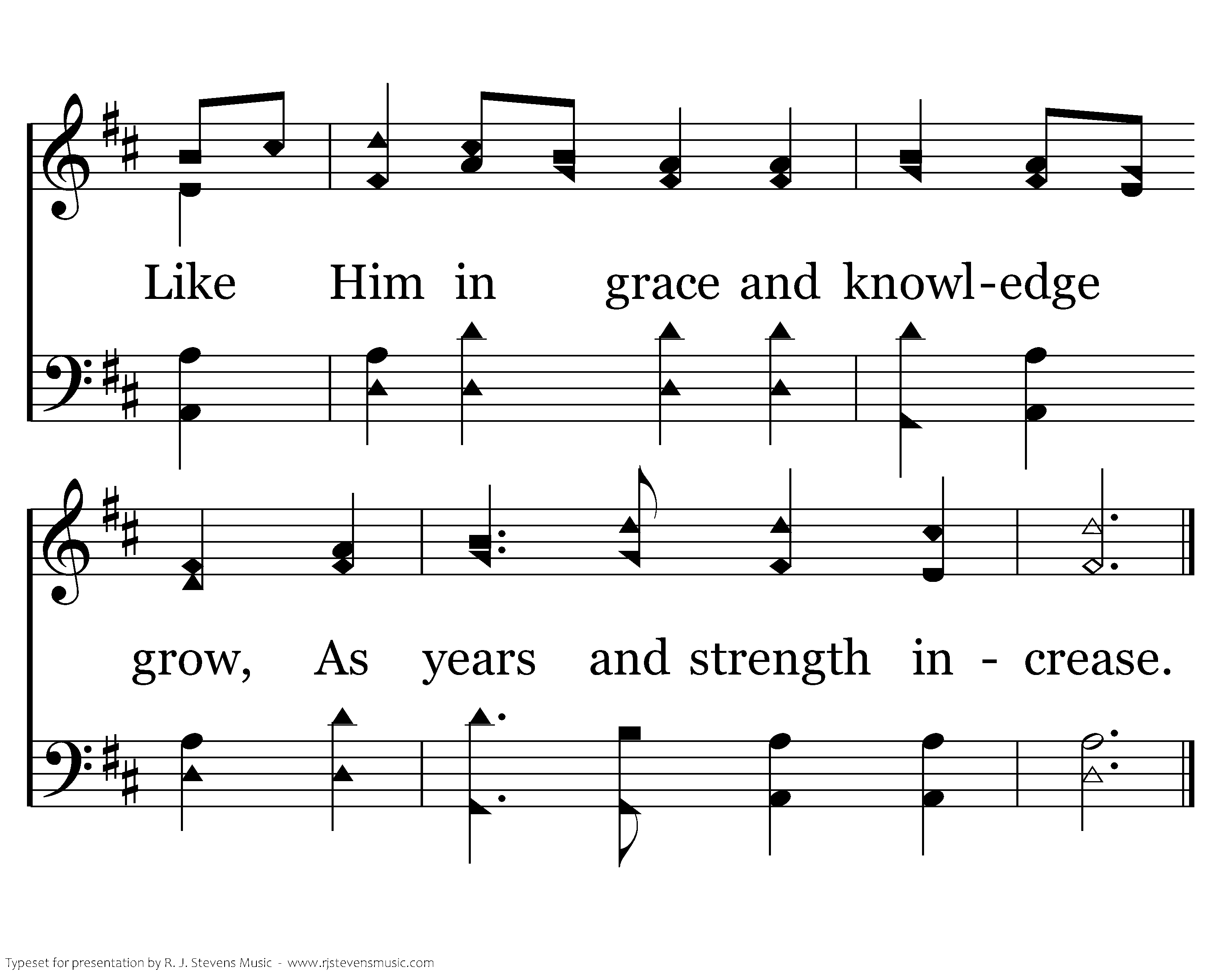 When Jesus left His Father's throne, He chose a humble birth; Like us, unhonored and unknown, He came to dwell on earth. Like Him may we be found below, In wisdom's path of peace; Like Him in grace and knowledge grow, As years and strength increase.