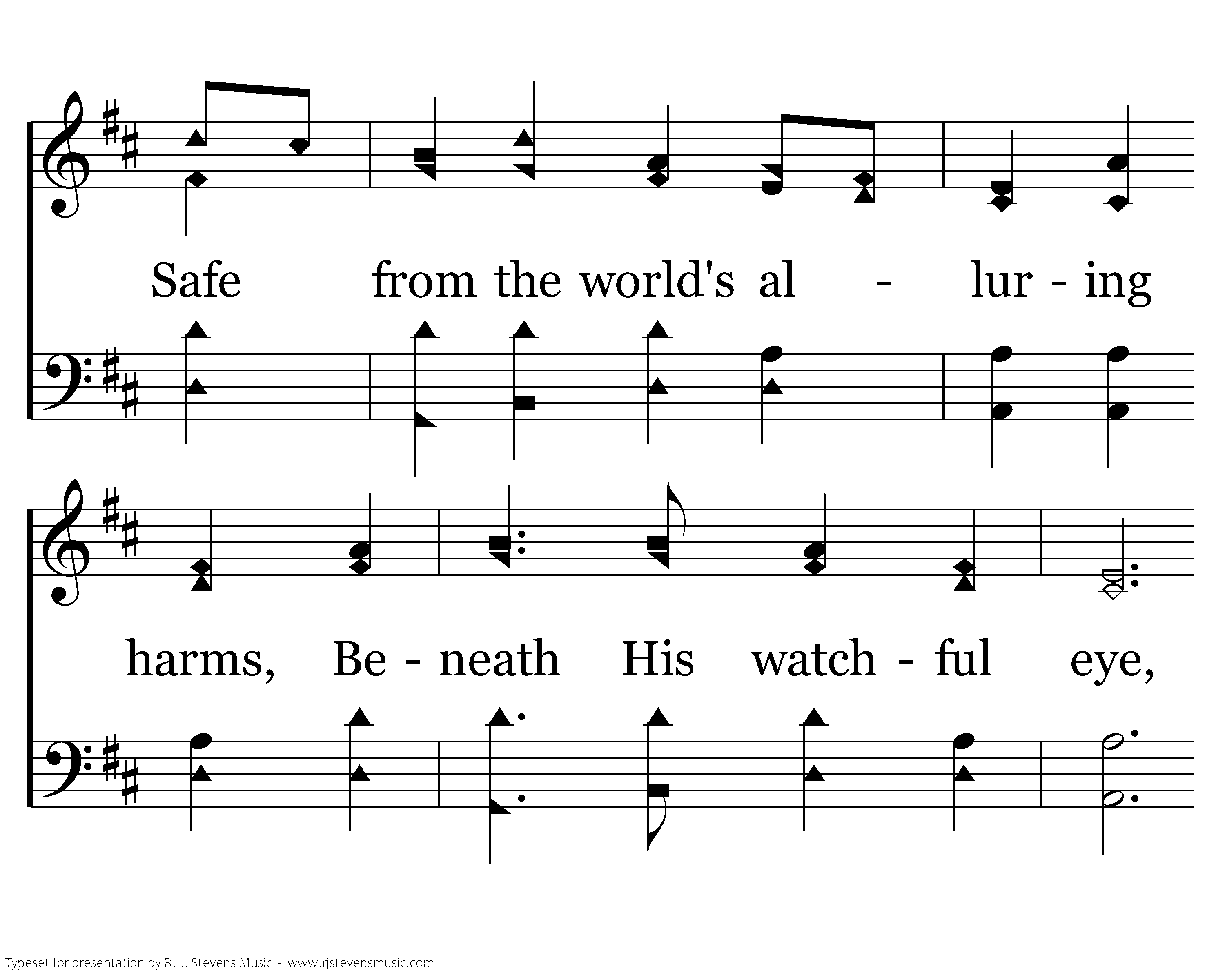 Sweet were His words and kind His look, When mothers round Him pressed; Their infants in His arms He took, And on His bossom blessed. Safe from the world's alluring harms, Beneath His watchful eye, Thus in the circle of His arms May we forever lie.