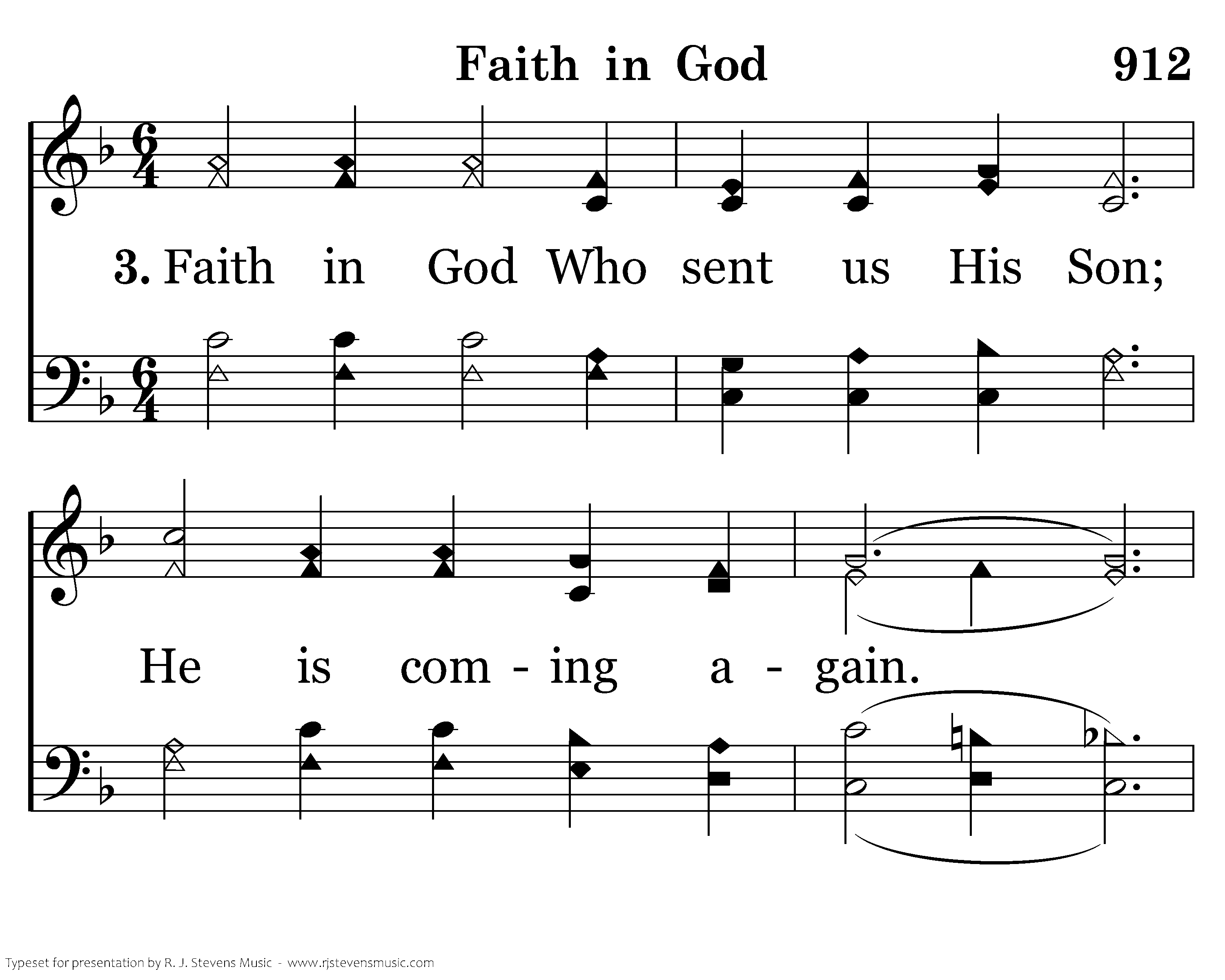 Faith in God will lead us to heav'n; Faith by hearing God's word. God so loved He gave us His Son; He is Jesus the Lord.